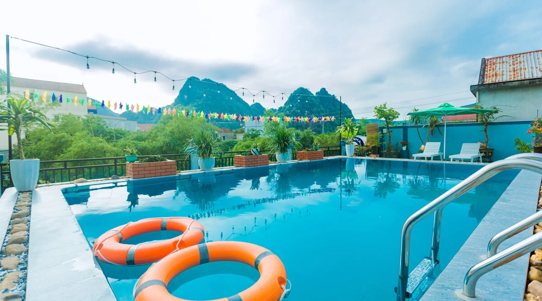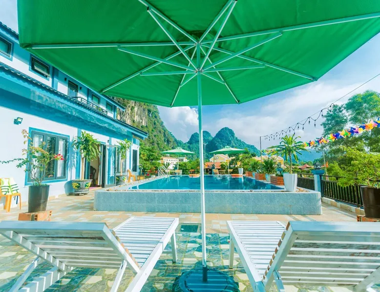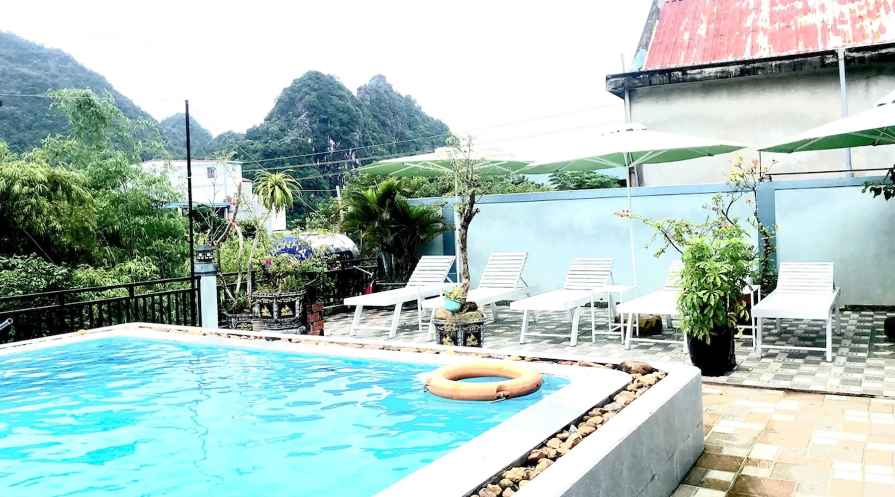 Green homestay conquers the hearts of customers by its rustic Vietnamese countryside, but the furnished interior still meets all customers' needs. Homesaty has a swimming pool, a large garden and all rooms have The closeness in space, the variety of services and the dedication of the staff here will bring you a memorable vacation. Homestay has bicycle and car rental, book tour, bus ticket, party organization, BBQ, karaoke and serves lunch and dinner. Explore jungle , see moutain, visit cave,.. The space Homestay has all 7 rooms, a swimming pool on the rooftop, a large garden covered with trees, a swing, a cafe with Vietnamese style. Our family has 5 people and 2 pet dogs, as the people here we understand everything and always accompany you when coming to stay with my family. Guest access Swimming pool, garden,swing,tuor infomation,kitchen,..