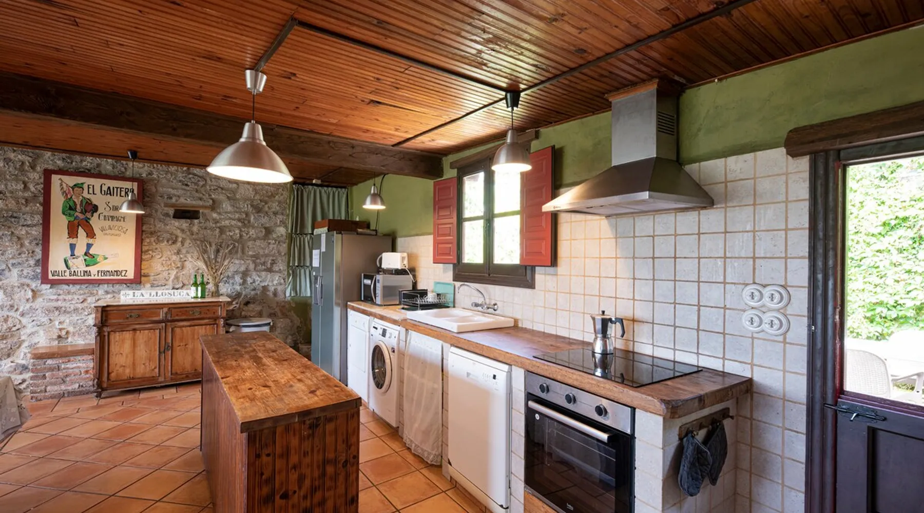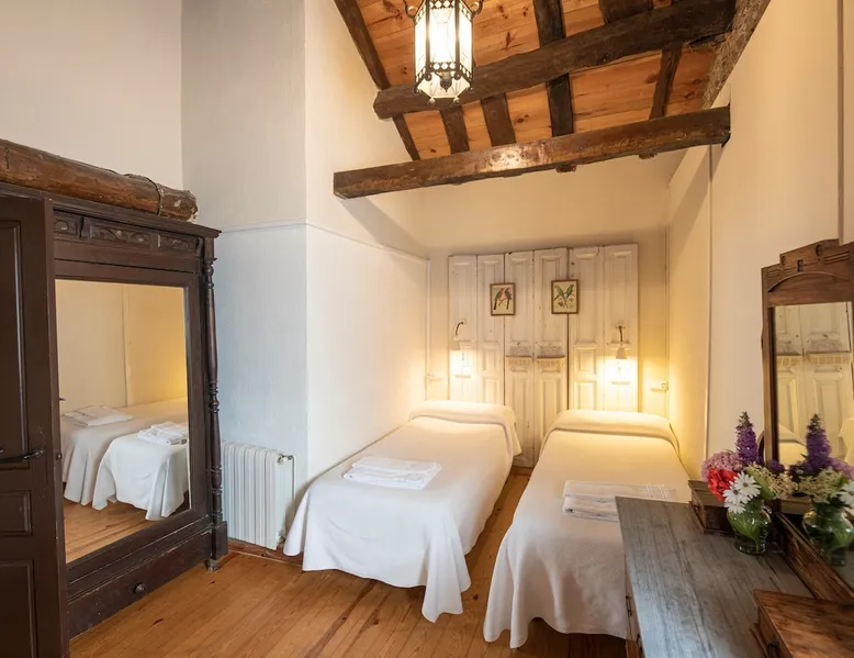 This beautiful repurposed Stone Cider Press built in 1901, sits on the rolling hills of San Pedro de Ambas in the heart of apple cider county in Asturias. Great care has been taken to keep its original traditional architecture. Step into a bit of history, with all the comforts of home in Asturian paradise. If your party is greater than 16 people, ask us about the cottage next door, El Corredor. The space This charming house features 6 bedrooms (4 doubles and 2 quadruples), each with its own private bathroom, plus an additional toilet and an outdoor hot shower in the patio. Inside, you'll find a spacious living room complete with an antique foosball table, a dining room that accommodates up to 30 guests, and a fully equipped kitchen featuring a washer, dryer, dishwasher, and an American refrigerator with filtered water. La Llosuca offers private parking, a beautiful patio, and a lush garden with outdoor seating, a covered barbecue area, and stunning views of the surrounding mountains, valleys, and ocean. Conveniently located along the historic road to Oviedo, it provides easy access to local attractions, including the stunning Rodiles Beach, just 15 minutes away, and the breathtaking Picos de Europa National Park. Guest access The house boasts a spacious 1,290 sq. ft. living room and a fully equipped 645 sq. ft. kitchen-dining area. It includes heating, all essential appliances (such as a washer and dryer), linens, towels, toiletries, and our famous foosball table. La Llosuca also offers private parking, a charming patio next to the kitchen, and a large garden featuring a covered barbecue area, and stunning views of the valley, mountains, and the Cantabrian Sea. Other things to note The price is calculated for a group of 15. Registration Details Spain - National registration number ESFCTU0000330190005058260000000000000000000CA.850.AS9 Asturias - Regional registration number CA850AS