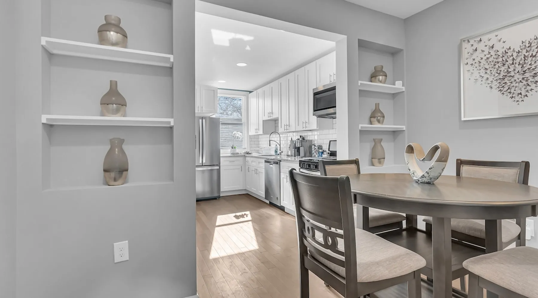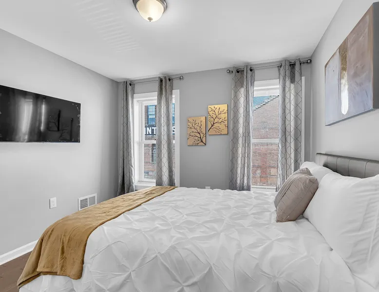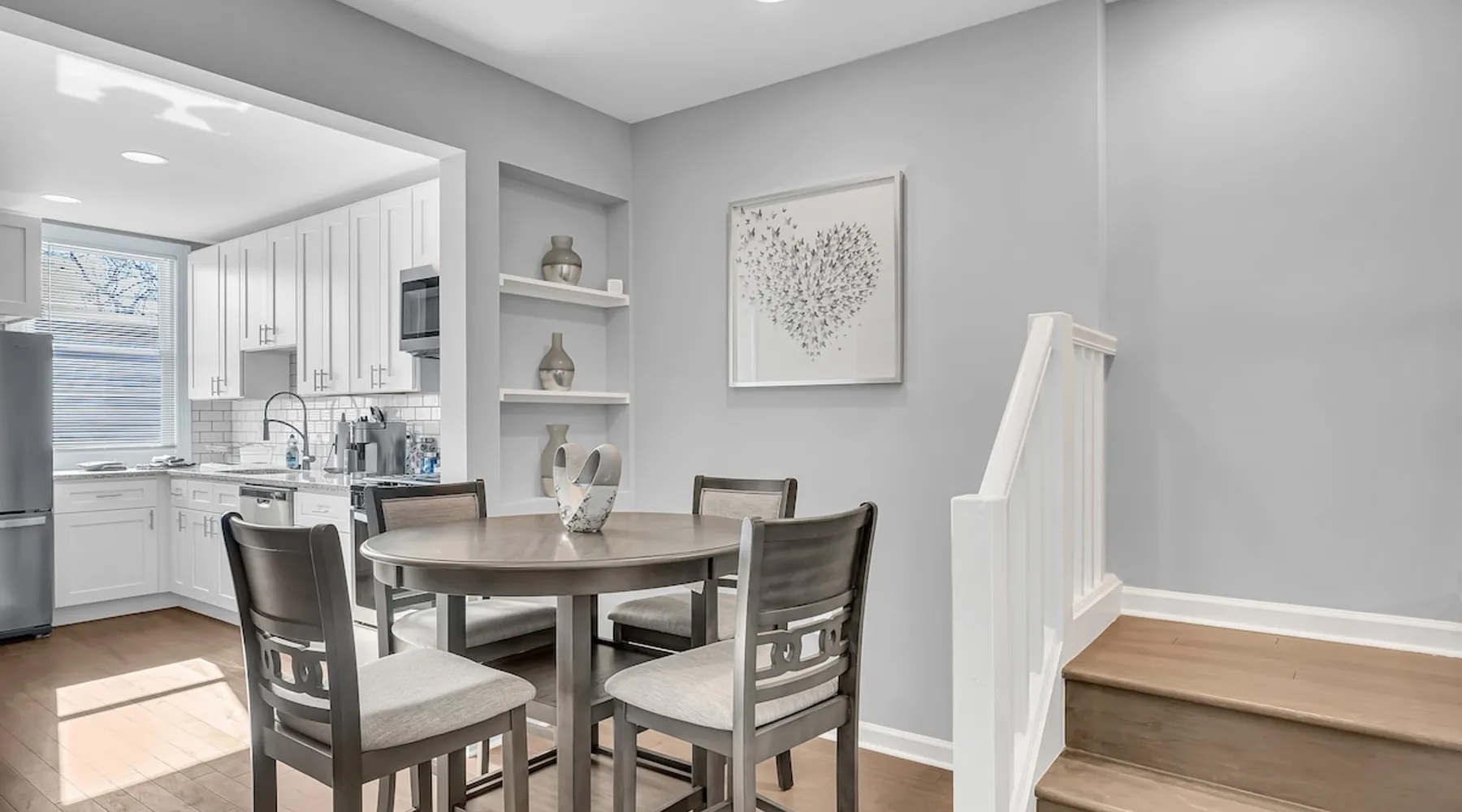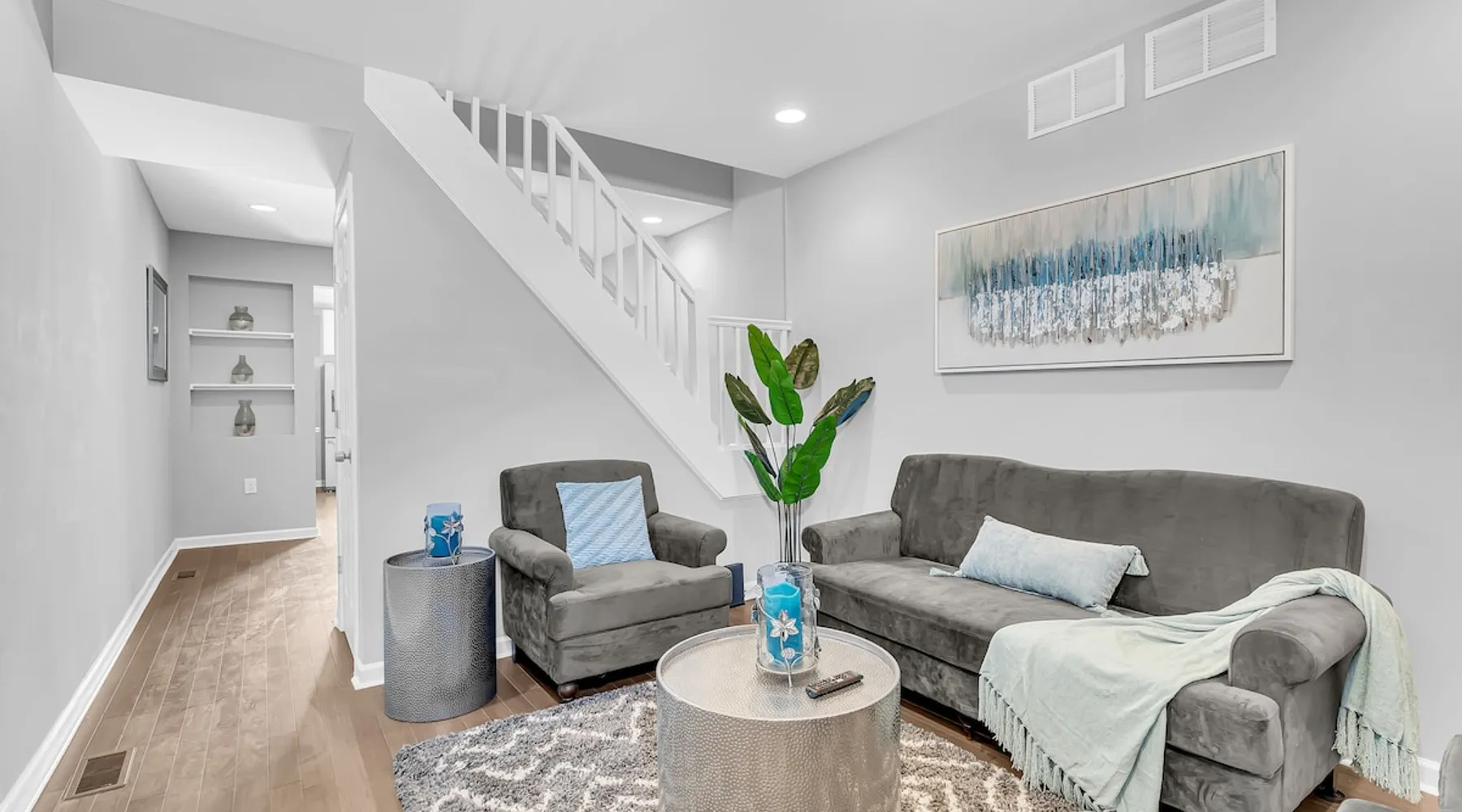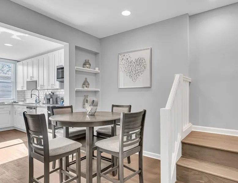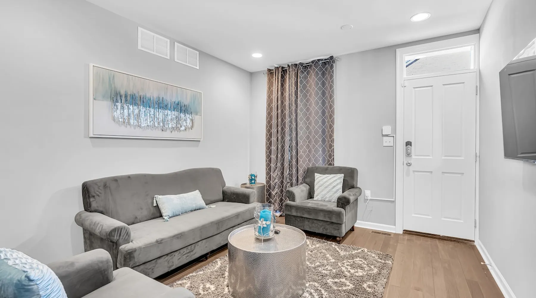 Our fully furnished accommodations are complete with all the necessary amenities to help you settle in and feel at ease. Plus, the Johns Hopkins Shuttle stops right at our doorstep for added convenience. The space This beautiful, fully furnished townhome offers the perfect blend of modern convenience and classic Baltimore charm. Boasting a modern floor plan with hardwood floors, the main floor features a gourmet kitchen with stainless steel gas appliances, granite countertops, and a dining room table that seats four. For added convenience, the main level also features a powder room so your guests will never have to go upstairs. Step outside to the fenced patio and enjoy the outdoors. There is also a parking pad behind the home - best for a compact-mid size car. As you walk upstairs, you will find two spacious bedrooms and two full bathrooms. Each bedroom also includes a queen bed, dresser, closet, floating nightstand, Samsung Smart TV, blinds, and black out curtains. The upper level also features a full-size washer and dryer, making laundry a breeze! The unfinished lower level offers extra storage space but can also be used as an office, workout room, or whatever else you can imagine. You can rest assured that this space is only accessed through inside of the home, giving you extra security and peace of mind. Our homes are designed with your security in mind. Feel at ease with security front and rear doors, as well as a Ring Alarm security system and Ring doorbell. With this state-of-the-art security system, you can rest assured that your home and belongings are safe and secure. Enjoy a cool and comfortable stay with our central heating and cooling system and stay connected with high-speed Wi-Fi available throughout the home. We also want to make sure you don't have to worry about a thing when you arrive, so we've included starter toiletries and cleaning supplies for your convenience. We also welcome pets, so your furry friends can stay with you! Guest access The entire home is exclusively yours, without interruption for the duration of your stay, so relax, unwind, and make yourself at home! Other things to note Perfect for travel nurses, residents, or medical/nursing students! The monthly rate includes a generous $350 utility allowance, which covers gas/electric, water, and WiFi. In our experience, most guests stay well within this amount. If your usage exceeds the allowance, we’ll provide copies of the bills and submit a payment request through Airbnb for the difference. Guests with pets: there is an additional $150 pet cleaning fee. We’ll send the payment request link on the day of your check-in.