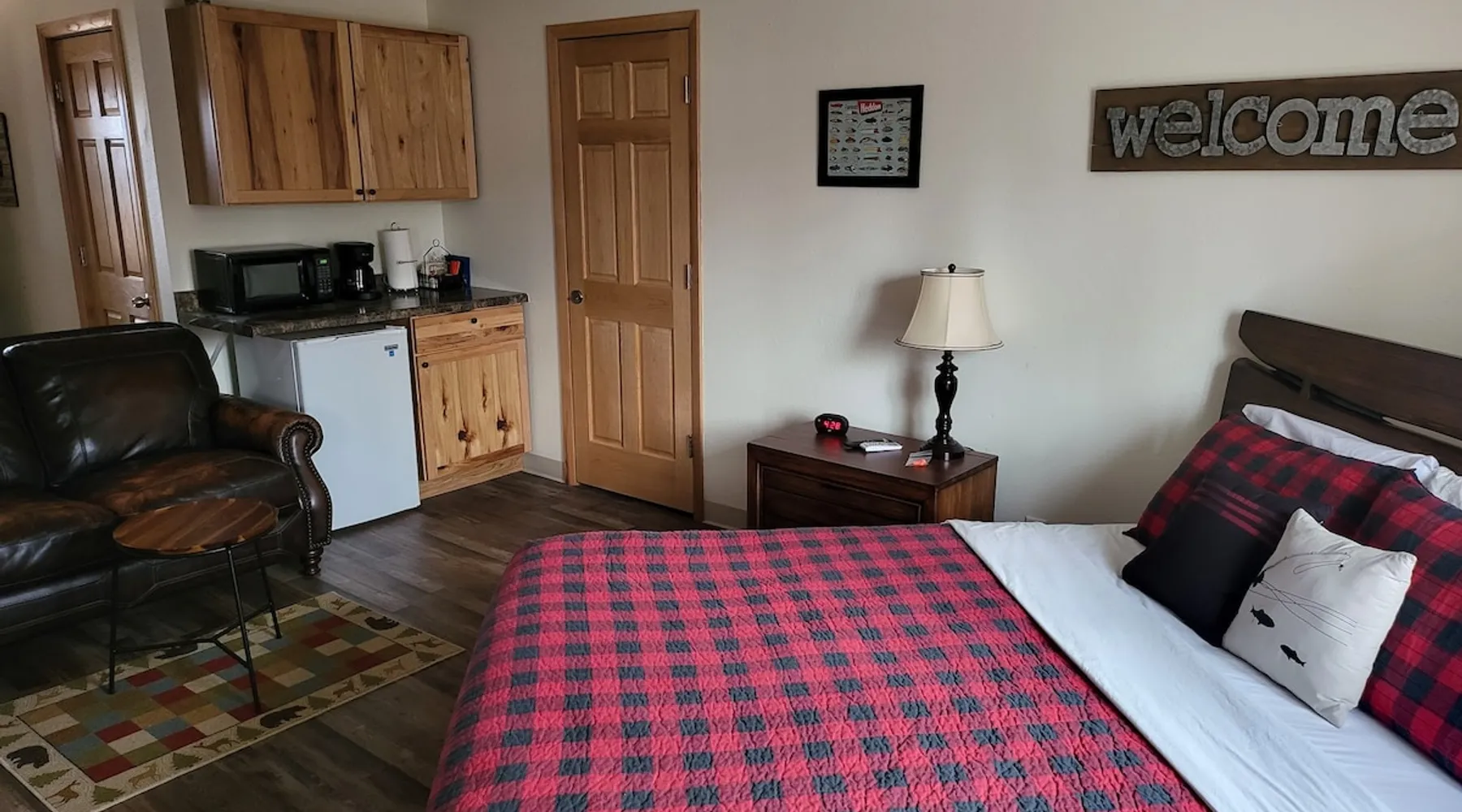Escape to the "Northwoods" of Onalaska! This guest room is next door to our restaurant, Red Pines Bar & Grill so a stay here means access to a full-service restaurant & bar, volleyball courts, the lake and great people. We are always available if you need anything during your stay. We also have our Red Pines Cafe open 7:30 am seven days a week when the main restaurant is closed. There are 5 other rooms in Red Pines Lodging so the space is basically a hotel with your own private access. The space This is a private hotel style room with a mini fridge, microwave and Keurig available for guests. Our space is located on Lake Onalaska on Brices Prairie rich in natural beauty but close to all the unique offerings of La Crosse - just 15 min away.