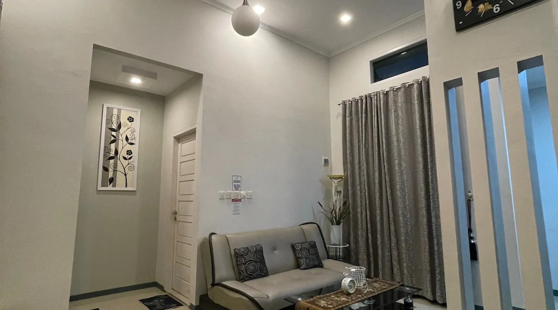 FARASTHA Homestay is a minimalist modern design, 1 House that has 2 bedrooms (AC), 2 bathrooms. The Middle Room is equipped with SMART TV, Wi-Fi, carpet, free bottled water and fans. The Guest Room has a minimalist sofa. FARASTHA Homestay is perfect for family gatherings, the cool and beautiful neighborhood makes you feel comfortable living here like living in your own home. SORRY, we only accept guests (families), and couple guests need to show proof of marriage.