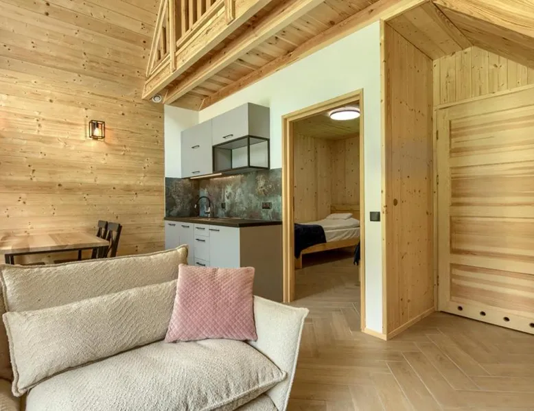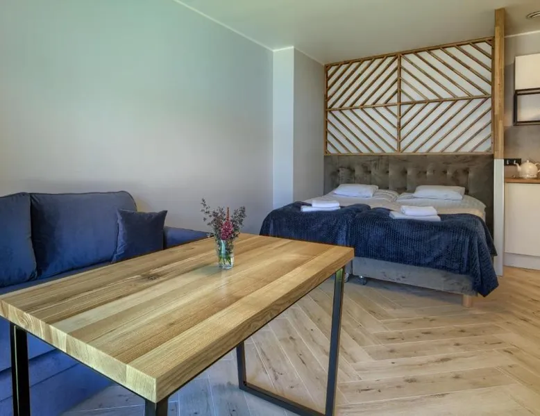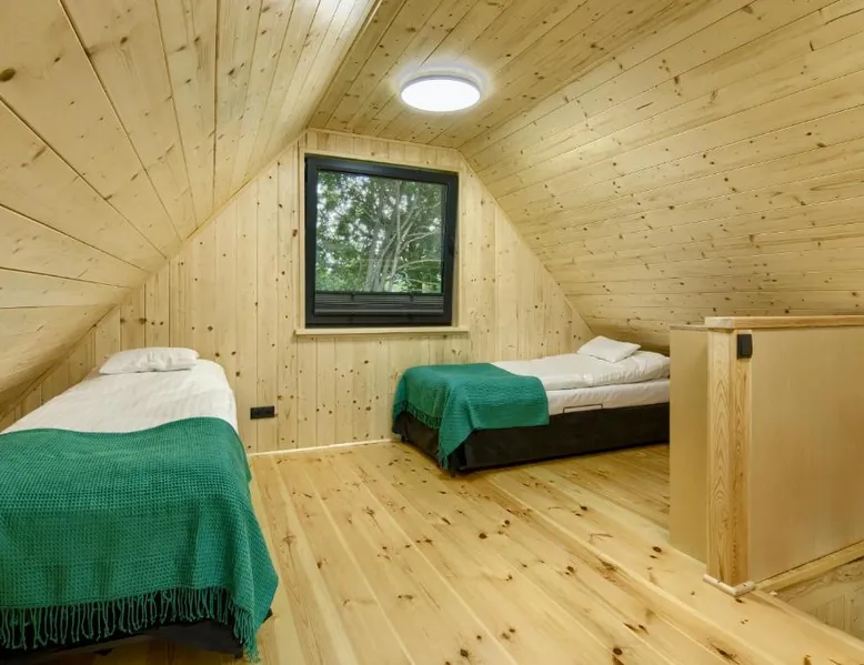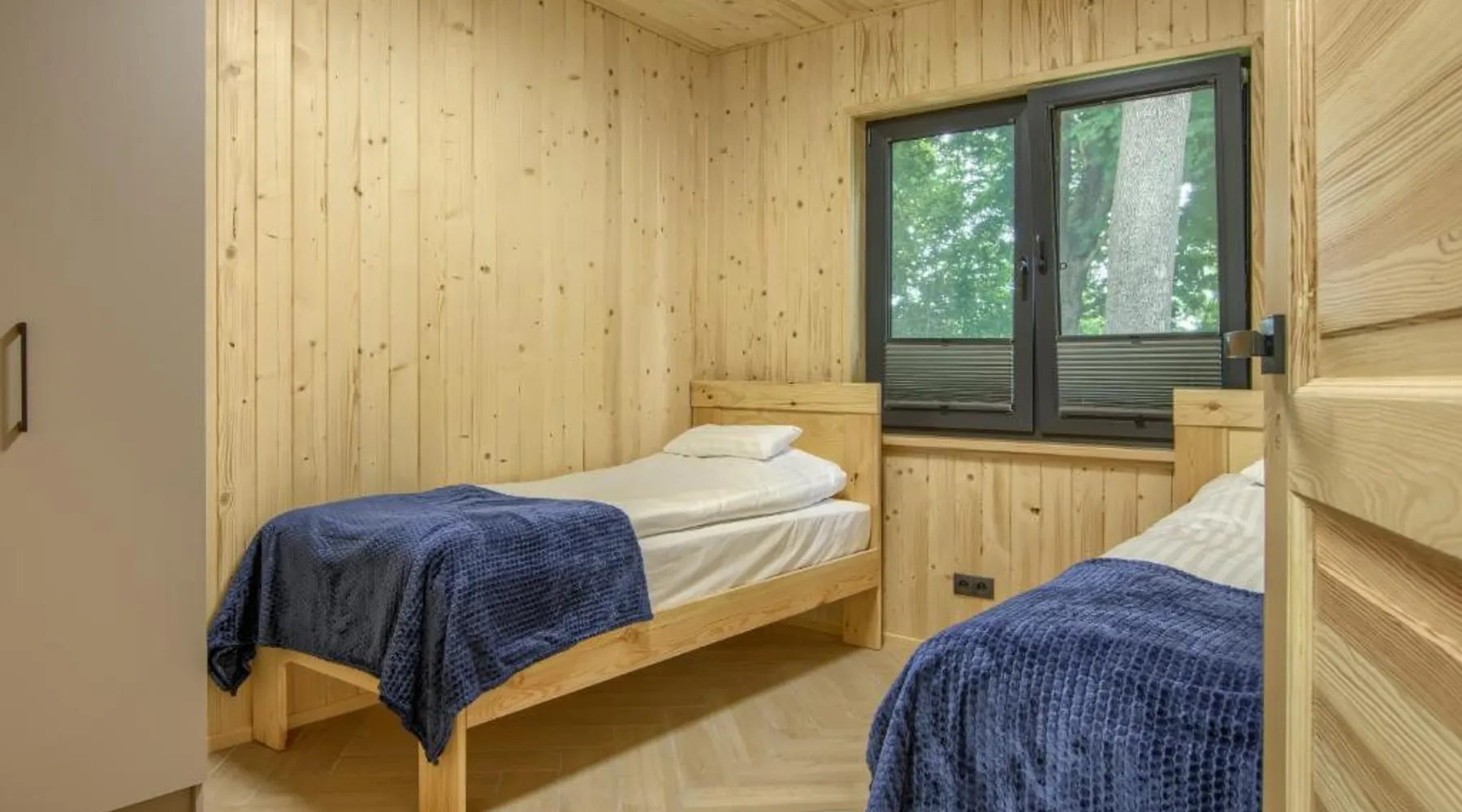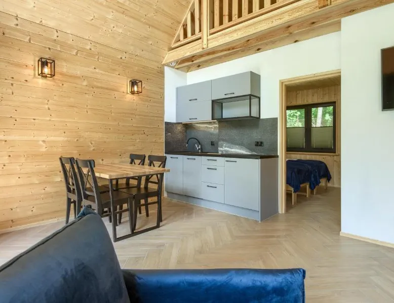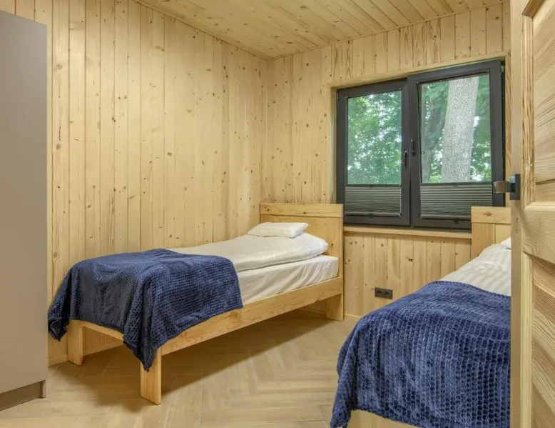 Comfortable Accommodations: Ośrodek Wypoczynkowy Zapach Drewna Resort & Lake in Barczewo offers family rooms with kitchenettes, private bathrooms, and garden views. Each room includes a dining area, refrigerator, and TV. Leisure Facilities: Guests enjoy a private beach area, sun terrace, and lush garden. The resort features an outdoor fireplace, play area, and outdoor seating. Free WiFi is available throughout the property. Dining Experience: The family-friendly restaurant serves Polish cuisine with traditional, modern, and romantic ambiances. Meals include lunch, dinner, high tea, and cocktails. Activities and Attractions: Activities include film nights, walking tours, and bike tours. Nearby attractions include Święta Lipka Sanctuary (31 mi) and Olsztyn-Mazury Airport (30 mi). Boasting a private entrance, this holiday home includes 1 living room, 2 separate bedrooms and 1 bathroom with a shower. In the kitchenette, guests will find a stovetop, a refrigerator, a dishwasher and kitchenware. Featuring a terrace with garden views, this holiday home also offers soundproof walls and a flat-screen TV. The unit has 4 beds.