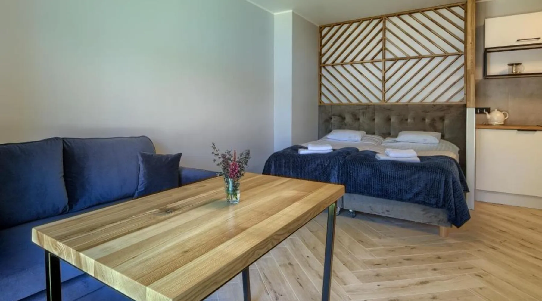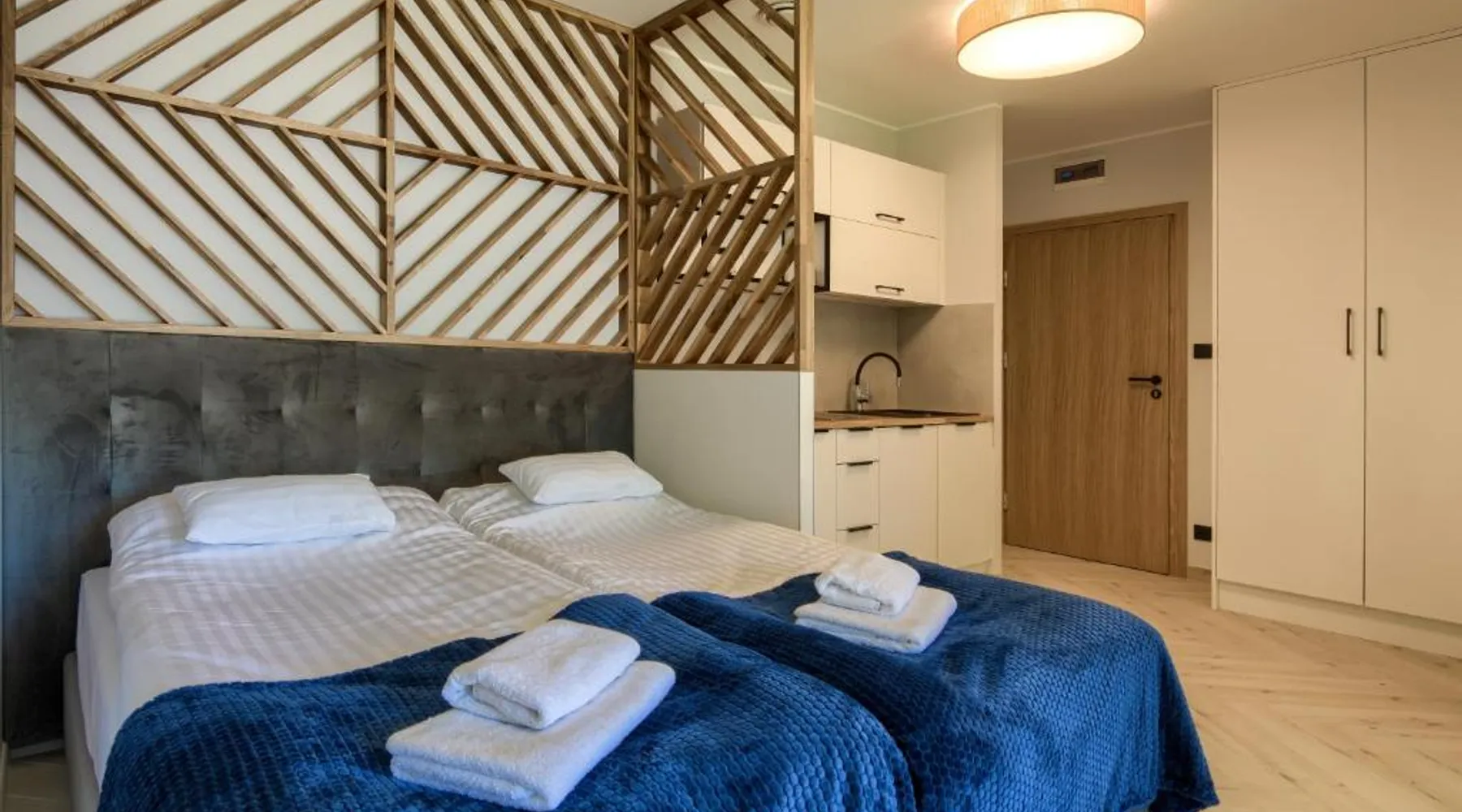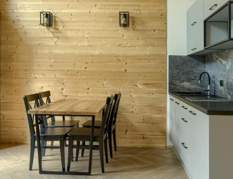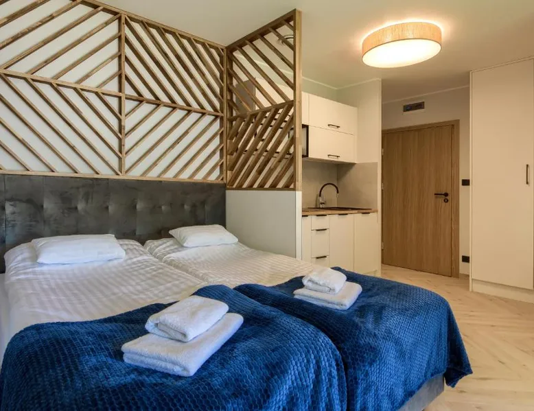 Comfortable Accommodations: Ośrodek Wypoczynkowy Zapach Drewna Resort & Lake in Barczewo offers family rooms with kitchenettes, private bathrooms, and garden views. Each room includes a dining area, refrigerator, and TV. Leisure Facilities: Guests enjoy a private beach area, sun terrace, and lush garden. The resort features an outdoor fireplace, play area, and outdoor seating. Free WiFi is available throughout the property. Dining Experience: The family-friendly restaurant serves Polish cuisine with traditional, modern, and romantic ambiances. Meals include lunch, dinner, high tea, and cocktails. Activities and Attractions: Activities include film nights, walking tours, and bike tours. Nearby attractions include Święta Lipka Sanctuary (31 mi) and Olsztyn-Mazury Airport (30 mi). Boasting a private entrance, this holiday home includes 1 living room, 2 separate bedrooms and 1 bathroom with a shower. In the kitchenette, guests will find a stovetop, a refrigerator, a dishwasher and kitchenware. Featuring a terrace with garden views, this holiday home also offers soundproof walls and a flat-screen TV. The unit has 4 beds.