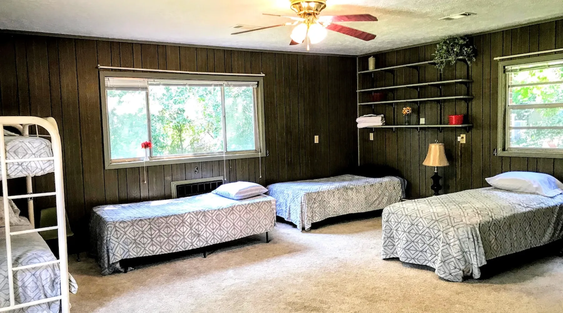 Welcome to the only Hostel type room in the Columbus/Phenix City/Fort Benning area! Perfect for the single traveler. This is a SHARED DORM STYLE room with 5 beds. Each bed is listed as a separate listing. Bed #1 is the top bunk. From our 10 years of past experience we have found that our guests are usually educated, well traveled, friendly, quiet, interesting to chat with, and in the habit of respecting each others' space. The space This spacious room is SHARED, welcoming other travellers from all over the world who will sleep in the same room. There is this bunk bed and 3 single beds. 4 lockers with locks are available for your use in this room. Bed #1 is the top bunk. You will need to climb the ladder at the end of the bunk to get into the top bunk. This is a 4 bedroom older home in a quiet residential neighborhood. There are 3 private guest rooms besides this 5 bed Hostel Room in the home. Each guest is responsible for keeping their space clean and neat. This includes the bathrooms, kitchen and sleeping space. Both bathrooms have a fresh coat of paint. The blue bathroom still has the original, vintage cast iron tub. Please contact us if you are interested in a private room. Guest access You will have access to the whole home except for the 3 individual private bedrooms. You may label any personal items you put in the kitchen or bathroom that you don’t want anyone else using. There is a pen and tape in the kitchen on the small shelf across from the refrigerator. Other things to note Phenix City goes by Eastern time, the same as Columbus, Fort Benning, and Atlanta, GA. We are not located in downtown but are minutes from downtown Phenix City. (This home has central heat and air even though the picture shows old AC units in the wall.) If you are coming here for work and you work a shift that you need to sleep during the day, this is not the best temporary housing situation for you because there may be other guests coming and going in this room throughout the day. There are 2 outdoor security cameras on this property, one on the front porch and one on the back porch, for the safety of our guests.