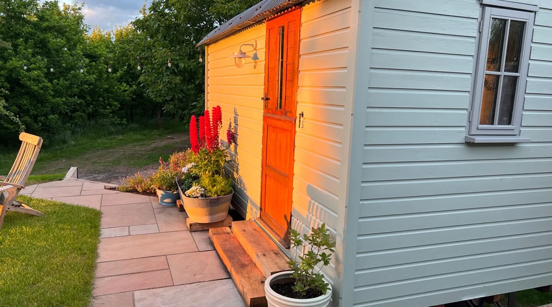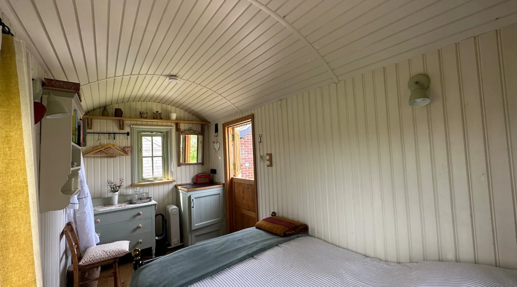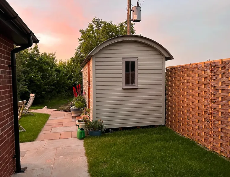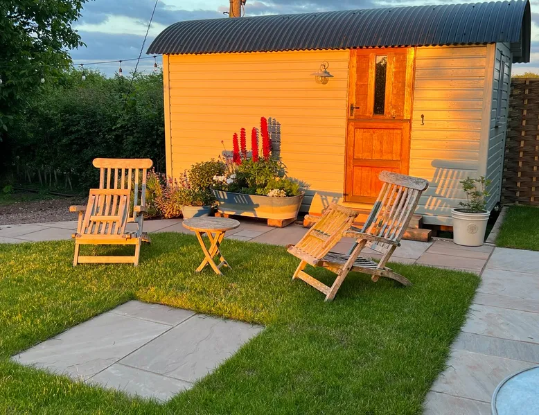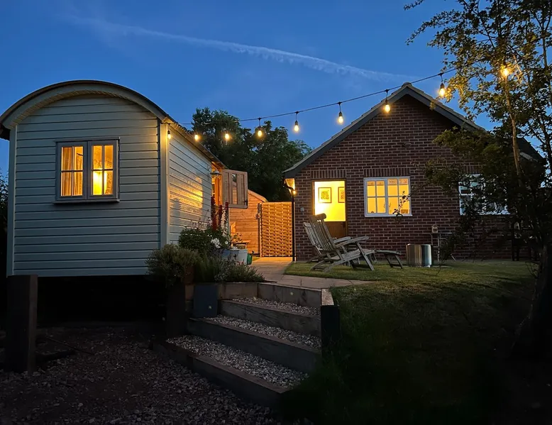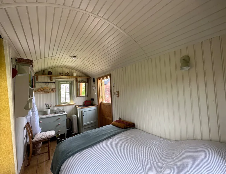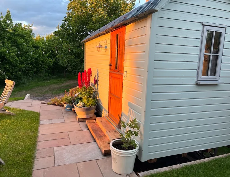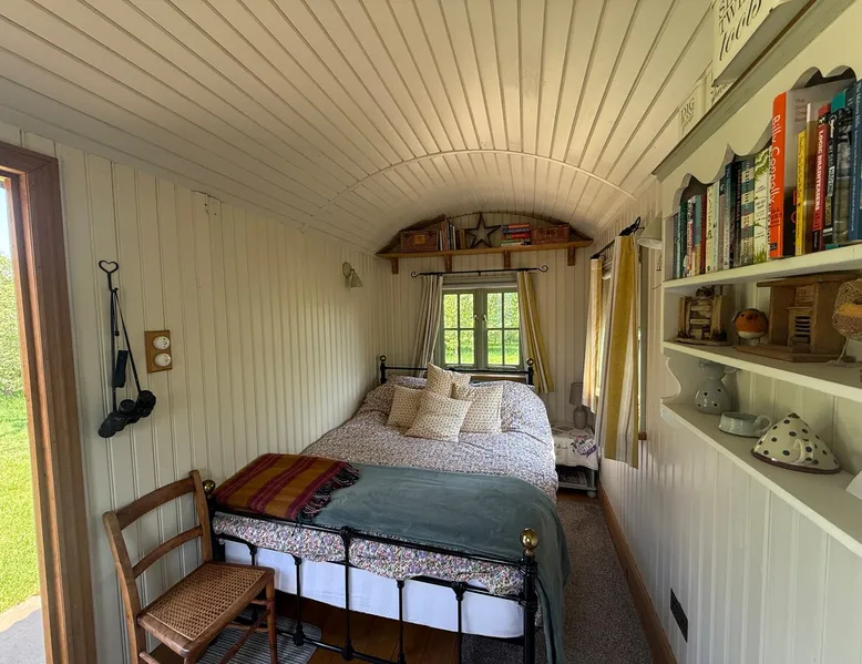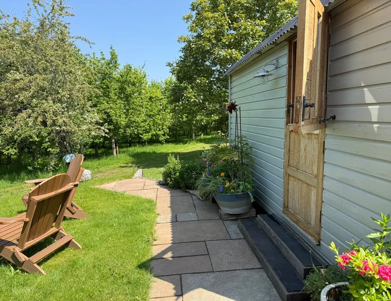 Wake up to the sound of birdsong in your sumptuous bed, feeling perfectly relaxed. In the evening, watch the stars appear shining brightly with the lack of light pollution, staying warm and cosy by the fire pit. Nestled on the fringe of an orchard on the edge of a working Cider Farm, our beautiful Shepherd Hut and Annex offer a romantic escape for two in The Wye Valley with everything you need for a relaxing break away from it all. The space Kate and Gary would like to welcome you to our own little corner of Herefordshire. We live close by should you need anything at all. Located in the Wye Valley in Herefordshire, on the edge of the Forest of Dean there are many places to visit only a short drive away. You may be in the countryside, but just a five minute walk to the village of Peterstow with a well stocked village Shop / Post Office, and the lovely Yew Tree Inn village Pub, which is also home to the Ross Cider Company. If you prefer to stay in, we have an excellent firepit and grill in your own little garden outside the hut. If delicious cream teas take your fancy, you can book one at Broome Farm which is just a five minute stroll from the hut or can even even be delivered to you! Takeaway deliveries are also available from various restaurants in Ross-on-Wye. Kitchen and bathroom facilities are located in the Annexe, just a short step away from your Shepherd's hut bedroom. Your own fitted kitchenette, with a large fridge freezer, air fryer, microwave, toaster, coffee machine plus a beautifully fitted shower room with a walk in shower. Towels provided. We have excellent free wi-fi and a Bose CD / Radio with cds provided of various genres plus books and games available. The hut itself contains a lovely double bed with all bed linen provided, plus two dressing gowns and a shelf of books for you to discover at your leisure. Try exploring the stars at night with our telescope. The galaxy can be amazing with the lack of light pollution in the dark skies of Herefordshire. You can stroll the orchards, take a picnic, or if you love to walk, there are many footpaths right on our doorstep. For the more adventurous, the Forest of Dean with its' World famous Mountain Biking tracks is only a short drive away. You could even try canoeing down the river Wye! Parking is available right next to the hut with an untethered charging point for electric vehicles and free charging during your stay. Guest access The Shepherd Hut & Annexe are all yours! Other things to note The Annexe is a separate private area with kitchen and bathroom facilities for your own personal use only. Remember to bring supplies as accommodation is on a self catering basis, although tea/coffee, milk, sugar and a few basic supplies are usually supplied . . The Solar panels on the roof of the building provide all your energy needs including hot water and heating. The EV Charger is automatically set to charge for six hours between 11:30am and 5:30am on our cheaper electricity tariff.