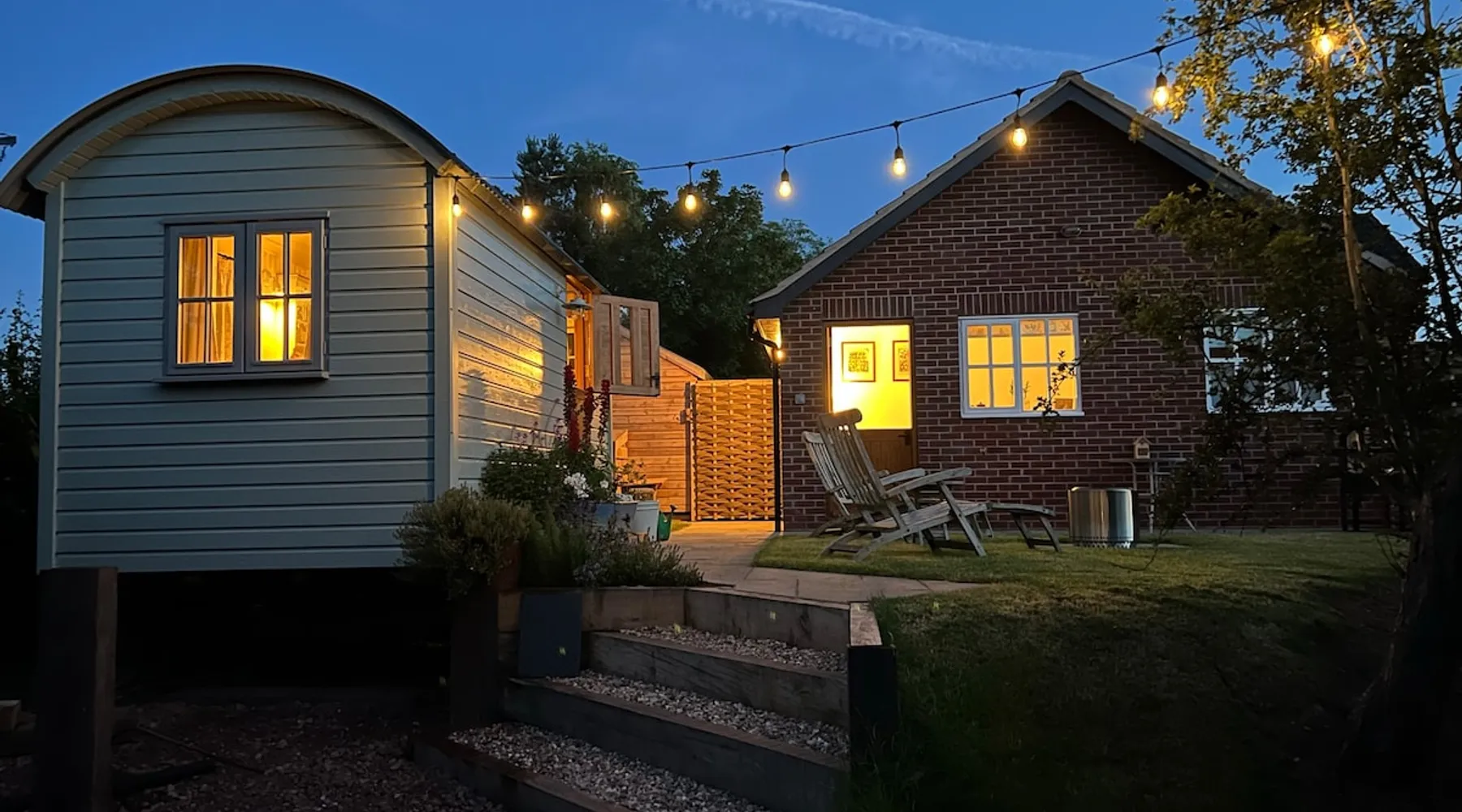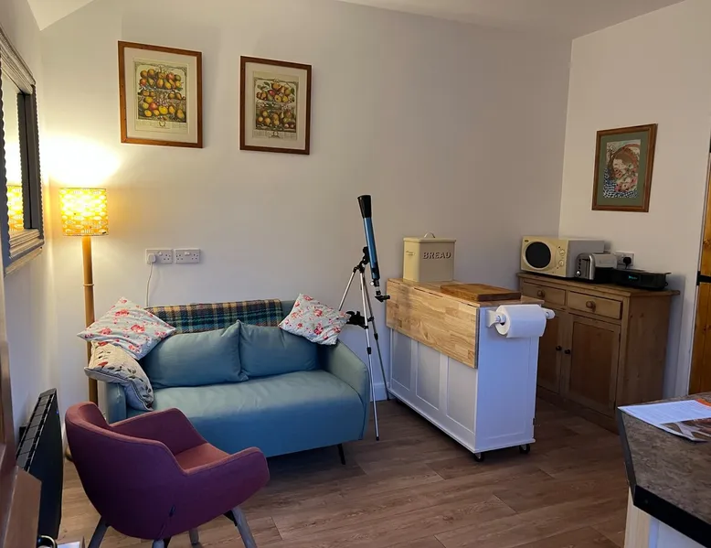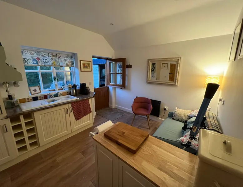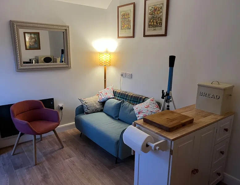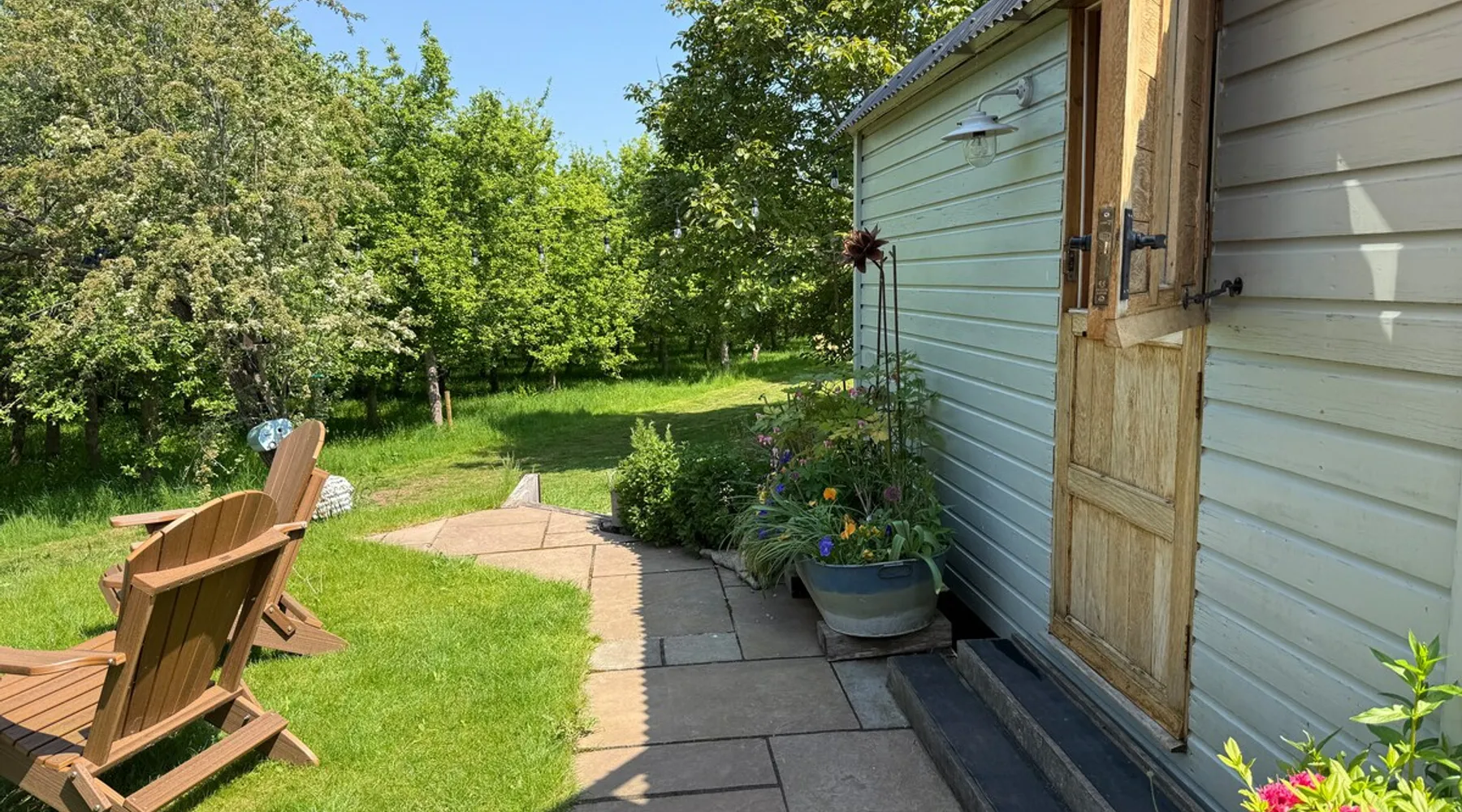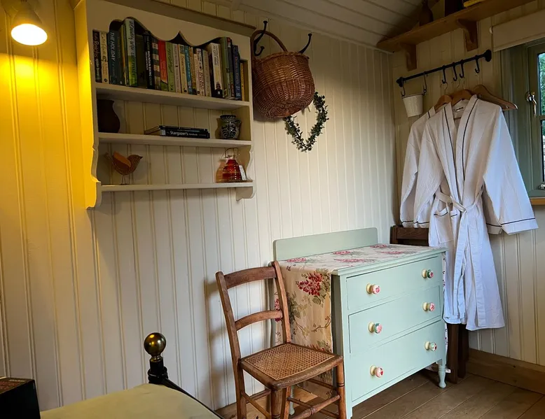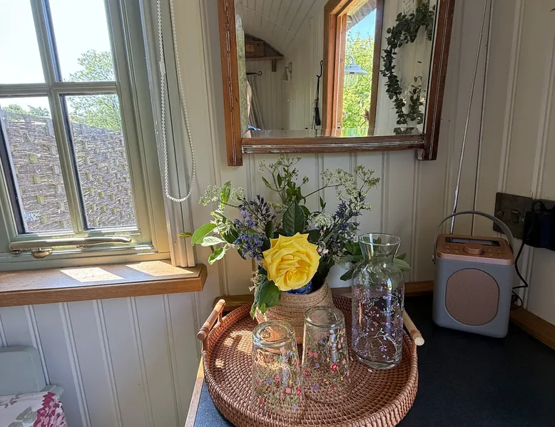 Wake up to the sound of birdsong in your sumptuous bed, feeling perfectly relaxed. In the evening, watch the stars appear shining brightly with the lack of light pollution, staying warm and cosy by the fire pit. Nestled on the fringe of an orchard on the edge of a working Cider Farm, our beautiful Shepherd Hut and Annex offer a romantic escape for two in The Wye Valley with everything you need for a relaxing break away from it all. The space Kate and Gary would like to welcome you to our own little corner of Herefordshire. We live close by should you need anything at all. Located in the Wye Valley in Herefordshire, on the edge of the Forest of Dean there are many places to visit only a short drive away. You may be in the countryside, but just a five minute walk to the village of Peterstow with a well stocked village Shop / Post Office, and the lovely Yew Tree Inn village Pub, which is also home to the Ross Cider Company. If you prefer to stay in, we have an excellent firepit and grill in your own little garden outside the hut. If delicious cream teas take your fancy, you can book one at Broome Farm which is just a five minute stroll from the hut or can even even be delivered to you! Takeaway deliveries are also available from various restaurants in Ross-on-Wye. Kitchen and bathroom facilities are located in the Annexe, just a short step away from your Shepherd's hut bedroom. Your own fitted kitchenette, with a large fridge freezer, air fryer, microwave, toaster, coffee machine plus a beautifully fitted shower room with a walk in shower. Towels provided. We have excellent free wi-fi and a Bose CD / Radio with cds provided of various genres plus books and games available. The hut itself contains a lovely double bed with all bed linen provided, plus two dressing gowns and a shelf of books for you to discover at your leisure. Try exploring the stars at night with our telescope. The galaxy can be amazing with the lack of light pollution in the dark skies of Herefordshire. You can stroll the orchards, take a picnic, or if you love to walk, there are many footpaths right on our doorstep. For the more adventurous, the Forest of Dean with its' World famous Mountain Biking tracks is only a short drive away. You could even try canoeing down the river Wye! Parking is available right next to the hut with an untethered charging point for electric vehicles and free charging during your stay. Guest access The Shepherd Hut & Annexe are all yours! Other things to note The Annexe is a separate private area with kitchen and bathroom facilities for your own personal use only. Remember to bring supplies as accommodation is on a self catering basis, although tea/coffee, milk, sugar and a few basic supplies are usually supplied . . The Solar panels on the roof of the building provide all your energy needs including hot water and heating. The EV Charger is automatically set to charge for six hours between 11:30am and 5:30am on our cheaper electricity tariff.