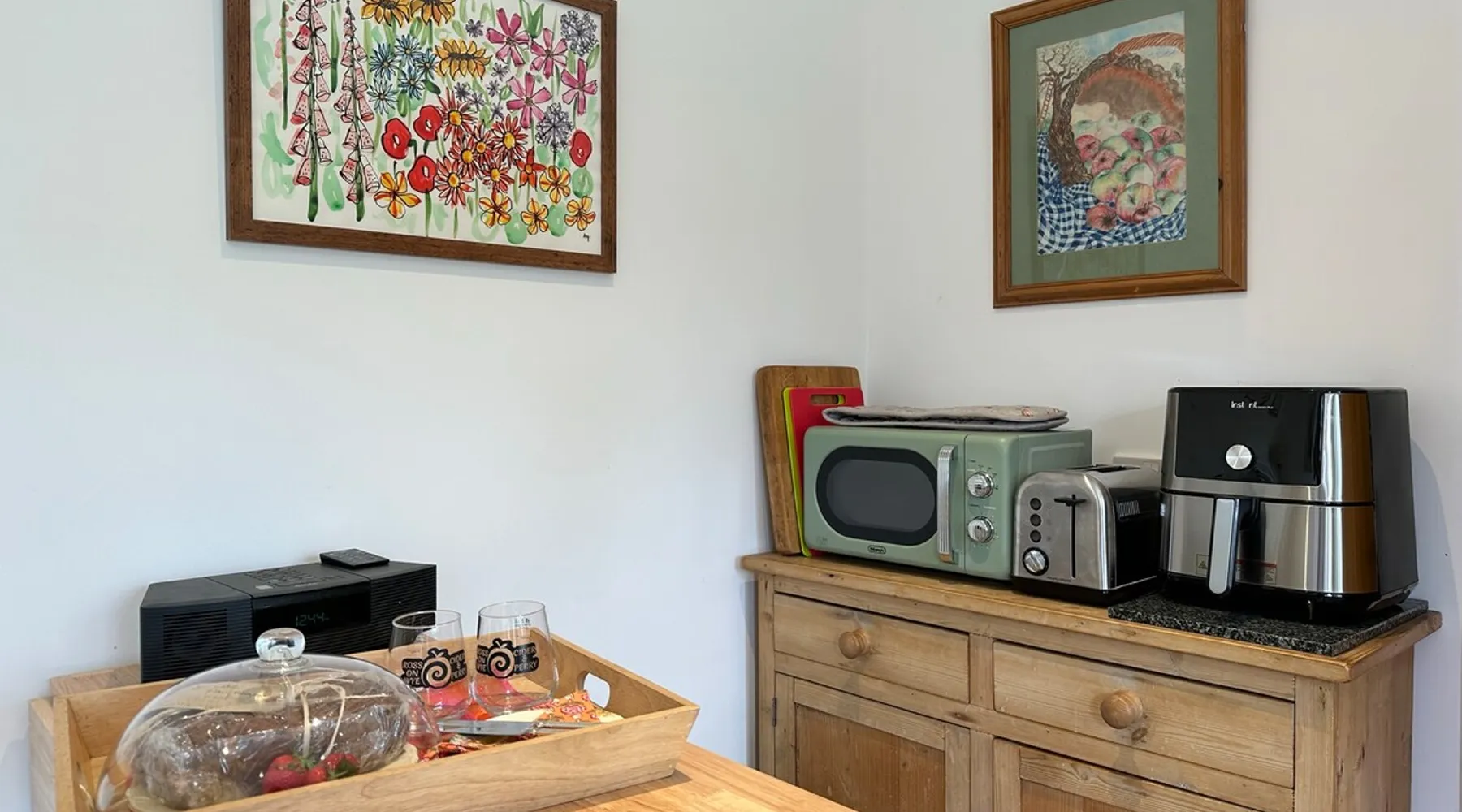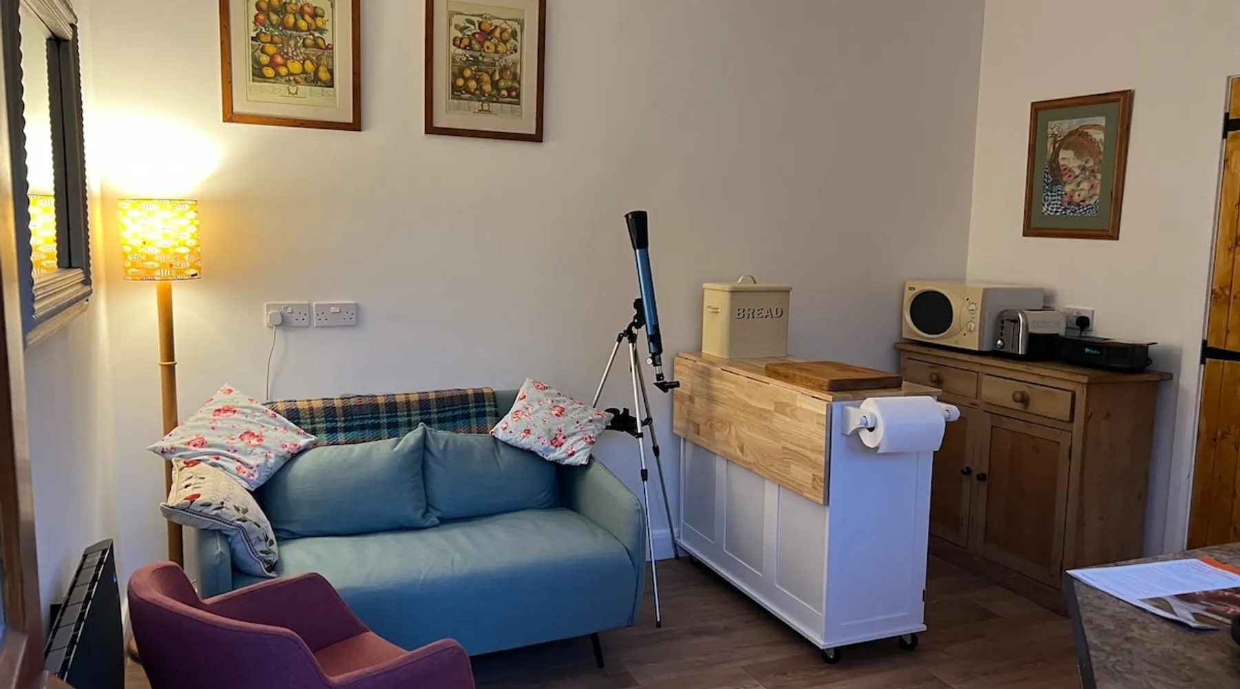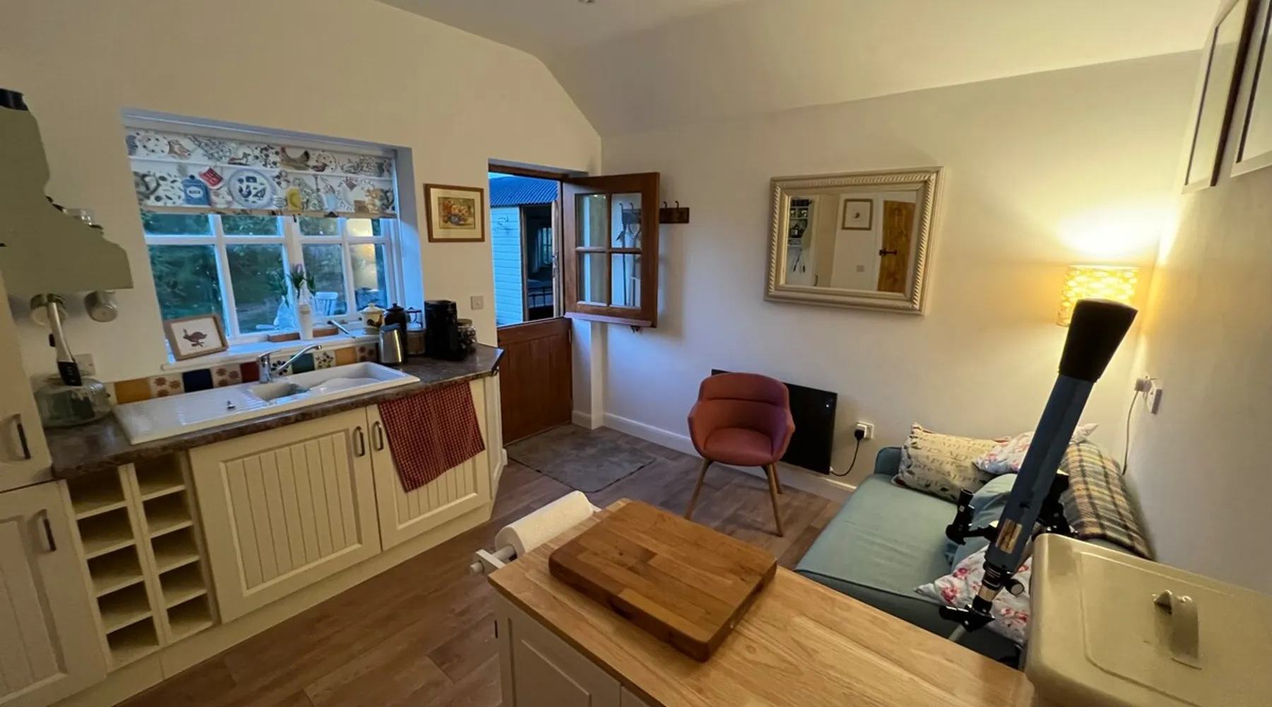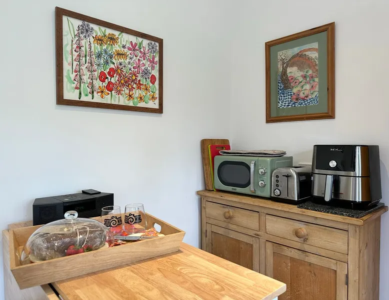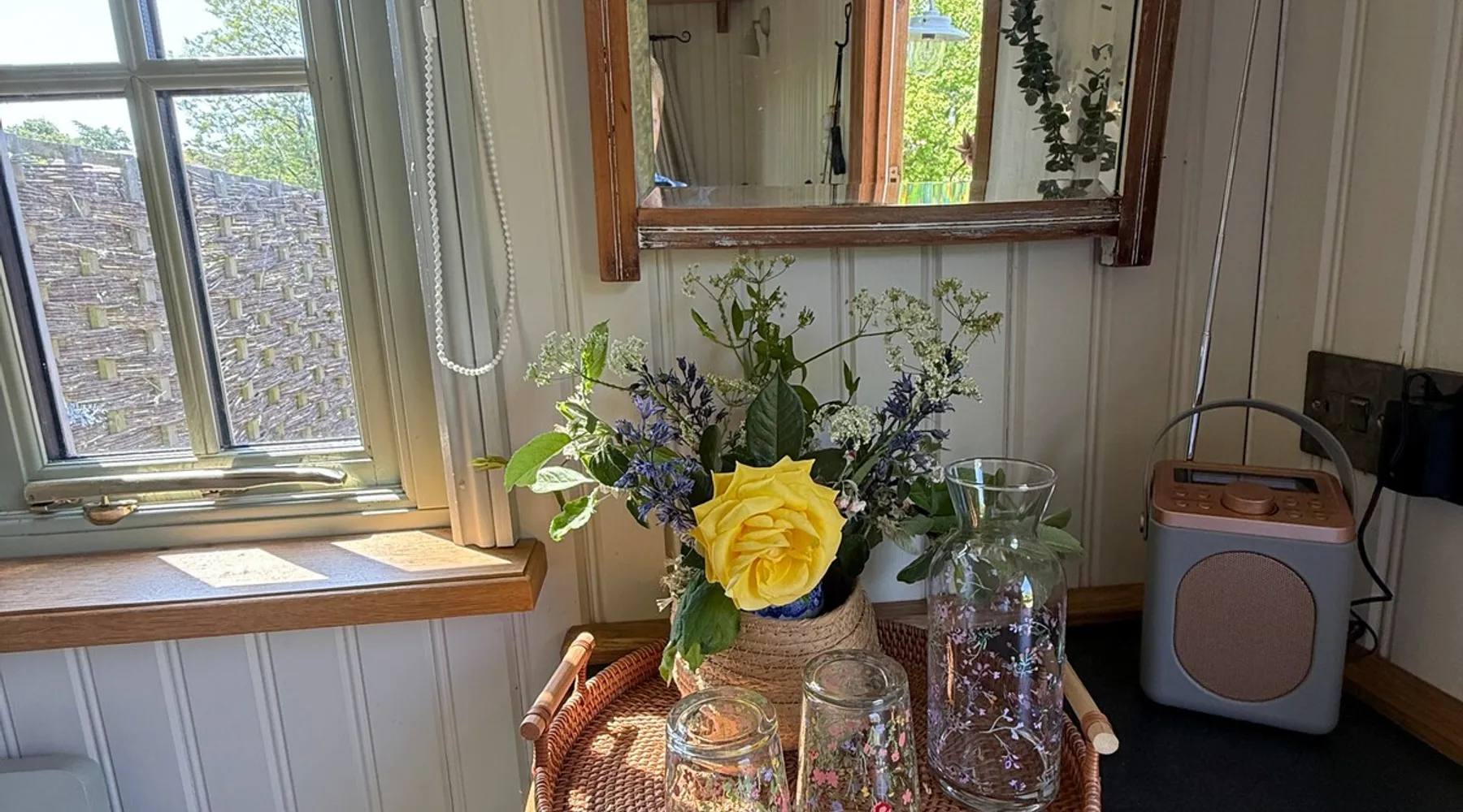 Wake up to the sound of birdsong in your sumptuous bed, feeling perfectly relaxed. In the evening, watch the stars appear shining brightly with the lack of light pollution, staying warm and cosy by the fire pit. Nestled on the fringe of an orchard on the edge of a working Cider Farm, our beautiful Shepherd Hut and Annex offer a romantic escape for two in The Wye Valley with everything you need for a relaxing break away from it all. The space Kate and Gary would like to welcome you to our own little corner of Herefordshire. We live close by should you need anything at all. Located in the Wye Valley in Herefordshire, on the edge of the Forest of Dean there are many places to visit only a short drive away. You may be in the countryside, but just a five minute walk to the village of Peterstow with a well stocked village Shop / Post Office, and the lovely Yew Tree Inn village Pub, which is also home to the Ross Cider Company. If you prefer to stay in, we have an excellent firepit and grill in your own little garden outside the hut. If delicious cream teas take your fancy, you can book one at Broome Farm which is just a five minute stroll from the hut or can even even be delivered to you! Takeaway deliveries are also available from various restaurants in Ross-on-Wye. Kitchen and bathroom facilities are located in the Annexe, just a short step away from your Shepherd's hut bedroom. Your own fitted kitchenette, with a large fridge freezer, air fryer, microwave, toaster, coffee machine plus a beautifully fitted shower room with a walk in shower. Towels provided. We have excellent free wi-fi and a Bose CD / Radio with cds provided of various genres plus books and games available. The hut itself contains a lovely double bed with all bed linen provided, plus two dressing gowns and a shelf of books for you to discover at your leisure. Try exploring the stars at night with our telescope. The galaxy can be amazing with the lack of light pollution in the dark skies of Herefordshire. You can stroll the orchards, take a picnic, or if you love to walk, there are many footpaths right on our doorstep. For the more adventurous, the Forest of Dean with its' World famous Mountain Biking tracks is only a short drive away. You could even try canoeing down the river Wye! Parking is available right next to the hut with an untethered charging point for electric vehicles and free charging during your stay. Guest access The Shepherd Hut & Annexe are all yours! Other things to note The Annexe is a separate private area with kitchen and bathroom facilities for your own personal use only. Remember to bring supplies as accommodation is on a self catering basis, although tea/coffee, milk, sugar and a few basic supplies are usually supplied . . The Solar panels on the roof of the building provide all your energy needs including hot water and heating. The EV Charger is automatically set to charge for six hours between 11:30am and 5:30am on our cheaper electricity tariff.