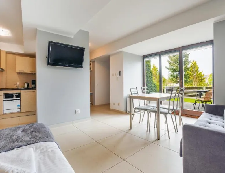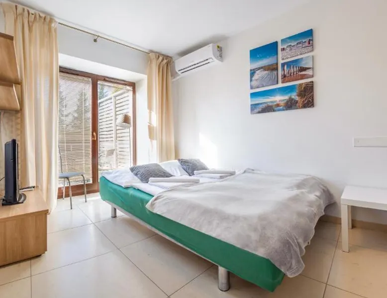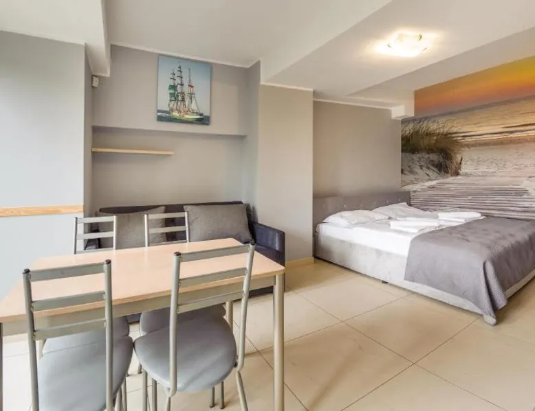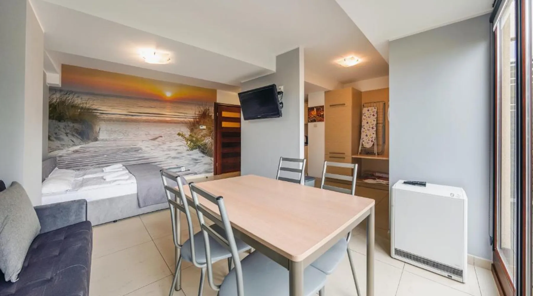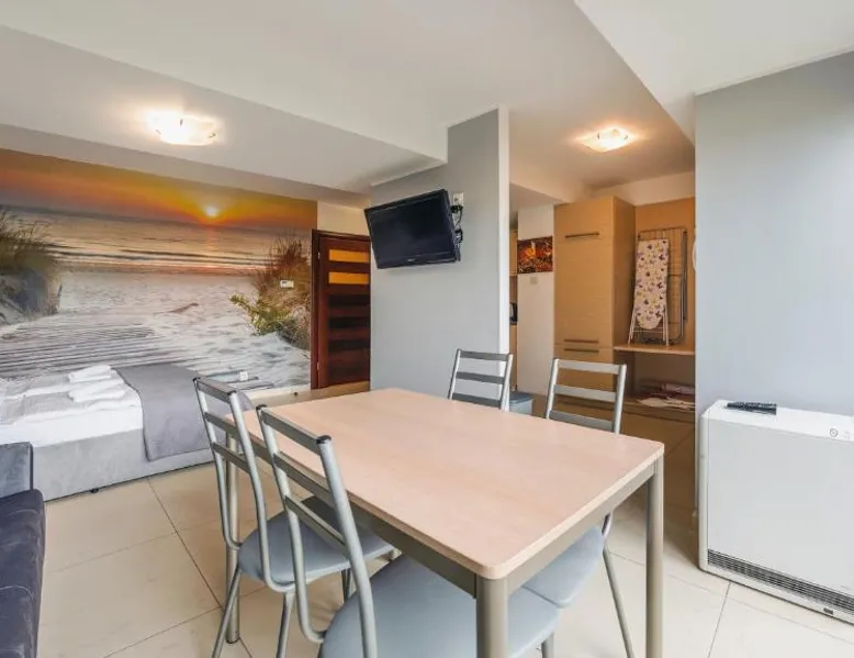 Comfortable Accommodations: Lido Sarbinowo, Sun & Snow in Sarbinowo offers family rooms and a children's playground. The apartment features a kitchenette, private bathroom, and a dining area. Modern Amenities: Guests enjoy air-conditioning, a terrace, balcony, washing machine, and a TV. Additional amenities include a coffee machine, microwave, dishwasher, and toaster. Convenient Location: Sarbinowo Beach is a 6-minute walk away. Solidarity Szczecin-Goleniów Airport is 80 mi from the property. Nearby attractions include Kolobrzeg Old Town Hall (21 mi) and Mielno Train Station (5 mi). Guest Favorites: Guests appreciate the convenient location and the range of amenities. The studio features a seating area, a dining area, as well as a private bathroom boasting a shower and a hairdryer. In the fully equipped kitchenette, guests will find a stovetop, a refrigerator, a dishwasher and kitchenware. This studio has a washing machine, a coffee machine, a flat-screen TV with cable channels and a terrace. The unit has 2 beds.