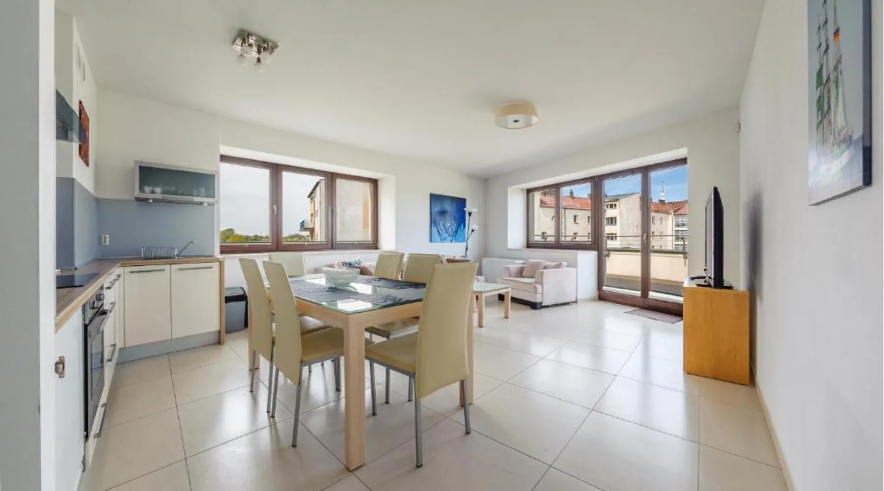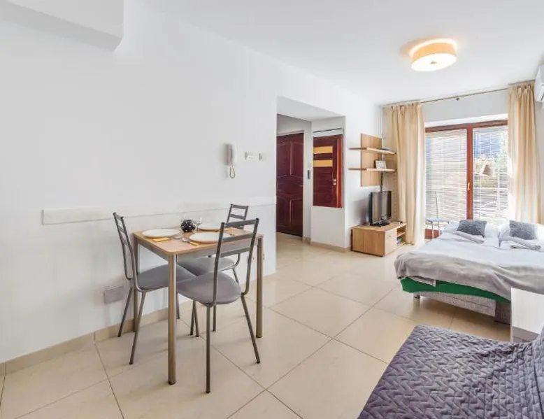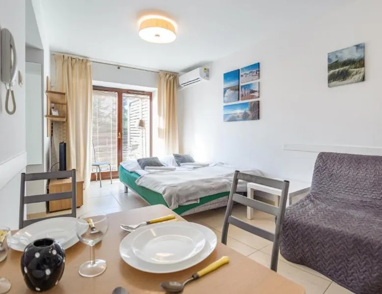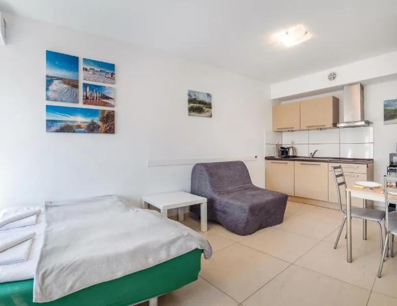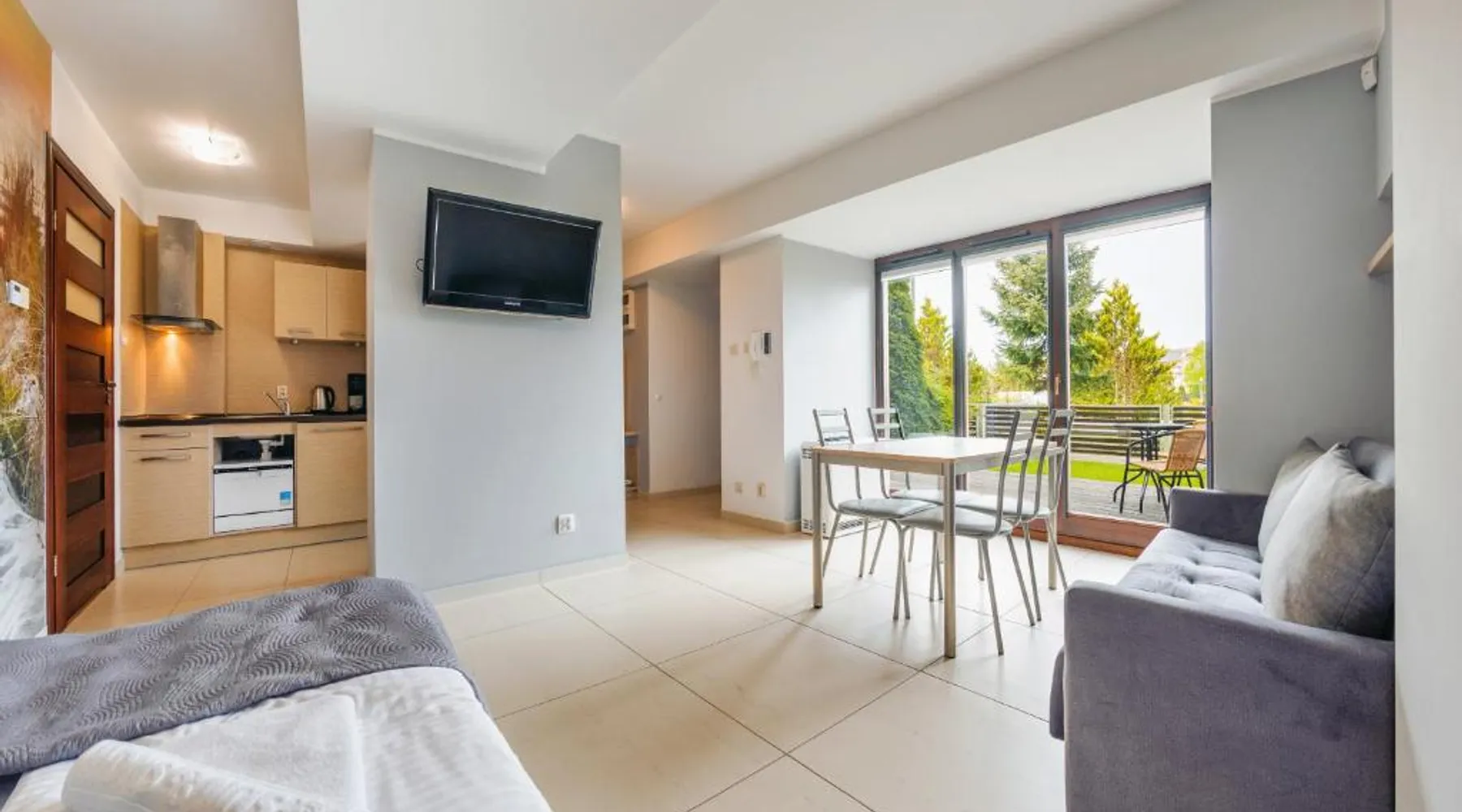 Comfortable Accommodations: Lido Sarbinowo, Sun & Snow in Sarbinowo offers family rooms and a children's playground. The apartment features a kitchenette, private bathroom, and a dining area. Modern Amenities: Guests enjoy air-conditioning, a terrace, balcony, washing machine, and a TV. Additional amenities include a coffee machine, microwave, dishwasher, and toaster. Convenient Location: Sarbinowo Beach is a 6-minute walk away. Solidarity Szczecin-Goleniów Airport is 80 mi from the property. Nearby attractions include Kolobrzeg Old Town Hall (21 mi) and Mielno Train Station (5 mi). Guest Favorites: Guests appreciate the convenient location and the range of amenities. The studio features a seating area, a dining area, as well as a private bathroom boasting a shower and a hairdryer. In the fully equipped kitchenette, guests will find a stovetop, a refrigerator, a dishwasher and kitchenware. This studio has a washing machine, a coffee machine, a flat-screen TV with cable channels and a terrace. The unit has 2 beds.