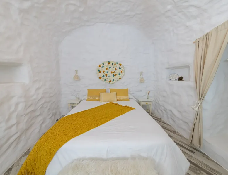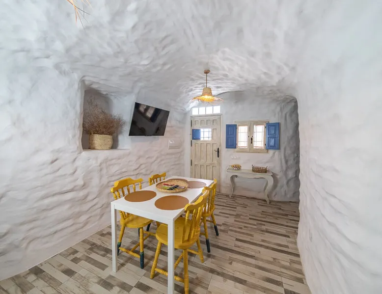 The space Experience warmth and comfort in the Rosa de Fuego cave, our coziest accommodation designed to offer you a unique holiday experience in the heart of the Baza River. This cozy cave features two spacious bedrooms, a fully equipped kitchen, a bathroom, and a living room that stands out for its large central stove, creating a warm and welcoming atmosphere where you can feel at home. The generous terrace of the Rosa de Fuego cave is complemented by a charming covered porch, the perfect space to relax, read a book, or enjoy a glass of wine while appreciating the beauty of the natural surroundings that surround you. Located in a quiet complex with communal areas and a shared pool, this cave invites you to live an unforgettable stay in an environment that combines the essence of nature with all modern comforts. Just 8 km from the town, enjoy a getaway in our coziest accommodation and immerse yourself in the serenity and beauty of the Rosa de Fuego cave. In summary, our complex offers you a wide range of services and communal spaces so that you can fully enjoy your stay, immersed in the tranquility and beauty of an oasis of peace and authenticity. Experience the magic of living in a cave house and create unforgettable moments with your loved ones. Guest access At our cave complex, enjoy services and communal areas designed to provide you with an unforgettable experience in a natural and authentic environment. Although we do not offer breakfast, each cave has a fully equipped kitchen for preparing your meals and an individual barbecue for outdoor enjoyment. The viewpoint is the perfect place to relax by the Viking fire and enjoy panoramic views. The sand pool with a Jacuzzi bubble zone and waterfall invites you to immerse yourself and disconnect, accompanied by sun loungers and shaded areas for resting. Other things to note To reach the town, it is recommended to have a car, bicycle, or motorcycle as it is located 8 km away. However, the area is perfect for walking and exploring. Registration Details Andalucia - Regional registration number A/GR/00410