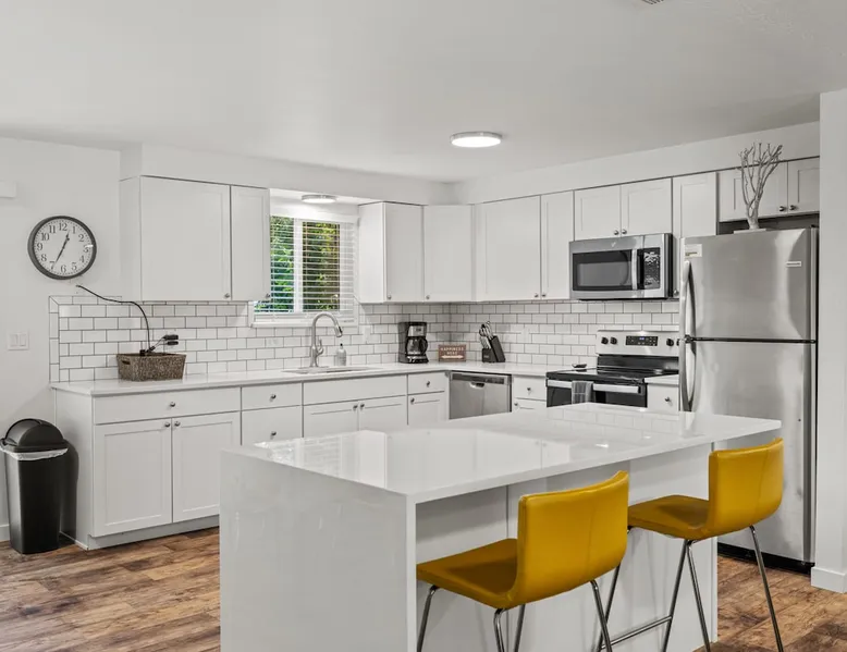 Get the best of both worlds when you stay at this Boise vacation rental situated at the crossroads of big-city entertainment and outdoor recreation! This 3-bed, 2-bath home offers all of the comforts of home with a fully equipped kitchen and modern furnishings. You don't have to venture far to get your urban fix in the downtown area teaming with unique shops, local eats, museums, and sites. Follow up your day in the city with fresh air and float the Boise River or hike the foothill trails! The space Welcome to your home away from home! This bright and spacious retreat is designed with comfort and connection in mind—ideal for families, friends, or groups looking to relax, gather, and make memories. The newly remodeled kitchen is fully stocked and ready for everything from quick breakfasts to big family dinners. With a large island, new appliances, plenty of storage, and a formal dining area, there’s space for everyone to come together. The open layout makes cooking and gathering effortless. Kick back in the cozy living room with a big sectional (that also doubles as a 4th bed!), a large TV for movies, shows, or sports, and a variety of games for fun nights in. Plenty of seating means no one is left out. Step outside to your HUGE yard, complete with outdoor dining furniture—perfect for barbecues, evening drinks, or simply soaking up fresh air under the stars. Primary Suite: Queen bed, full closet, walk-in shower, and a cozy design that feels like home. Bedroom 2 & 3: Spacious rooms with queen beds, full closets, and reading lamps for a restful night. Bathroom 2: Double sinks, shower/tub combo, stocked linens, and a hair dryer. We’ve stocked the home with everything you need: fresh coffee, clean towels and linens, washer/dryer, baking and cooking tools, board games, cards, and more—so you can pack light and feel right at home. Whether you’re gathering for a family trip, a friends’ getaway, or a peaceful escape, this home has everything you need for comfort, convenience, and connection. Guest access The whole house is yours! Other things to note We only have one TV, in hopes that our home will bring your group closer and encourage games, adventures, and conversations. There is no cable TV, but there are many apps that can be logged into. The garage door motor is currently not working. Please note that for stays exceeding 29 nights, Idaho law requires that we must obtain a lease from you before hosting your stay. Our company policy also dictates that stays exceeding 29 nights require an extra cleaning every 29 days. This will be billed at the cost of an additional cleaning fee. These extra cleanings help keep our home an enjoyable place for all renters and really help our cleaning crews at the time of checkout. Please keep these policies in mind if booking a long term stay. Any unauthorized pet will be charged $250. A late checkout fee of $30 will be charged after 15 minutes late. An additional $30 will be charged every 30 minute increment after that.