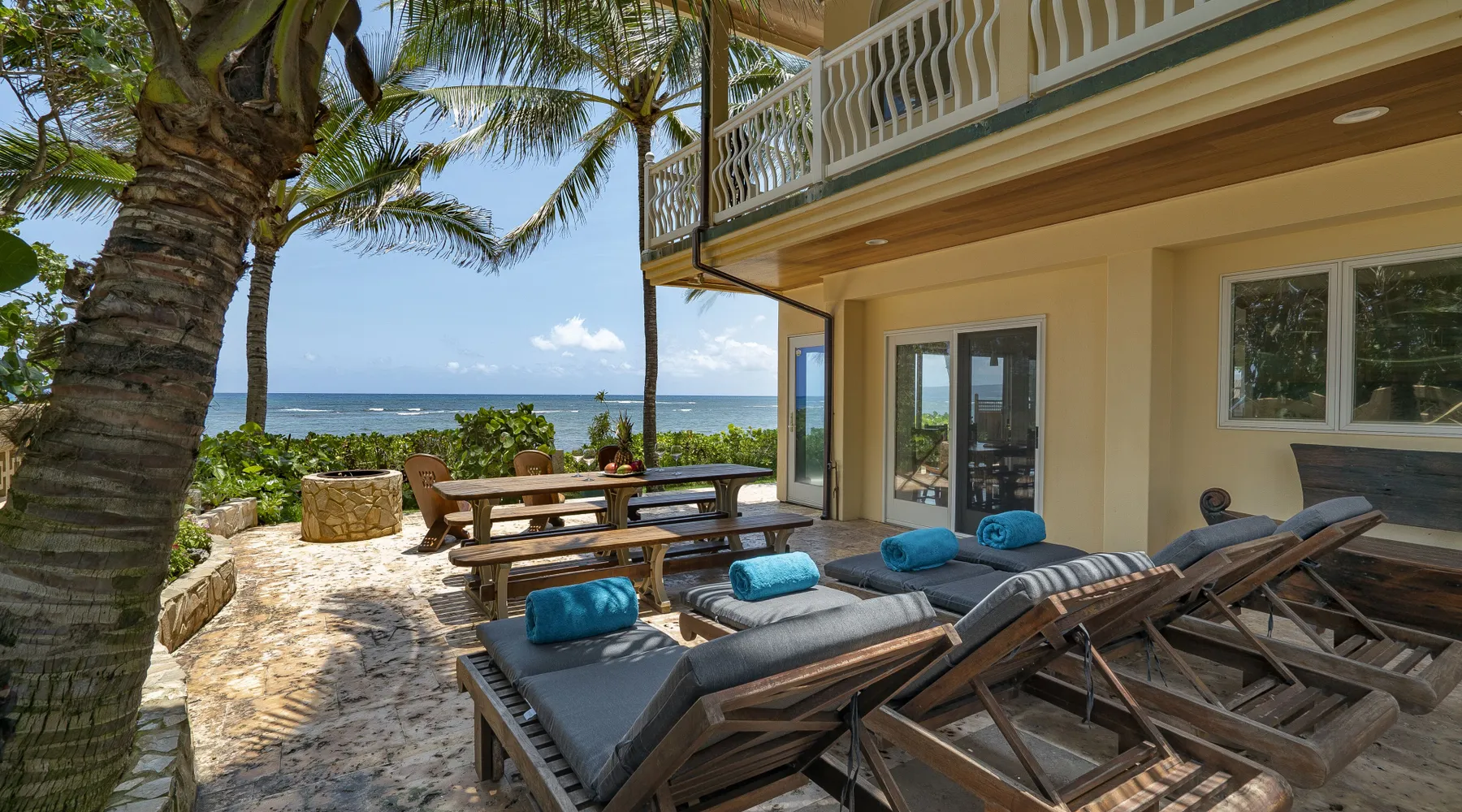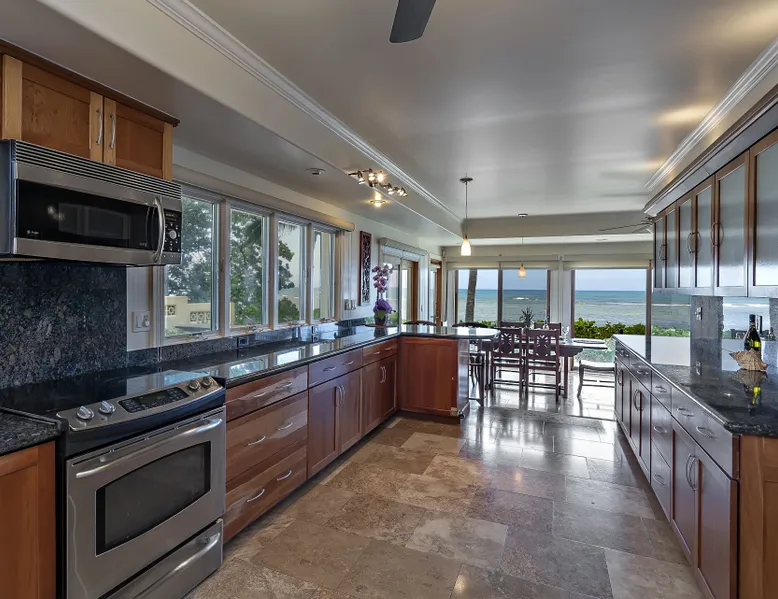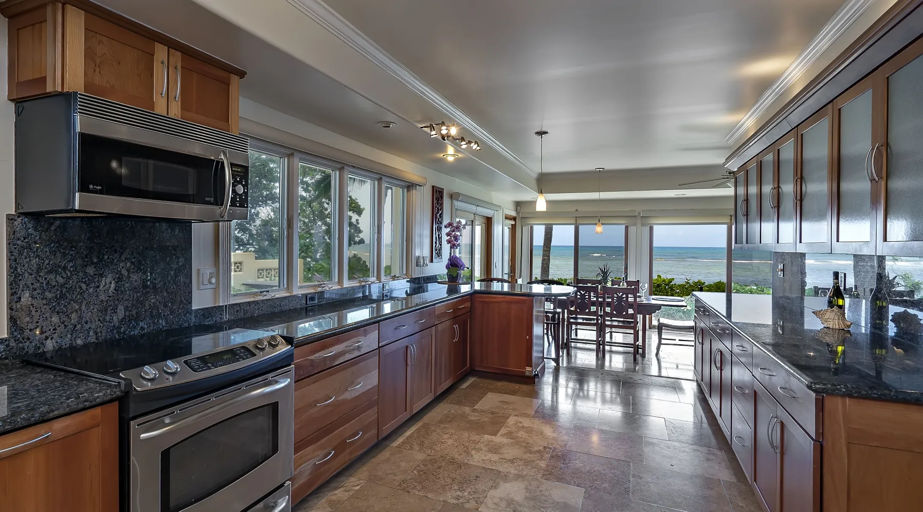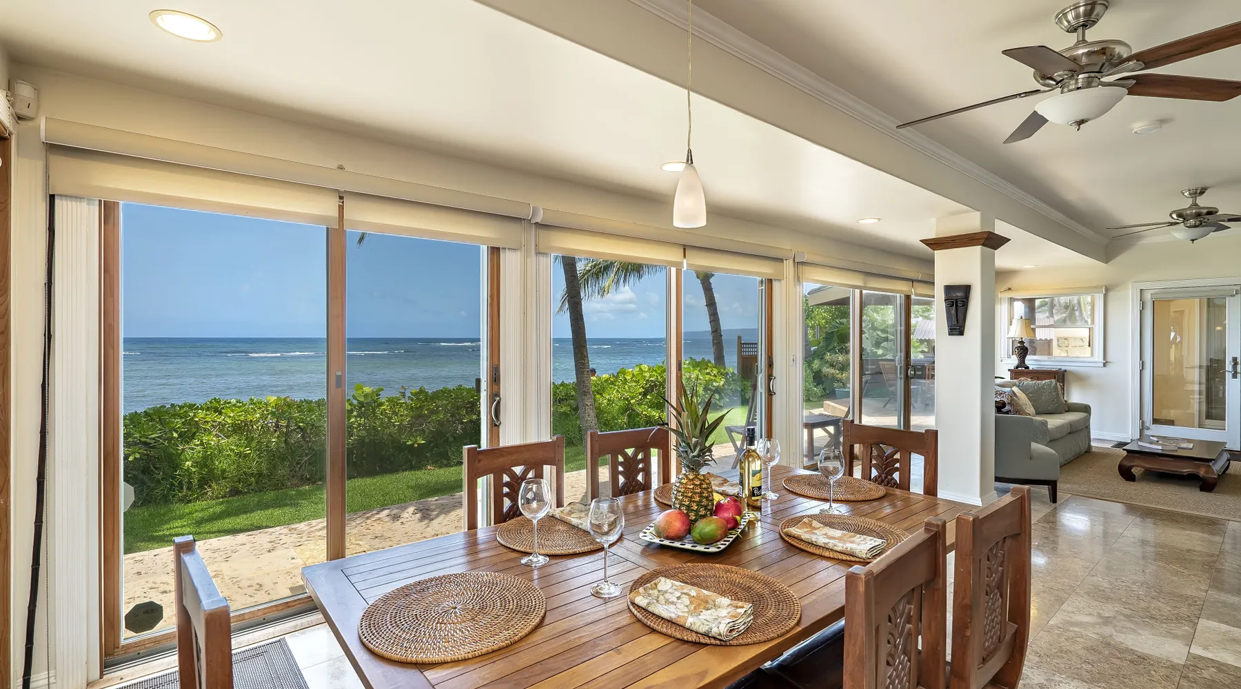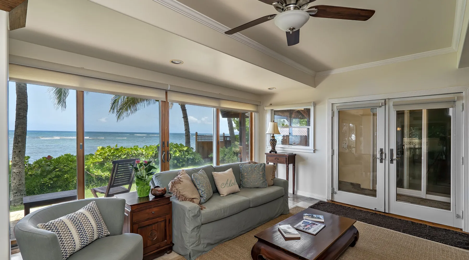 Leimoku is a large and accommodating, beautifully updated, and modern Hawaii home on Oahu's famous North Shore. Located on the "quiet side" of the North Shore, away from all the crowds, this 3000 sq.ft. home is comfortable and luxurious, with three of the four large bedrooms boasting en-suite baths. Featuring a large wrap around second-story lanai, and another large outdoor oceanfront lanai with loungers, BBQ, hot/cold outside shower, and dining table, the glorious ocean and mountain views won't disappoint as you use the ample space to enjoy your surroundings! Step down from the lanai directly onto a gorgeous white-sandy beach and into the lagoon-like tropical waters. Ocean views abound from three of the four bedrooms, kitchen, and both living rooms. With room-controlled Air Conditioning throughout the home and in every bedroom, the choice is up to you, ocean breezes or A/C temp of your choosing in your own room. The upstairs master bedroom has a king sized bed, walk in closet and the attached bathroom has a large soaking tub and separate shower. The remaining two upstairs bedrooms each have queen sized beds and full bathrooms. The downstairs bedroom also has a queen-sized bed, with the full sized bathroom in the hallway next to it. The attached cottage is perfect for kids or teens, and with 3 twin beds and a shower, it comfortably sleeps up to 3 people, though not as luxurious as the rest of the bedrooms. The home boasts a large, fully equipped kitchen with everything you need to create a fabulous meal away from home. Keurig machine and pods provided for your pleasure. There is also an upstairs bar in the oceanfront living area that can be the center of many fun cocktail hours! Haleiwa town, the surfing capitol of the world, a quaint and popular beach town with grocery, bakery, boutiques, fine-dining, ocean sport rental gear, and surf shops is only two minutes away. Beach Gear: Please note, post Covid, we are supplying beach chairs and beach towels only. Please use Hawaii Beach Time dot com to arrange for additional desired gear (snorkels/masks/boards) to be delivered to your rental or use one of the many gear shops in Haleiwa such as Surf n Sea. At Leimoku, you will enjoy luxury, privacy, and beautiful beaches, all with easy access to the conveniences of our town. Come and make your best family memories with us at Leimoku!!! *** This home will require a mid stay clean*** *No Weddings *No Gatherings/Parties *No Exceptions!!! TA#117-207-9616-01 ** Currently Renting in accordance with the City and County ordinance restricting to one rental per 30 day time period. Questions contact manager. ** InstaBook bookings are still subject to owner approval. If approval not obtained, guest will be asked to cancel their Instabook reservation within 24hrs of making reservation. No check-ins allowed on major Holidays: Christmas, New Years Day, Easter, Thanksgiving Hawaii Life Rentals is a locally owned, licensed real estate company with rentals on Kauai, Maui, Oahu, and Hawaii. We offer on-island personal assistance and Concierge services. Rates do not include taxes, cleaning and applicable fees. Hawaii Life/VRBO bookings: Guests must sign a rental contract within 48 hours of booking to confirm the reservation. TA-117-207-9616-0 In compliance with the Ordinances of the City & County of Honolulu, the Property will be made available to you for your use and occupancy for a minimum period of thirty (30) days.