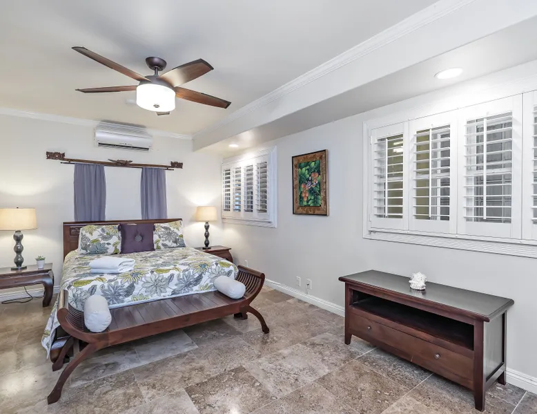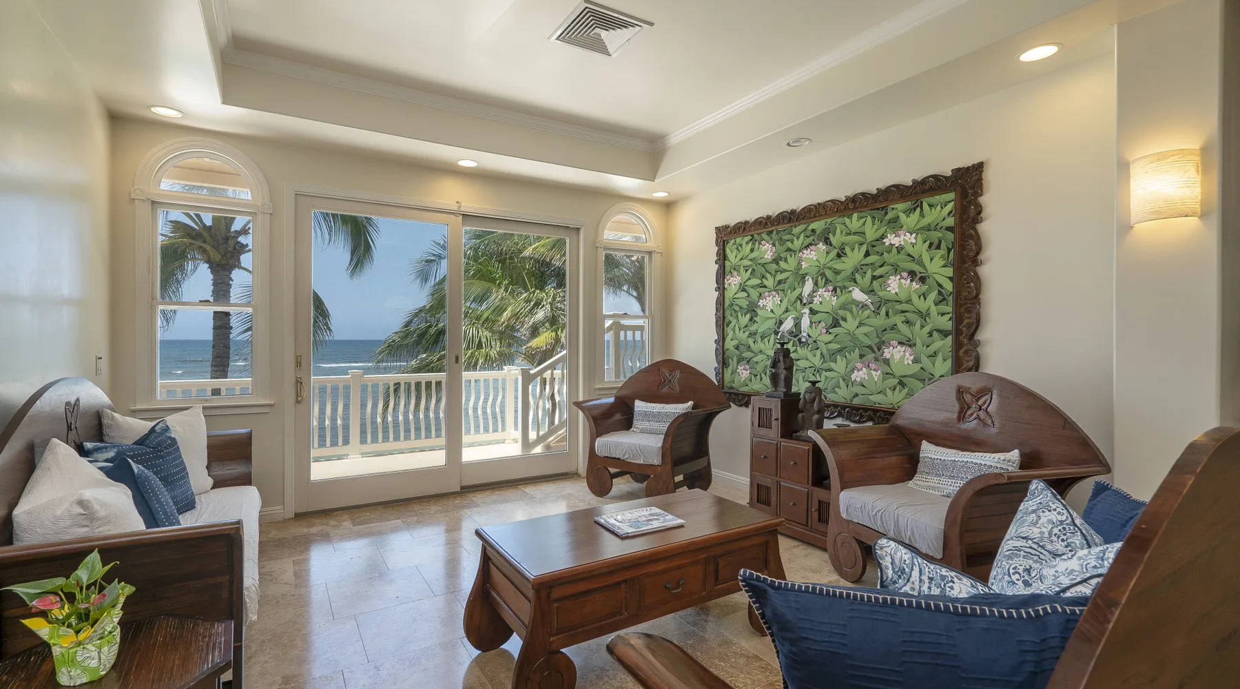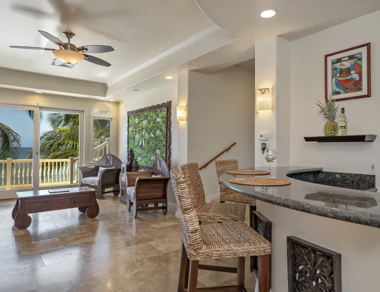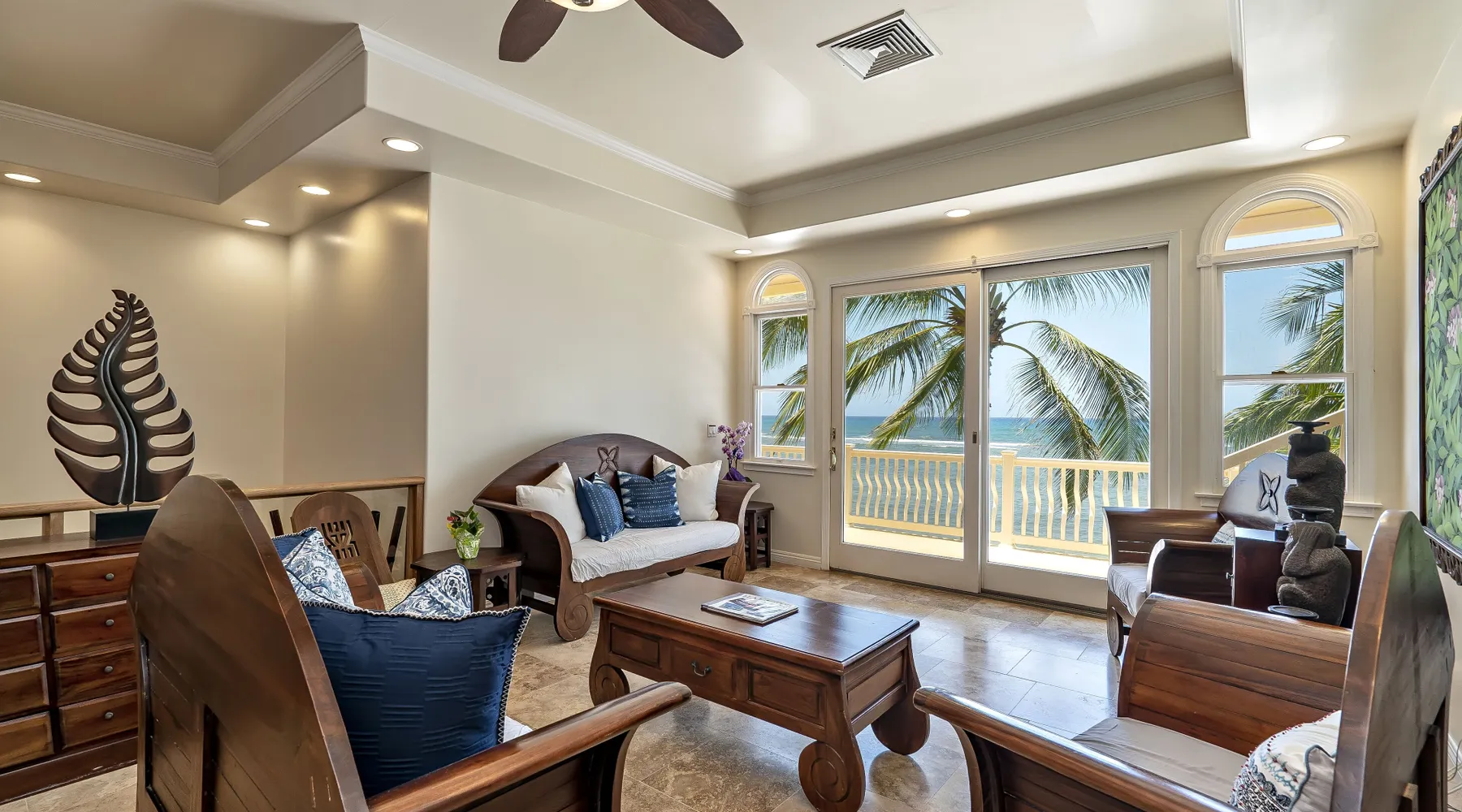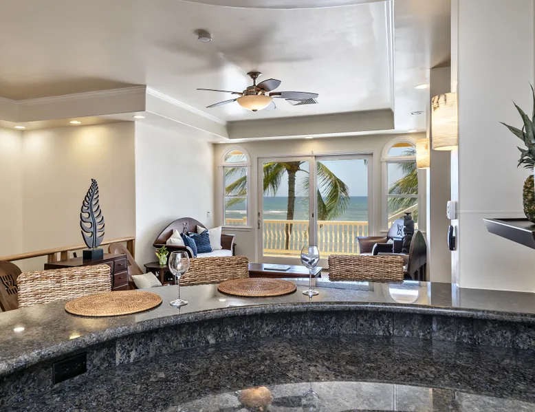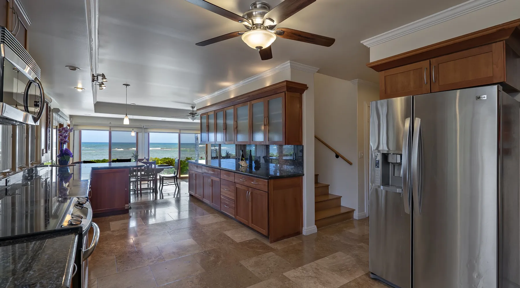 Leimoku is a large and accommodating, beautifully updated, and modern Hawaii home on Oahu's famous North Shore. Located on the "quiet side" of the North Shore, away from all the crowds, this 3000 sq.ft. home is comfortable and luxurious, with three of the four large bedrooms boasting en-suite baths. Featuring a large wrap around second-story lanai, and another large outdoor oceanfront lanai with loungers, BBQ, hot/cold outside shower, and dining table, the glorious ocean and mountain views won't disappoint as you use the ample space to enjoy your surroundings! Step down from the lanai directly onto a gorgeous white-sandy beach and into the lagoon-like tropical waters. Ocean views abound from three of the four bedrooms, kitchen, and both living rooms. With room-controlled Air Conditioning throughout the home and in every bedroom, the choice is up to you, ocean breezes or A/C temp of your choosing in your own room. The upstairs master bedroom has a king sized bed, walk in closet and the attached bathroom has a large soaking tub and separate shower. The remaining two upstairs bedrooms each have queen sized beds and full bathrooms. The downstairs bedroom also has a queen-sized bed, with the full sized bathroom in the hallway next to it. The attached cottage is perfect for kids or teens, and with 3 twin beds and a shower, it comfortably sleeps up to 3 people, though not as luxurious as the rest of the bedrooms. The home boasts a large, fully equipped kitchen with everything you need to create a fabulous meal away from home. Keurig machine and pods provided for your pleasure. There is also an upstairs bar in the oceanfront living area that can be the center of many fun cocktail hours! Haleiwa town, the surfing capitol of the world, a quaint and popular beach town with grocery, bakery, boutiques, fine-dining, ocean sport rental gear, and surf shops is only two minutes away. Beach Gear: Please note, post Covid, we are supplying beach chairs and beach towels only. Please use Hawaii Beach Time dot com to arrange for additional desired gear (snorkels/masks/boards) to be delivered to your rental or use one of the many gear shops in Haleiwa such as Surf n Sea. At Leimoku, you will enjoy luxury, privacy, and beautiful beaches, all with easy access to the conveniences of our town. Come and make your best family memories with us at Leimoku!!! *** This home will require a mid stay clean*** *No Weddings *No Gatherings/Parties *No Exceptions!!! TA#117-207-9616-01 ** Currently Renting in accordance with the City and County ordinance restricting to one rental per 30 day time period. Questions contact manager. ** InstaBook bookings are still subject to owner approval. If approval not obtained, guest will be asked to cancel their Instabook reservation within 24hrs of making reservation. No check-ins allowed on major Holidays: Christmas, New Years Day, Easter, Thanksgiving Hawaii Life Rentals is a locally owned, licensed real estate company with rentals on Kauai, Maui, Oahu, and Hawaii. We offer on-island personal assistance and Concierge services. Rates do not include taxes, cleaning and applicable fees. Hawaii Life/VRBO bookings: Guests must sign a rental contract within 48 hours of booking to confirm the reservation. TA-117-207-9616-0 In compliance with the Ordinances of the City & County of Honolulu, the Property will be made available to you for your use and occupancy for a minimum period of thirty (30) days.