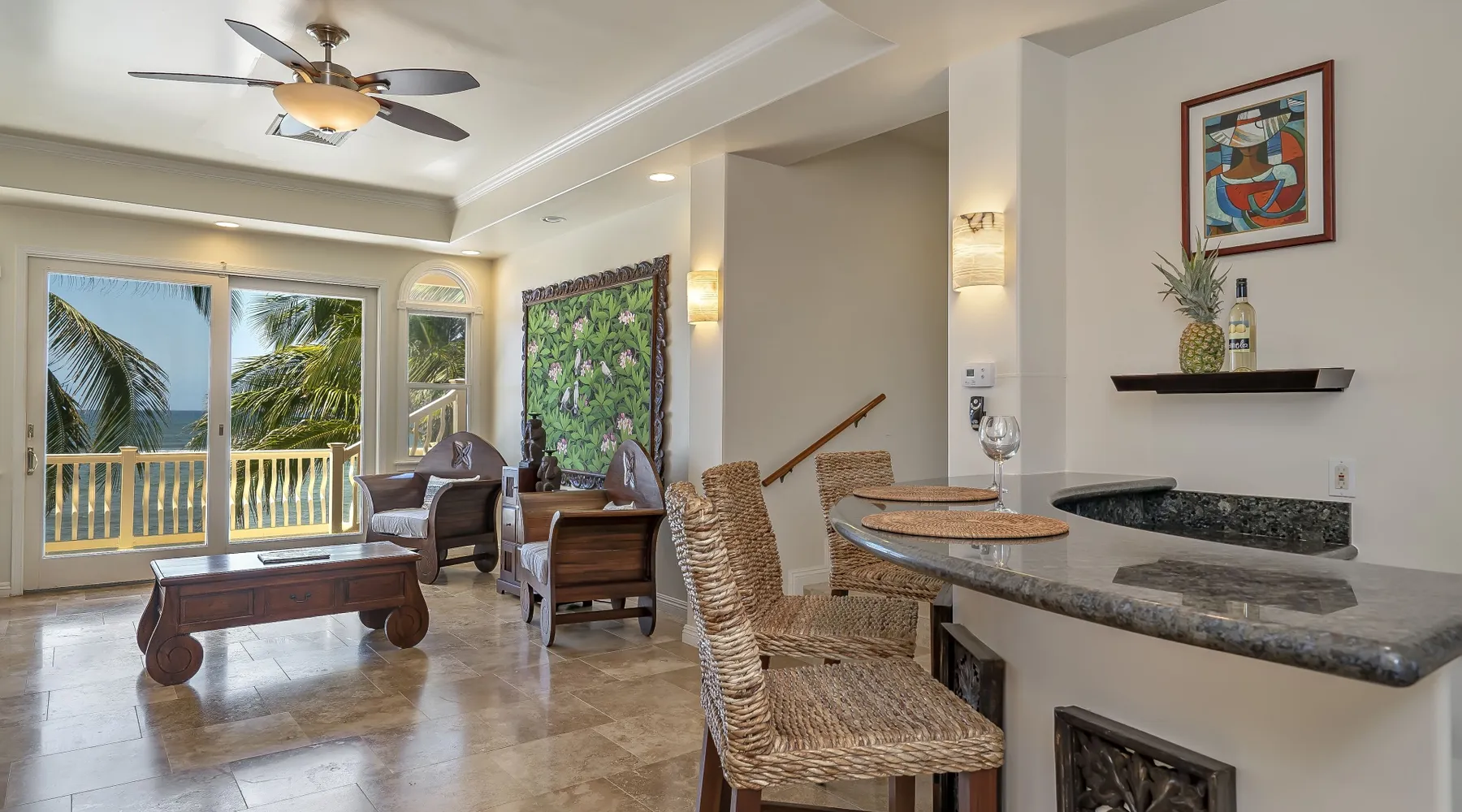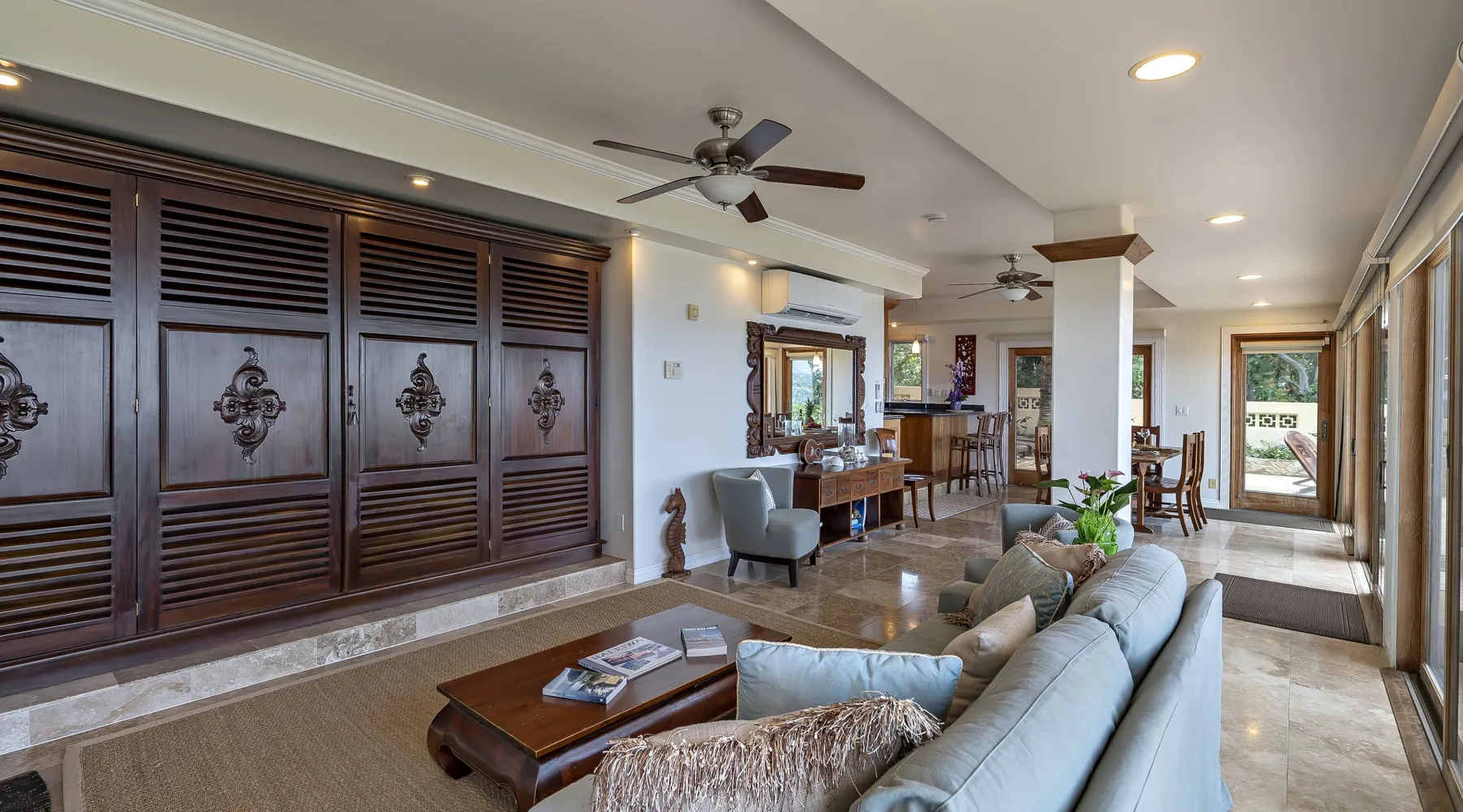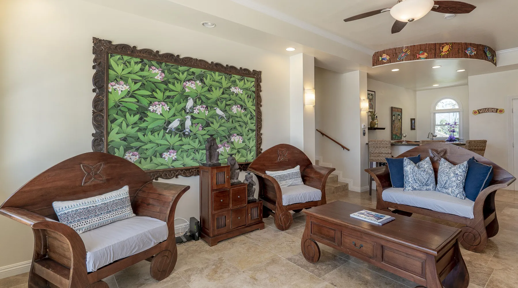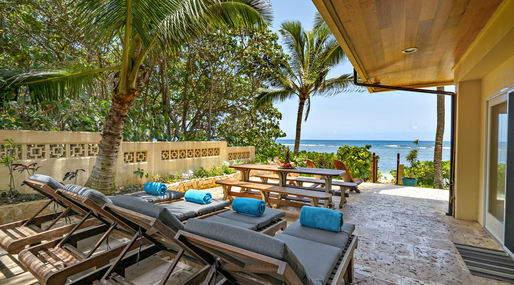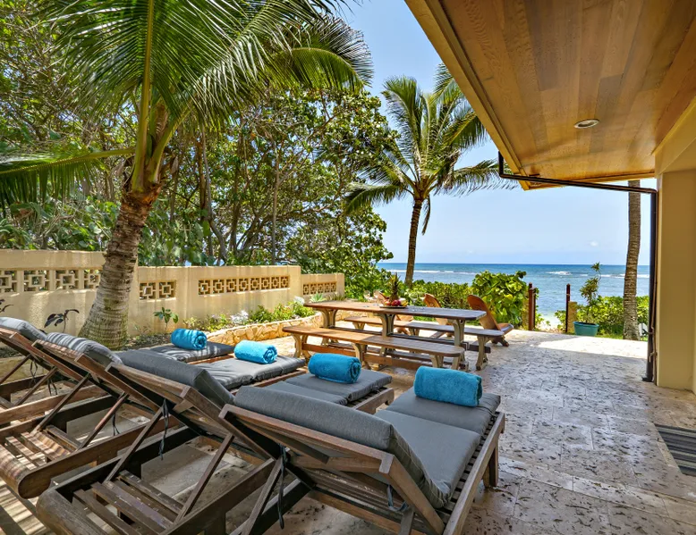 Leimoku is a large and accommodating, beautifully updated, and modern Hawaii home on Oahu's famous North Shore. Located on the "quiet side" of the North Shore, away from all the crowds, this 3000 sq.ft. home is comfortable and luxurious, with three of the four large bedrooms boasting en-suite baths. Featuring a large wrap around second-story lanai, and another large outdoor oceanfront lanai with loungers, BBQ, hot/cold outside shower, and dining table, the glorious ocean and mountain views won't disappoint as you use the ample space to enjoy your surroundings! Step down from the lanai directly onto a gorgeous white-sandy beach and into the lagoon-like tropical waters. Ocean views abound from three of the four bedrooms, kitchen, and both living rooms. With room-controlled Air Conditioning throughout the home and in every bedroom, the choice is up to you, ocean breezes or A/C temp of your choosing in your own room. The upstairs master bedroom has a king sized bed, walk in closet and the attached bathroom has a large soaking tub and separate shower. The remaining two upstairs bedrooms each have queen sized beds and full bathrooms. The downstairs bedroom also has a queen-sized bed, with the full sized bathroom in the hallway next to it. The attached cottage is perfect for kids or teens, and with 3 twin beds and a shower, it comfortably sleeps up to 3 people, though not as luxurious as the rest of the bedrooms. The home boasts a large, fully equipped kitchen with everything you need to create a fabulous meal away from home. Keurig machine and pods provided for your pleasure. There is also an upstairs bar in the oceanfront living area that can be the center of many fun cocktail hours! Haleiwa town, the surfing capitol of the world, a quaint and popular beach town with grocery, bakery, boutiques, fine-dining, ocean sport rental gear, and surf shops is only two minutes away. Beach Gear: Please note, post Covid, we are supplying beach chairs and beach towels only. Please use Hawaii Beach Time dot com to arrange for additional desired gear (snorkels/masks/boards) to be delivered to your rental or use one of the many gear shops in Haleiwa such as Surf n Sea. At Leimoku, you will enjoy luxury, privacy, and beautiful beaches, all with easy access to the conveniences of our town. Come and make your best family memories with us at Leimoku!!! *** This home will require a mid stay clean*** *No Weddings *No Gatherings/Parties *No Exceptions!!! TA#117-207-9616-01 ** Currently Renting in accordance with the City and County ordinance restricting to one rental per 30 day time period. Questions contact manager. ** InstaBook bookings are still subject to owner approval. If approval not obtained, guest will be asked to cancel their Instabook reservation within 24hrs of making reservation. No check-ins allowed on major Holidays: Christmas, New Years Day, Easter, Thanksgiving Hawaii Life Rentals is a locally owned, licensed real estate company with rentals on Kauai, Maui, Oahu, and Hawaii. We offer on-island personal assistance and Concierge services. Rates do not include taxes, cleaning and applicable fees. Hawaii Life/VRBO bookings: Guests must sign a rental contract within 48 hours of booking to confirm the reservation. TA-117-207-9616-0 In compliance with the Ordinances of the City & County of Honolulu, the Property will be made available to you for your use and occupancy for a minimum period of thirty (30) days.