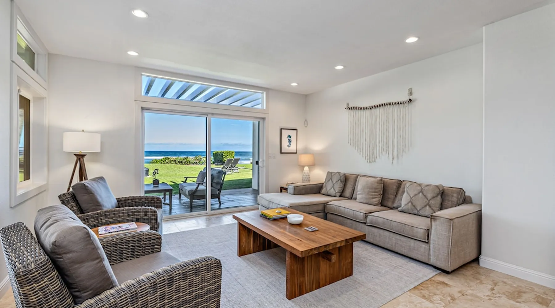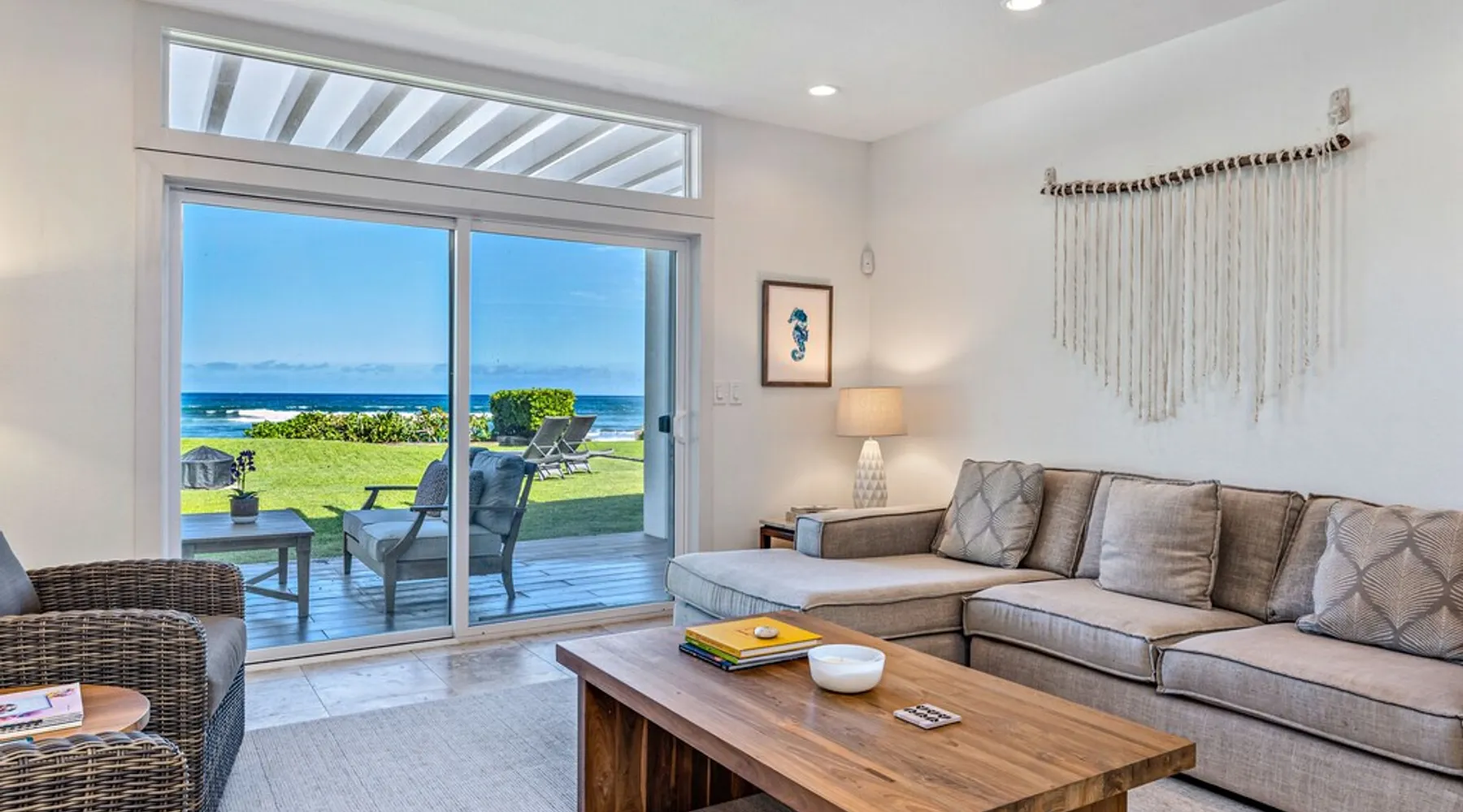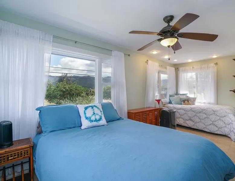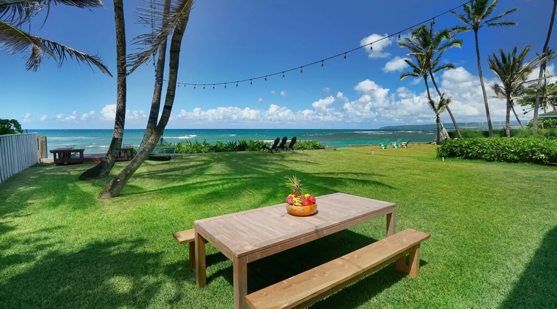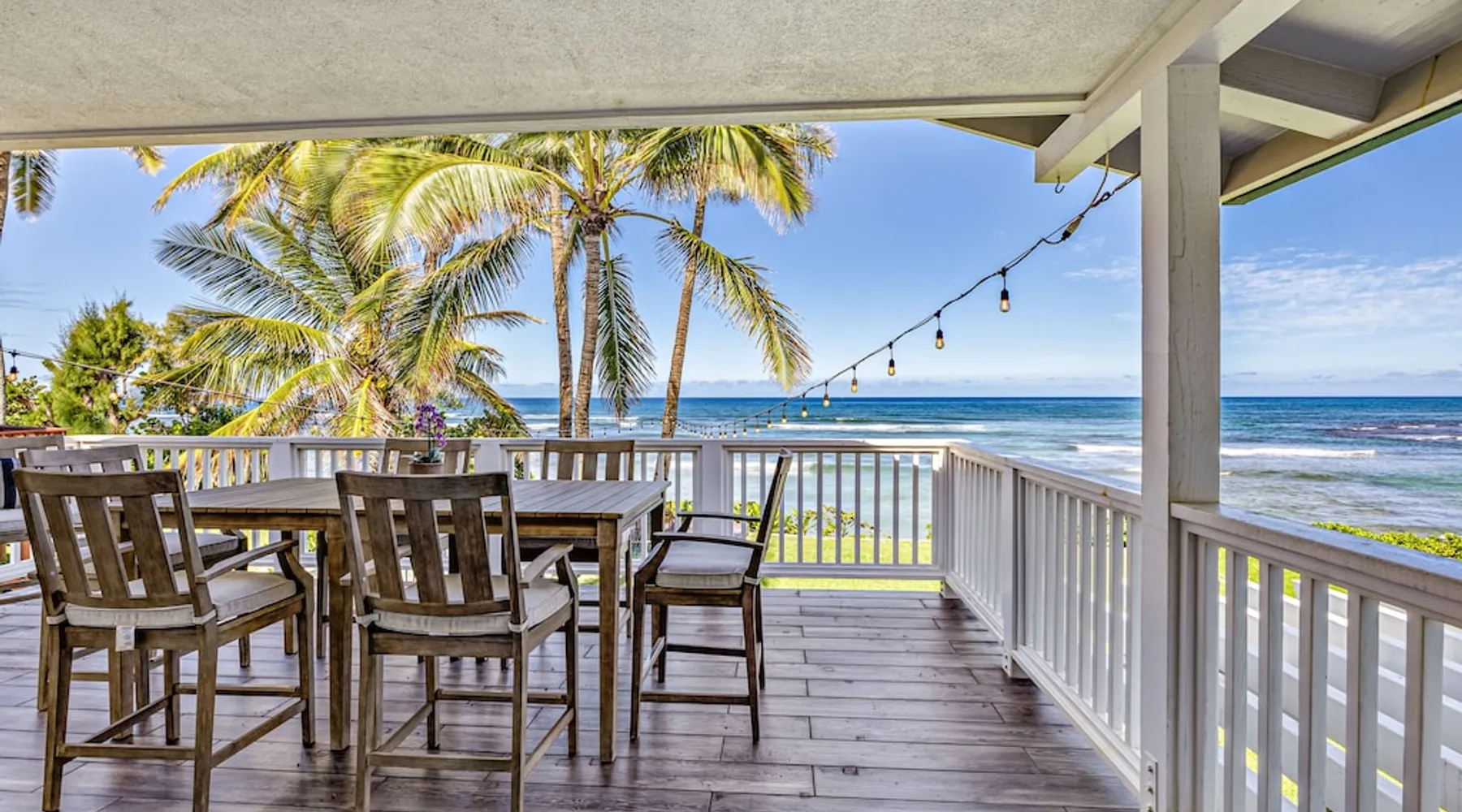 *A/C in all bedrooms, in addition to all living areas. Please inquire regarding up-to date monthly rates. Short term rates differ from Long Term rates for terms 6 months or longer. Hale of peacefulness, tranquility, and serenity. The perfect Hawaiian name for this perfectly relaxing North Shore getaway. Located directly on a warm sandy beach, on the quiet side of Oahu's famed North Shore, this modern and luxurious home has everything you need to relax into your Hawaii vacation. Boasting an up-to-date remodel (late summer 2016), complete with all new high-end furnishings, linens, decor, and appliances, the feel is boutique luxury hotel with the added perks and better value of a vacation home. Hale Maluhia is a 3 bedroom home that truly feels much over 3,800 sq ft of living area (large for Hawaii standards), plus 2 additional sleeper sofas and 2 Pune'es (Hawaiian Day beds) throughout the home, extra guests can be comfortably accommodated here for an additional fee. The two separate kitchen and dining areas, one on each level, and three separate living areas (2 with flat screen TV), make the home ideal for multi-generational family vacations, or even a couple's trip. The large layout creates inviting nooks great for privacy when traveling with other couples or large families. Make your morning coffee or enjoy an ocean view breakfast before joining your travel-mates for the day. The large grassy beachfront yard is ideal for lounging by the sea; hangout in the hammock, have a picnic on the dining table, or enjoy your evening cocktails on the beach-deck. The gorgeous and often empty beach out front is family and kid-friendly, as the shoreline is protected by a large reef. Snorkel, surf, play and swim right outside your back door any time of year. Beach Gear: Please note, post Covid, we are supplying beach chairs and beach towels only. Please use Hawaii Beach Time dot com to arrange for additional desired gear (snorkels/masks/boards) to be delivered to your rental or use one of the many gear shops in Haleiwa such as Surf n Sea. Bedroom Layout: The large master suite is located upstairs, overlooking the ocean, with King Bed, large master bath, walk-in closet, vanity, flat screen TV, foyer entry with seating, and its own private lanai with seating. An additional queen guest bedroom is also upstairs, with flat screen TV, large closet, and an additional Punee, perfect for the couple traveling with small children. Full bath in hall. The third guest bedroom is located on the first floor, with a queen bed with en suite bath and flat screen TV. This beautiful area known as Mokuleia has an outer-island feel, but sits just two miles from the quaint shopping and dining of Haleiwa town, surf capitol of the world. Come experience all that Oahu has to offer, you will be very happy with your choice to stay at Hale Maluhia. *** This home will require a mid stay clean*** No weddings, No gatherings, no exceptions! TATAvailability subject to change until payment is received and booking is confirmed. Instant Booking Requests are still subject to owner approval. If approval cannot be obtained, guest will be asked to cancel their booking online within the first 24 hours of making said booking. Rates do not include taxes, cleaning and applicable fees. In compliance with the Ordinances of the City & County of Honolulu, the Property will be made available to you for your use and occupancy for a minimum period of thirty (30) days.