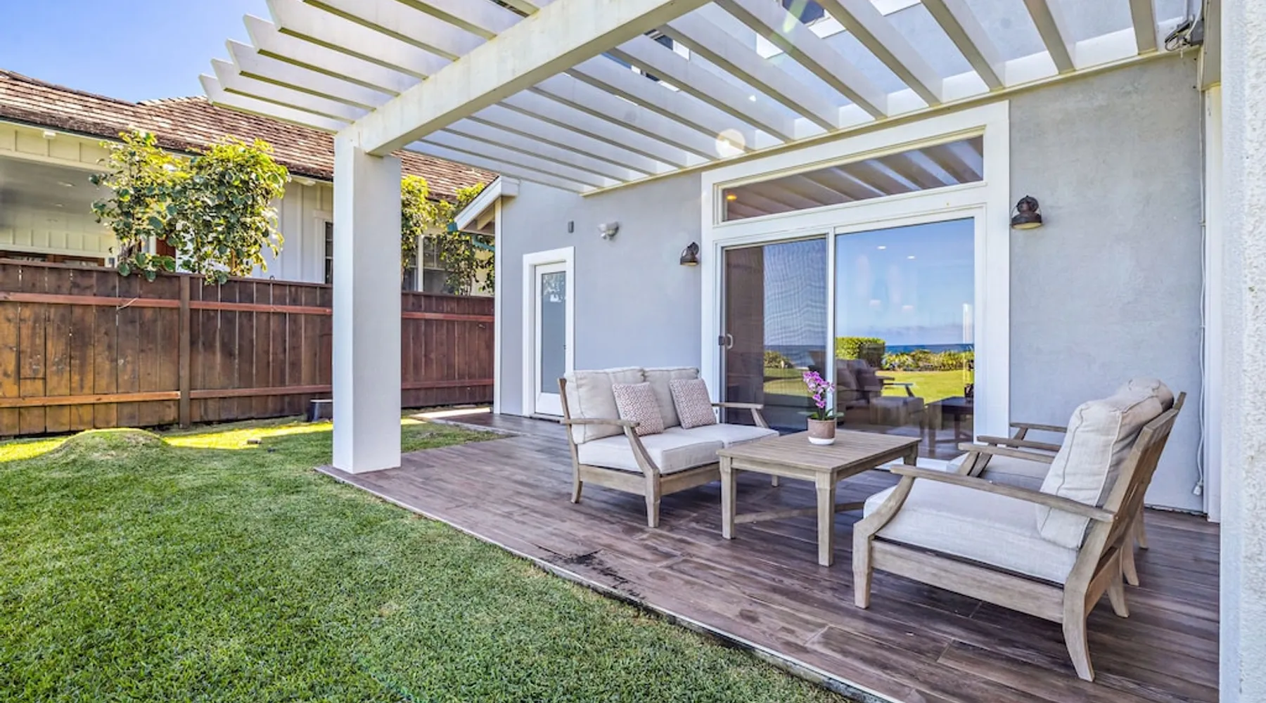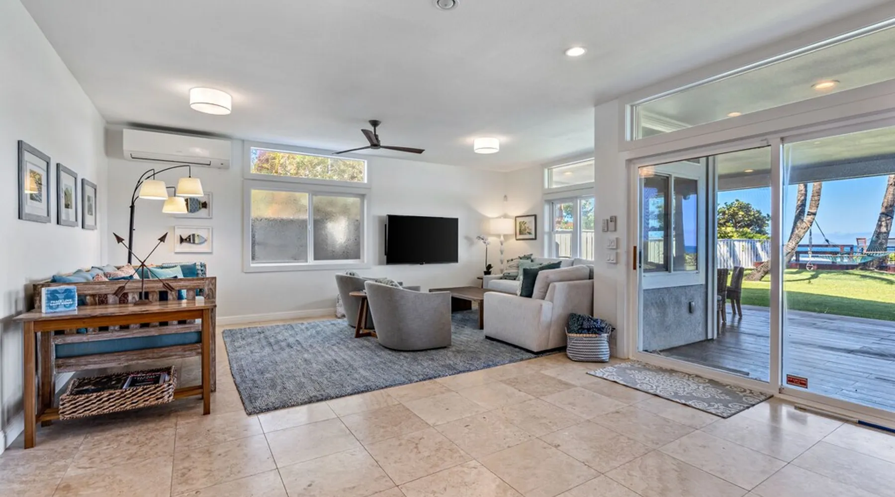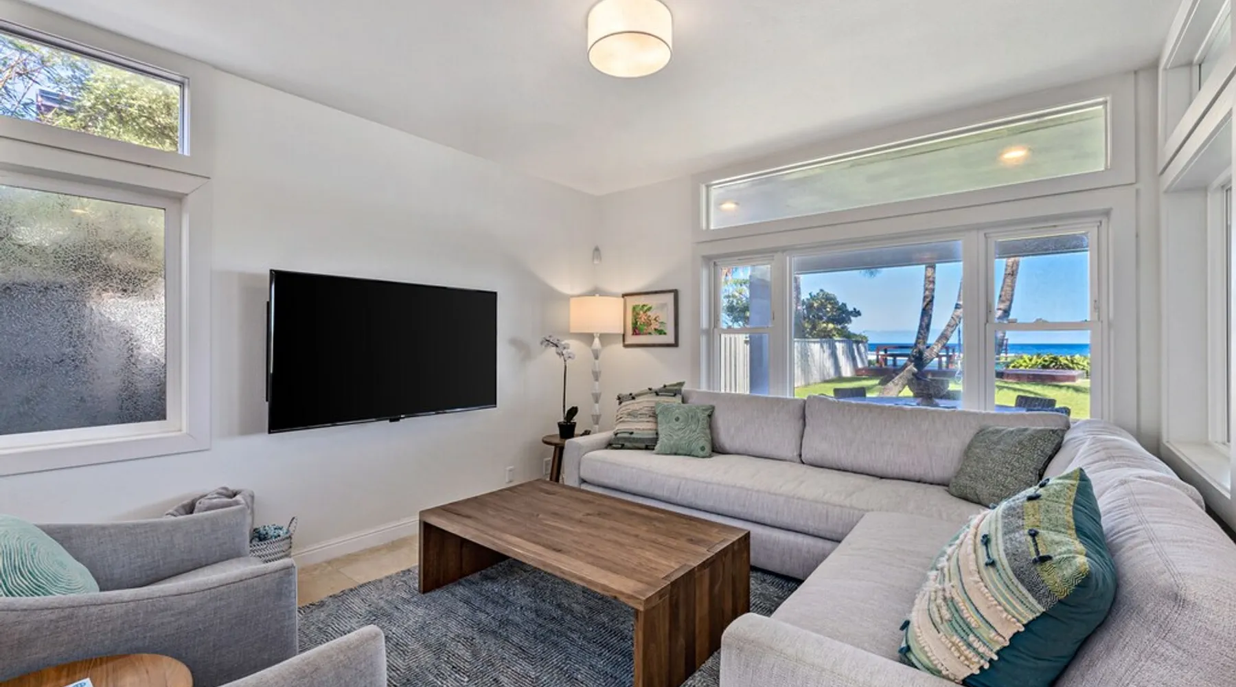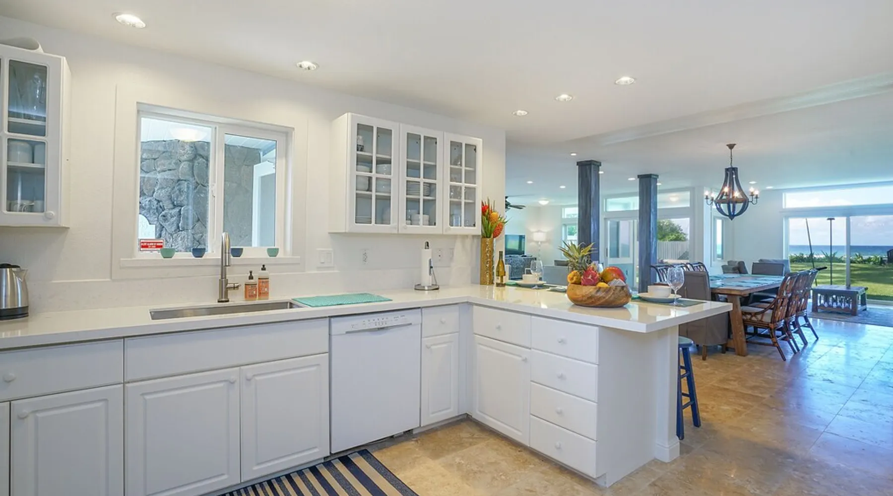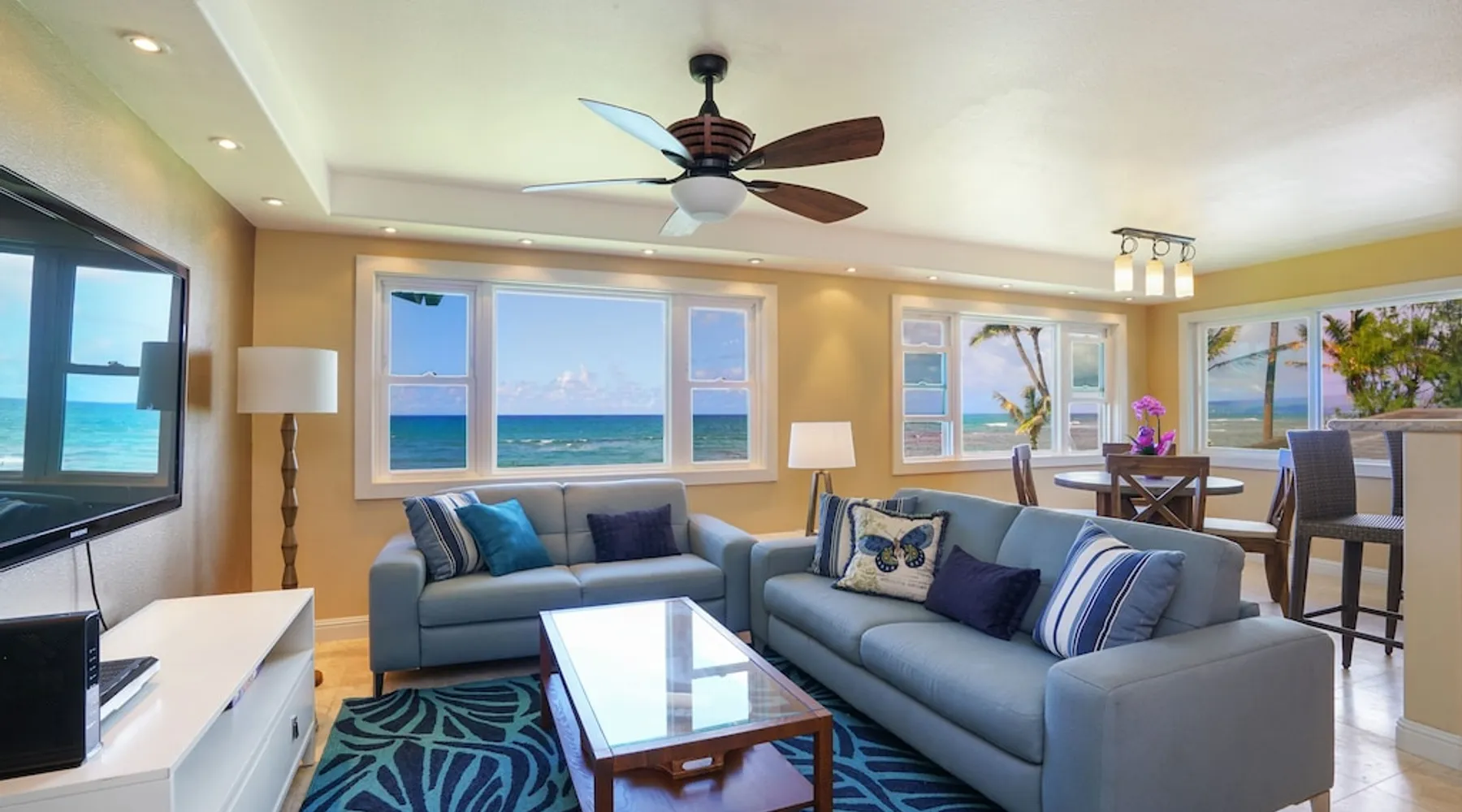 *A/C in all bedrooms, in addition to all living areas. Please inquire regarding up-to date monthly rates. Short term rates differ from Long Term rates for terms 6 months or longer. Hale of peacefulness, tranquility, and serenity. The perfect Hawaiian name for this perfectly relaxing North Shore getaway. Located directly on a warm sandy beach, on the quiet side of Oahu's famed North Shore, this modern and luxurious home has everything you need to relax into your Hawaii vacation. Boasting an up-to-date remodel (late summer 2016), complete with all new high-end furnishings, linens, decor, and appliances, the feel is boutique luxury hotel with the added perks and better value of a vacation home. Hale Maluhia is a 3 bedroom home that truly feels much over 3,800 sq ft of living area (large for Hawaii standards), plus 2 additional sleeper sofas and 2 Pune'es (Hawaiian Day beds) throughout the home, extra guests can be comfortably accommodated here for an additional fee. The two separate kitchen and dining areas, one on each level, and three separate living areas (2 with flat screen TV), make the home ideal for multi-generational family vacations, or even a couple's trip. The large layout creates inviting nooks great for privacy when traveling with other couples or large families. Make your morning coffee or enjoy an ocean view breakfast before joining your travel-mates for the day. The large grassy beachfront yard is ideal for lounging by the sea; hangout in the hammock, have a picnic on the dining table, or enjoy your evening cocktails on the beach-deck. The gorgeous and often empty beach out front is family and kid-friendly, as the shoreline is protected by a large reef. Snorkel, surf, play and swim right outside your back door any time of year. Beach Gear: Please note, post Covid, we are supplying beach chairs and beach towels only. Please use Hawaii Beach Time dot com to arrange for additional desired gear (snorkels/masks/boards) to be delivered to your rental or use one of the many gear shops in Haleiwa such as Surf n Sea. Bedroom Layout: The large master suite is located upstairs, overlooking the ocean, with King Bed, large master bath, walk-in closet, vanity, flat screen TV, foyer entry with seating, and its own private lanai with seating. An additional queen guest bedroom is also upstairs, with flat screen TV, large closet, and an additional Punee, perfect for the couple traveling with small children. Full bath in hall. The third guest bedroom is located on the first floor, with a queen bed with en suite bath and flat screen TV. This beautiful area known as Mokuleia has an outer-island feel, but sits just two miles from the quaint shopping and dining of Haleiwa town, surf capitol of the world. Come experience all that Oahu has to offer, you will be very happy with your choice to stay at Hale Maluhia. *** This home will require a mid stay clean*** No weddings, No gatherings, no exceptions! TATAvailability subject to change until payment is received and booking is confirmed. Instant Booking Requests are still subject to owner approval. If approval cannot be obtained, guest will be asked to cancel their booking online within the first 24 hours of making said booking. Rates do not include taxes, cleaning and applicable fees. In compliance with the Ordinances of the City & County of Honolulu, the Property will be made available to you for your use and occupancy for a minimum period of thirty (30) days.