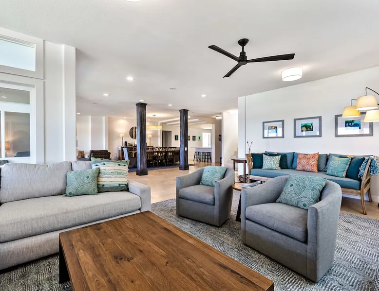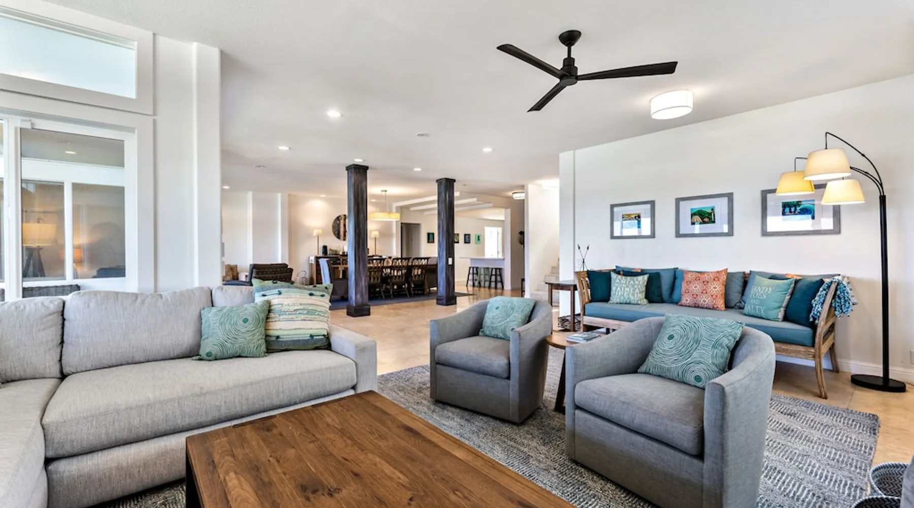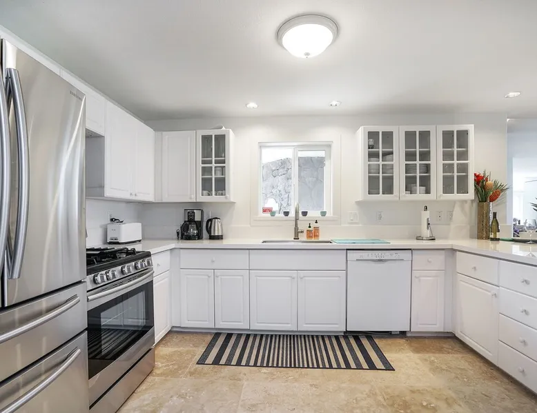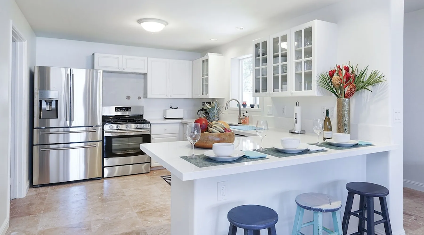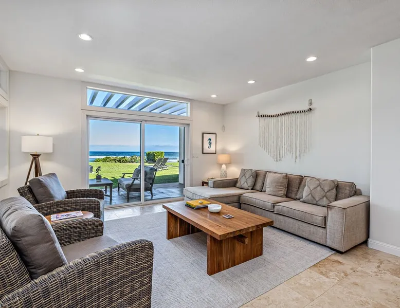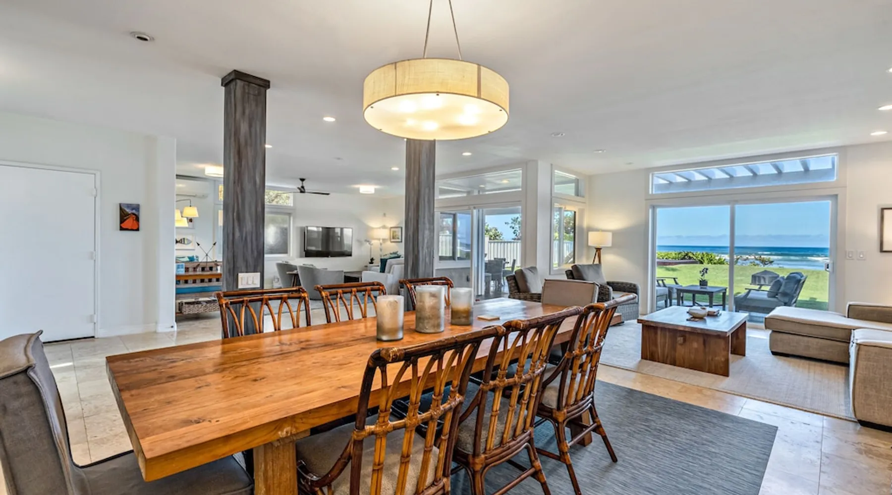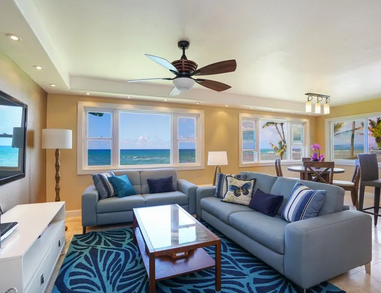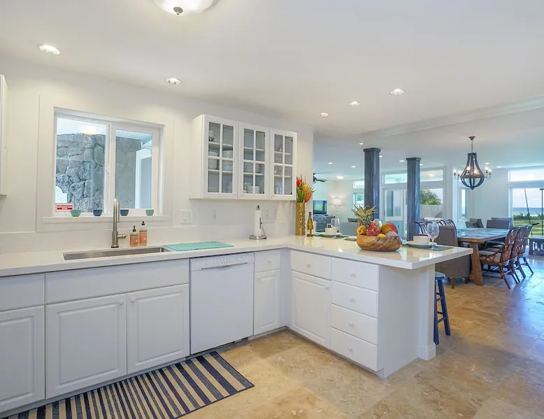 *A/C in all bedrooms, in addition to all living areas. Please inquire regarding up-to date monthly rates. Short term rates differ from Long Term rates for terms 6 months or longer. Hale of peacefulness, tranquility, and serenity. The perfect Hawaiian name for this perfectly relaxing North Shore getaway. Located directly on a warm sandy beach, on the quiet side of Oahu's famed North Shore, this modern and luxurious home has everything you need to relax into your Hawaii vacation. Boasting an up-to-date remodel (late summer 2016), complete with all new high-end furnishings, linens, decor, and appliances, the feel is boutique luxury hotel with the added perks and better value of a vacation home. Hale Maluhia is a 3 bedroom home that truly feels much over 3,800 sq ft of living area (large for Hawaii standards), plus 2 additional sleeper sofas and 2 Pune'es (Hawaiian Day beds) throughout the home, extra guests can be comfortably accommodated here for an additional fee. The two separate kitchen and dining areas, one on each level, and three separate living areas (2 with flat screen TV), make the home ideal for multi-generational family vacations, or even a couple's trip. The large layout creates inviting nooks great for privacy when traveling with other couples or large families. Make your morning coffee or enjoy an ocean view breakfast before joining your travel-mates for the day. The large grassy beachfront yard is ideal for lounging by the sea; hangout in the hammock, have a picnic on the dining table, or enjoy your evening cocktails on the beach-deck. The gorgeous and often empty beach out front is family and kid-friendly, as the shoreline is protected by a large reef. Snorkel, surf, play and swim right outside your back door any time of year. Beach Gear: Please note, post Covid, we are supplying beach chairs and beach towels only. Please use Hawaii Beach Time dot com to arrange for additional desired gear (snorkels/masks/boards) to be delivered to your rental or use one of the many gear shops in Haleiwa such as Surf n Sea. Bedroom Layout: The large master suite is located upstairs, overlooking the ocean, with King Bed, large master bath, walk-in closet, vanity, flat screen TV, foyer entry with seating, and its own private lanai with seating. An additional queen guest bedroom is also upstairs, with flat screen TV, large closet, and an additional Punee, perfect for the couple traveling with small children. Full bath in hall. The third guest bedroom is located on the first floor, with a queen bed with en suite bath and flat screen TV. This beautiful area known as Mokuleia has an outer-island feel, but sits just two miles from the quaint shopping and dining of Haleiwa town, surf capitol of the world. Come experience all that Oahu has to offer, you will be very happy with your choice to stay at Hale Maluhia. *** This home will require a mid stay clean*** No weddings, No gatherings, no exceptions! TATAvailability subject to change until payment is received and booking is confirmed. Instant Booking Requests are still subject to owner approval. If approval cannot be obtained, guest will be asked to cancel their booking online within the first 24 hours of making said booking. Rates do not include taxes, cleaning and applicable fees. In compliance with the Ordinances of the City & County of Honolulu, the Property will be made available to you for your use and occupancy for a minimum period of thirty (30) days.