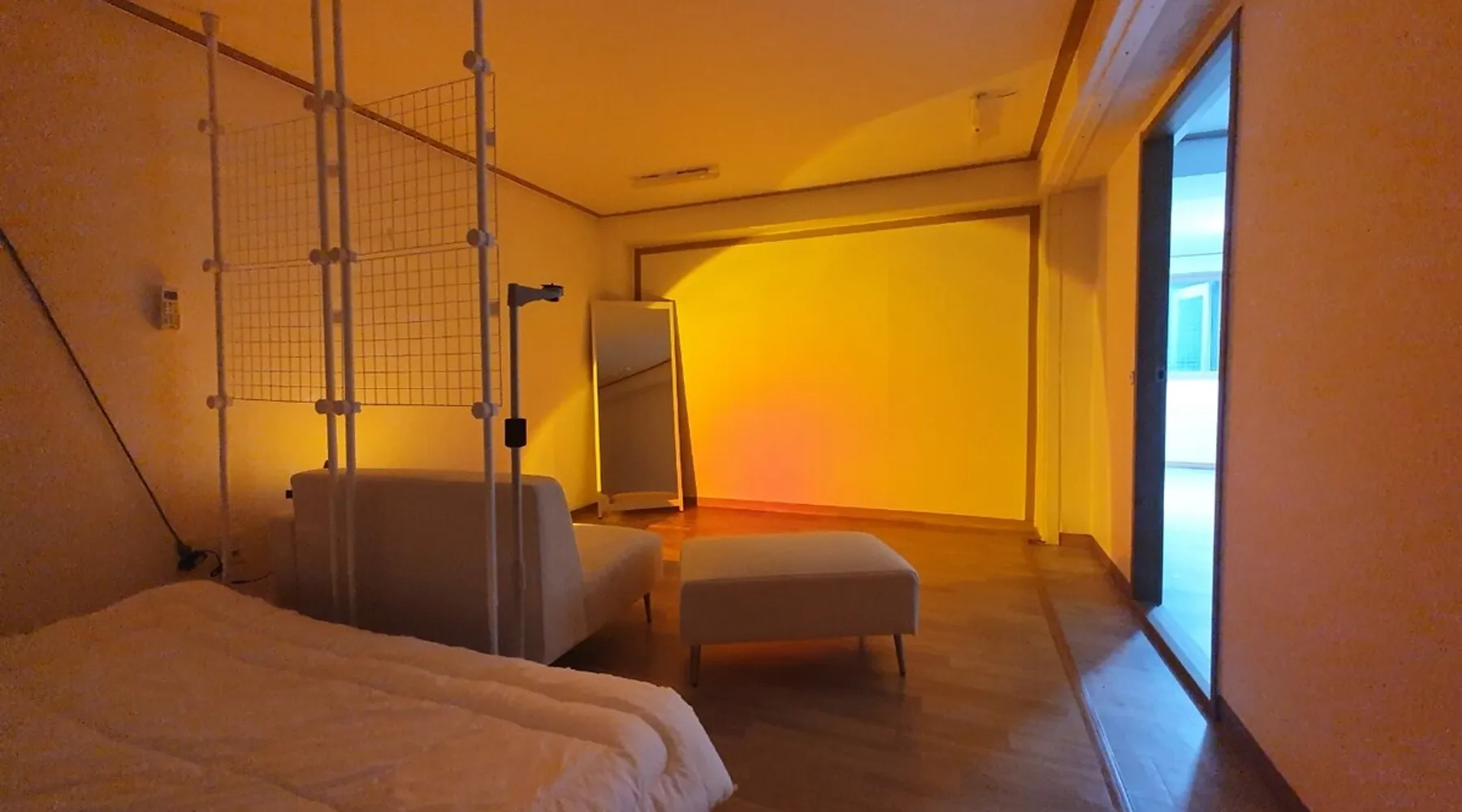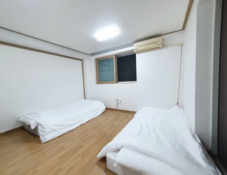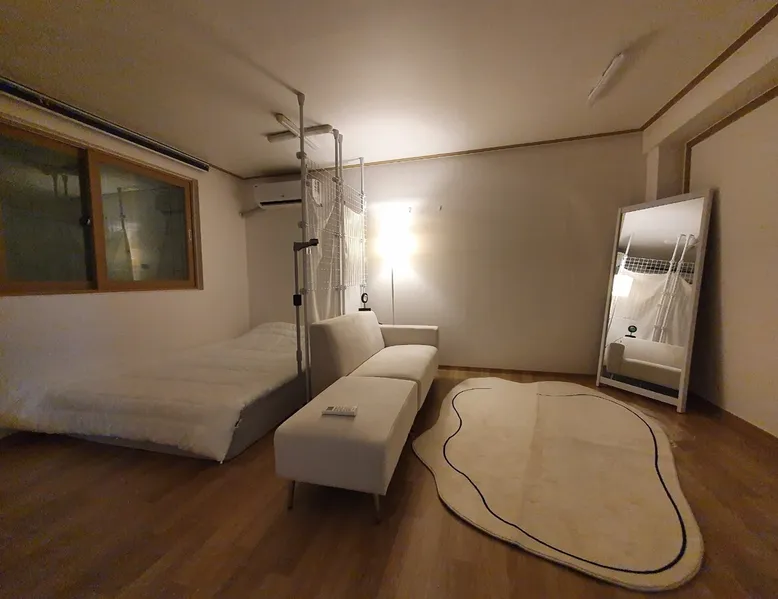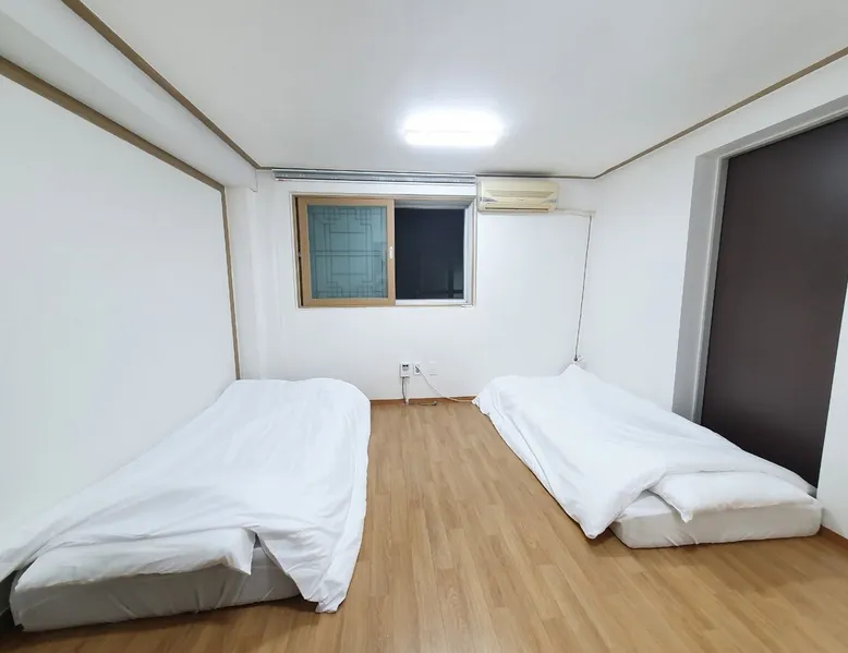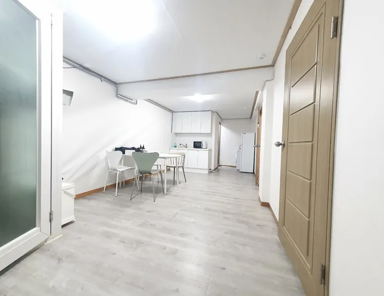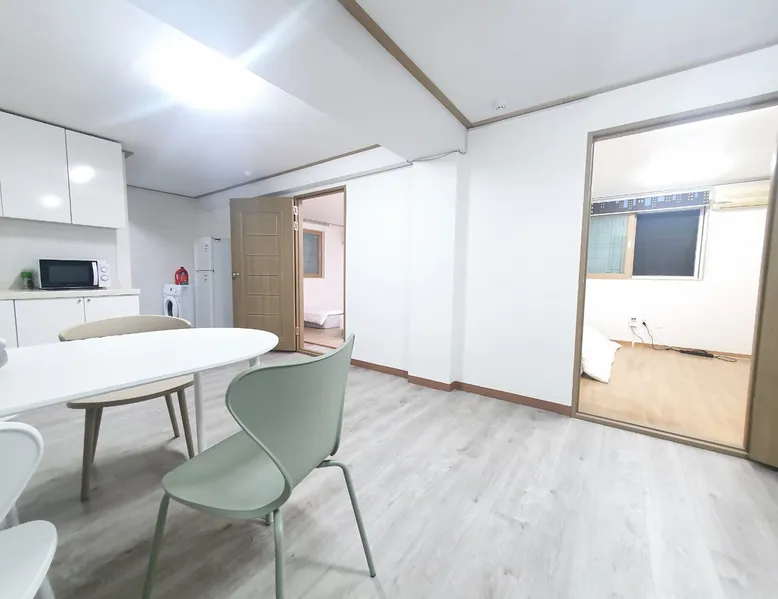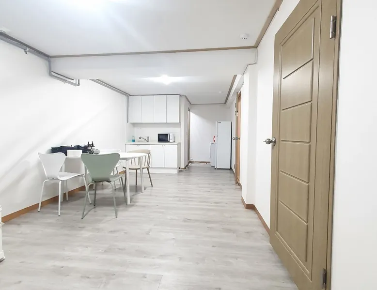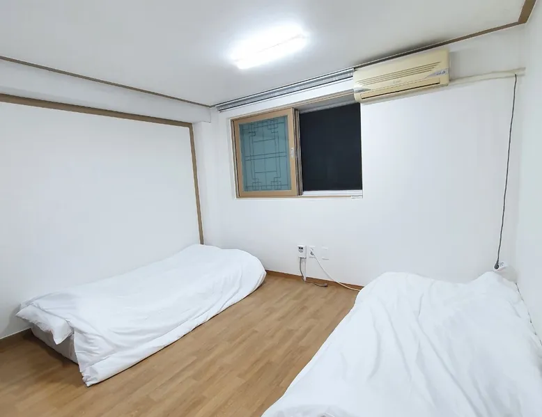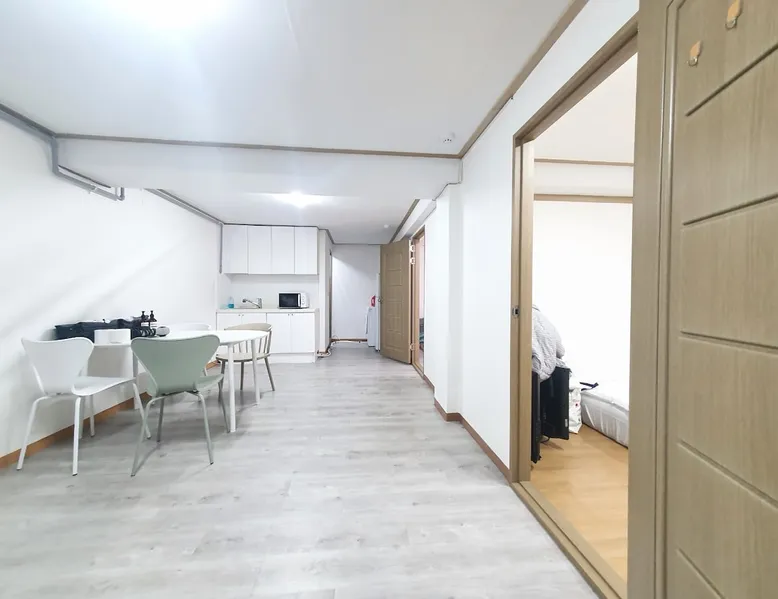 Hello, this is a newly prepared 2 room studio. It consists of a large living room, two large rooms, and a bathroom, and there is a common space, a terrace, on the same floor ^ ^ In the living room, there is a table for 4 people, suitable for group assignments and work. Room 1 has 2 single beds, and room 2 has a queen size bed, a sofa, a beam projector for watching Netflix and YouTube. Washing machine, laundry detergent, shower supplies, air conditioner in each room, refrigerator, tableware, microwave, WiFi, vacuum cleaner, 2 drying racks, and extra bedding are well prepared. Please use it a lot. Please contact us urgently.Flourish 91, please. The space This is a newly prepared two-room studio. It consists of a large living room, 2 large rooms, and a bathroom, and there is a terrace(common space) on the same floor. There is a table for 4 in the living room, which is suitable for group assignments and work. Room 1 has 2 single beds, and Room 2 has a queen-size bed, sofa, and a beam projector (Netflix and YouTube available) Washing machine, laundry detergent, shower supplies, air conditioner in each room, refrigerator, tableware, microwave, Wi-Fi, vacuum cleaner, 2 drying racks, and extra bedding are well prepared. Wish you can have a good memory in this place : ) For urgent request, please contact flourish91 k.a.k.a.o