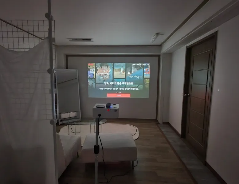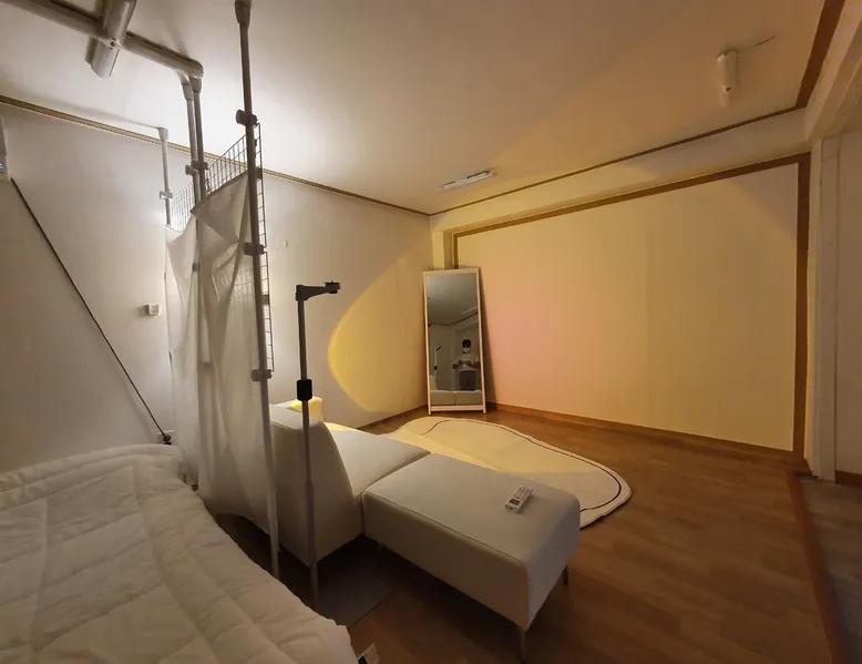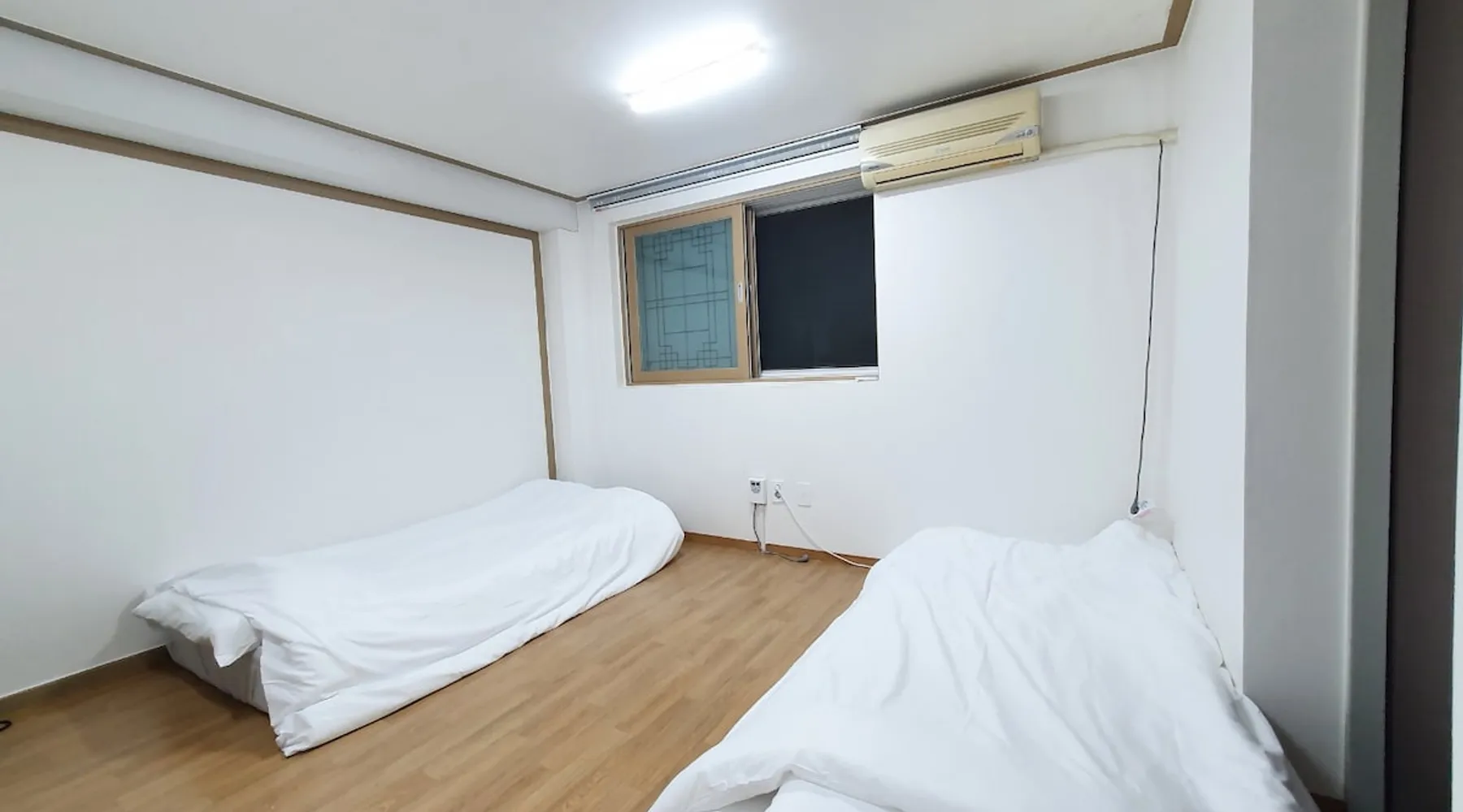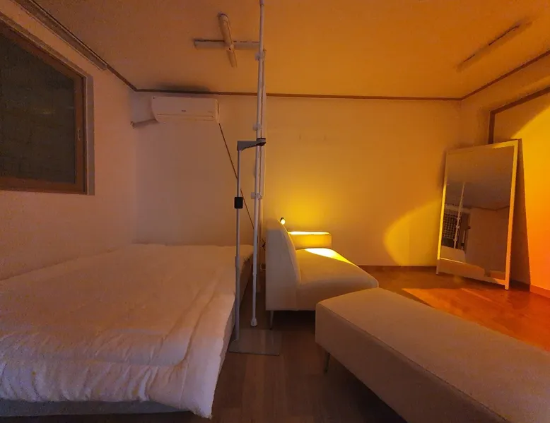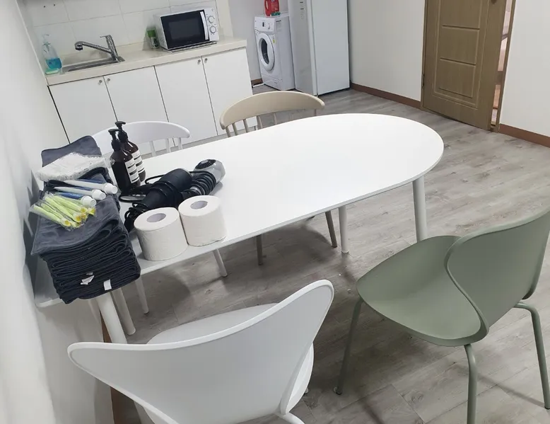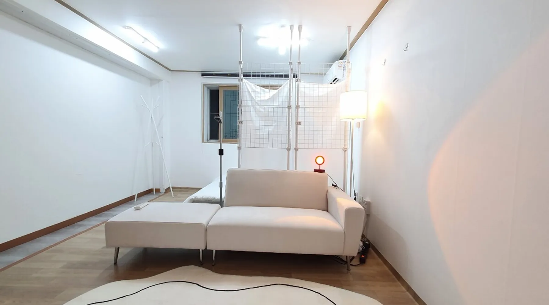 Hello, this is a newly prepared 2 room studio. It consists of a large living room, two large rooms, and a bathroom, and there is a common space, a terrace, on the same floor ^ ^ In the living room, there is a table for 4 people, suitable for group assignments and work. Room 1 has 2 single beds, and room 2 has a queen size bed, a sofa, a beam projector for watching Netflix and YouTube. Washing machine, laundry detergent, shower supplies, air conditioner in each room, refrigerator, tableware, microwave, WiFi, vacuum cleaner, 2 drying racks, and extra bedding are well prepared. Please use it a lot. Please contact us urgently.Flourish 91, please. The space This is a newly prepared two-room studio. It consists of a large living room, 2 large rooms, and a bathroom, and there is a terrace(common space) on the same floor. There is a table for 4 in the living room, which is suitable for group assignments and work. Room 1 has 2 single beds, and Room 2 has a queen-size bed, sofa, and a beam projector (Netflix and YouTube available) Washing machine, laundry detergent, shower supplies, air conditioner in each room, refrigerator, tableware, microwave, Wi-Fi, vacuum cleaner, 2 drying racks, and extra bedding are well prepared. Wish you can have a good memory in this place : ) For urgent request, please contact flourish91 k.a.k.a.o