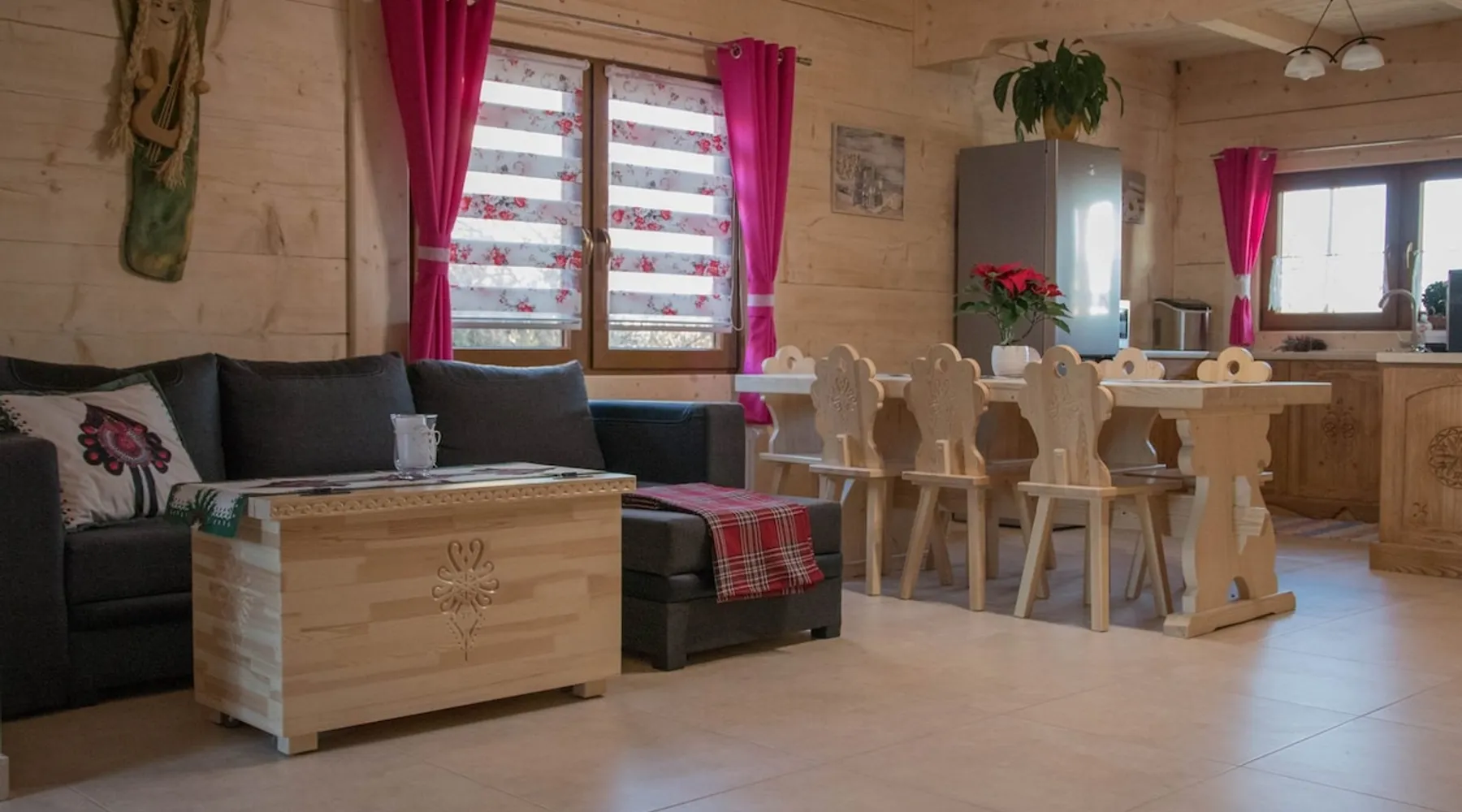 We invite you to relax in the Manor Pan Tadeusz, which is located in the mountain village of Orawka. We offer guests a luxury mountain log house "Telimena". It has a fireplace, two bathrooms, three bedrooms upstairs and a fully equipped kitchen. In addition, there is a separate building with a sauna, jacuzzi, fireplace, barbecue and smokehouse - you can organize feasts for over 20 people! Come and relax with us - you won't be disappointed!