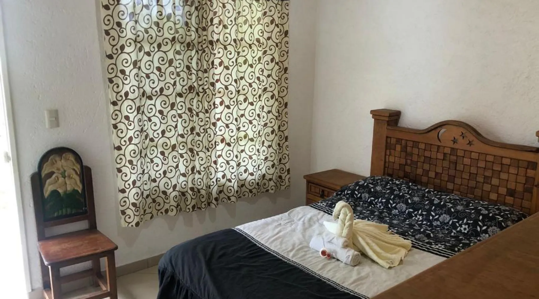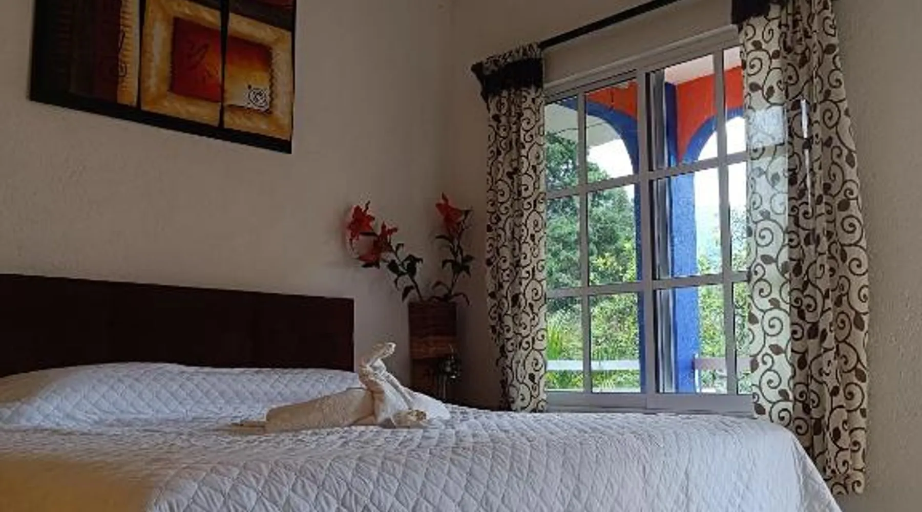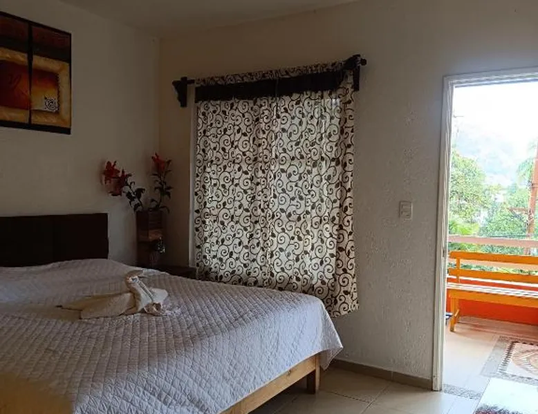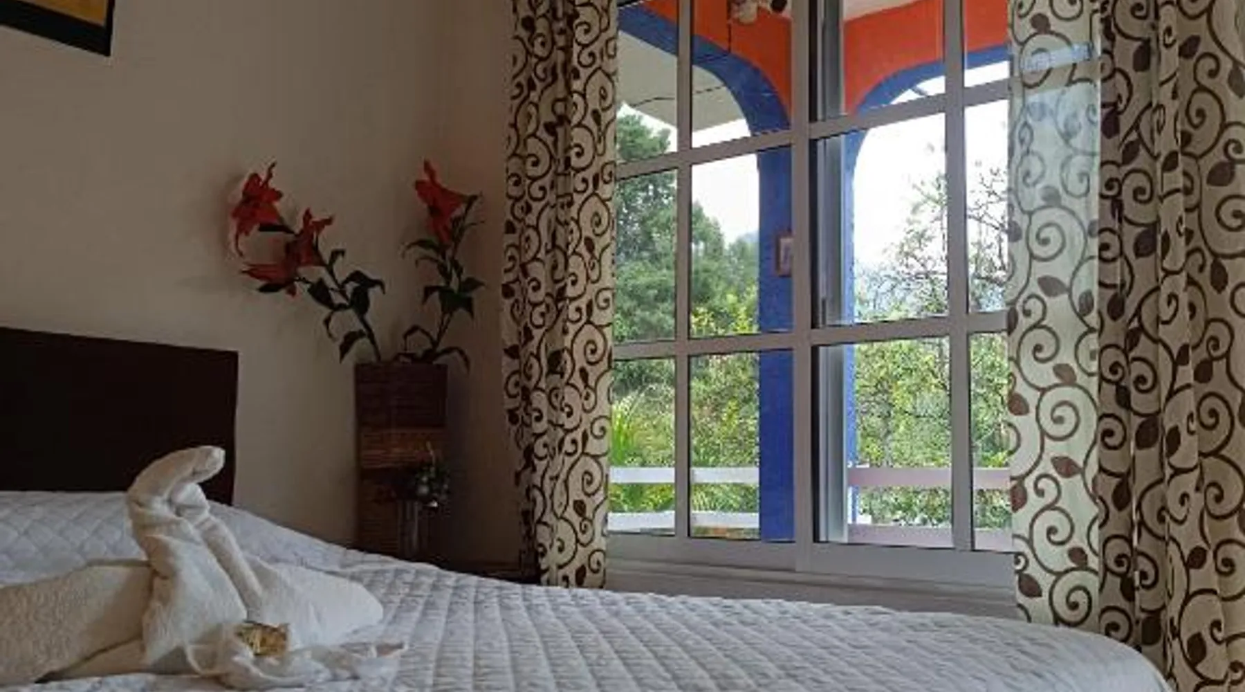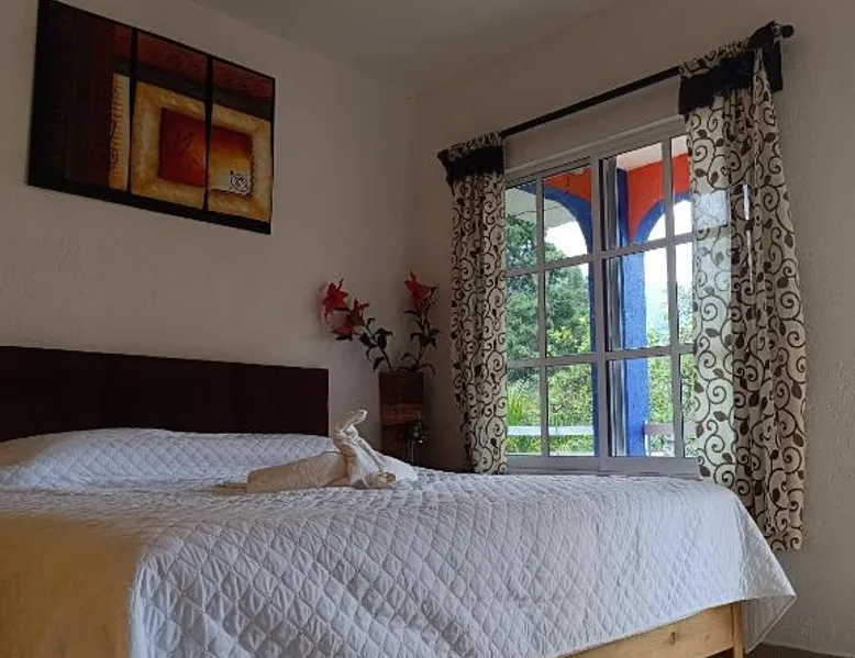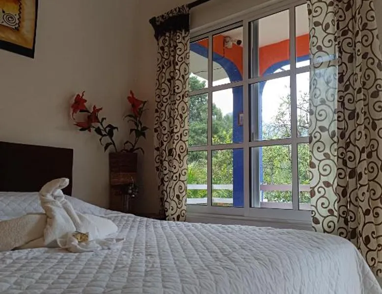 Elegant Accommodations: Los Robles in Tepoztlán offers family rooms with private bathrooms, featuring garden, pool, and mountain views. Each room includes a terrace, sofa bed, and free toiletries. Exceptional Facilities: Guests enjoy a year-round outdoor swimming pool, lush garden, and free WiFi. Additional amenities include a shared kitchen, outdoor seating area, and free on-site private parking. Convenient Location: Located 53 mi from Benito Juarez International Airport, the inn is 16 mi from the Robert Brady Museum. A quiet street provides a peaceful setting. This quadruple room provides a private pool. This quadruple room includes a flat-screen TV with cable channels, a private bathroom as well as a terrace with garden views. The unit offers 2 beds.