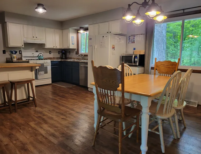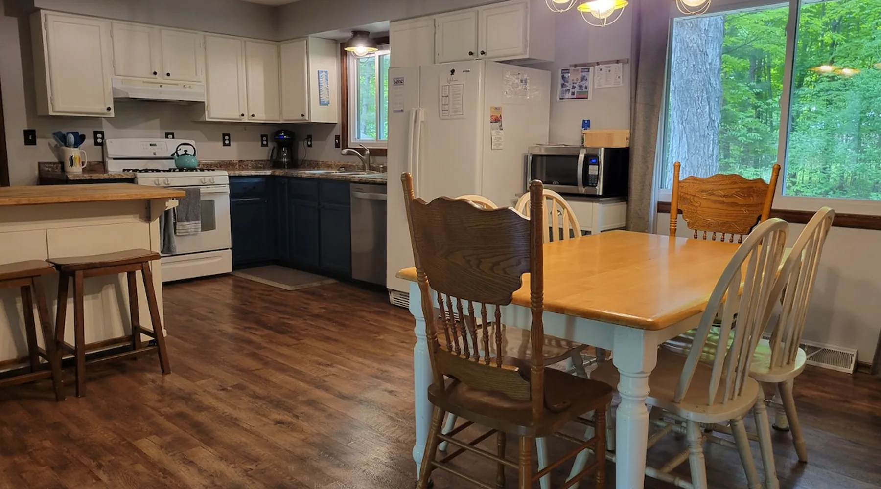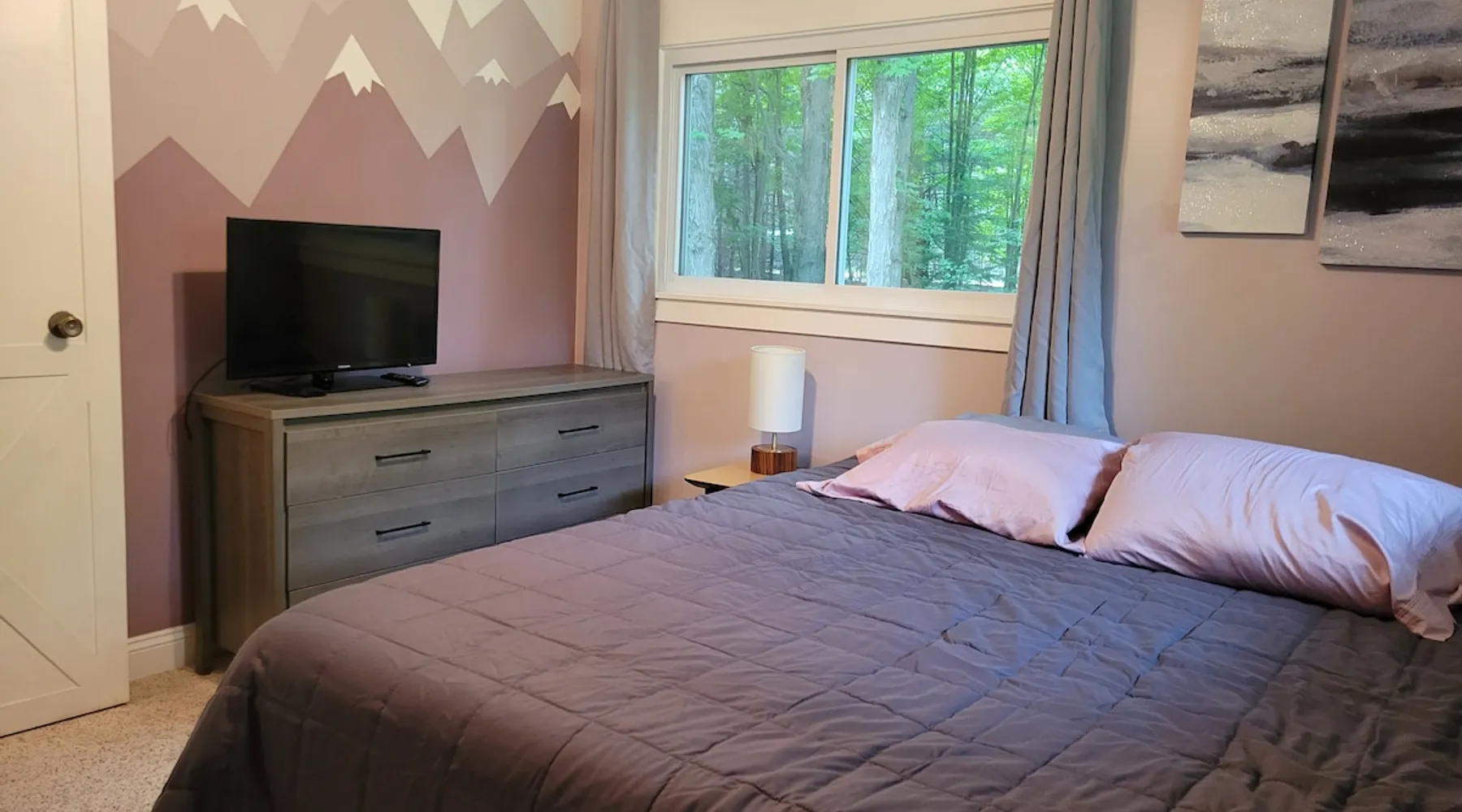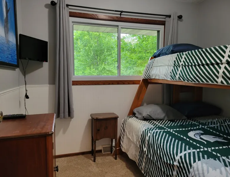 Everything Northern Michigan has to offer for your fall getaways! Hike the nearby trails amongst a canopy of colors! Visit local orchards, for cider, donuts, and u-pick apples!! Visit the new Skybridge at Boyne Mountain for magnificent views of the beautiful northern Michigan landscape! Make cozy memories playing foosball or darts! Just a short walk to the shared neighborhood beach! Shanty Creek/Schuss: 14 miles Charlevoix: 20 miles Boyne Mountain: 27 miles Petoskey/Traverse City: 40 miles The space Enjoy neighborhood private access to Intermediate Lake less than 0.15 of a mile from the house. This 3 bedroom ranch is comfortable and is a great gathering place! Our design is warm. Just a short walk (less than 0.14 of a mile) to the shared neighborhood beach! There is a bonus rec room in the basement with foosball, darts, and Roku tvs! it could also be used for a workcation location! Guest access Guests can access the full house. There are some beach supplies and yard games in the garage for guest use, as well as 4 bikes, 4 kayaks, and 4 sets of snowshoes. We also have fussball, puzzles, games, darts, and plenty of Roku TVs! Summer, winter, fall, and spring; we've got it all! There is a locked storage closet that is for our cleaning and maintenance providers. Other things to note This house has full house forced air conditioning and heat for your comfort, regardless of the season!