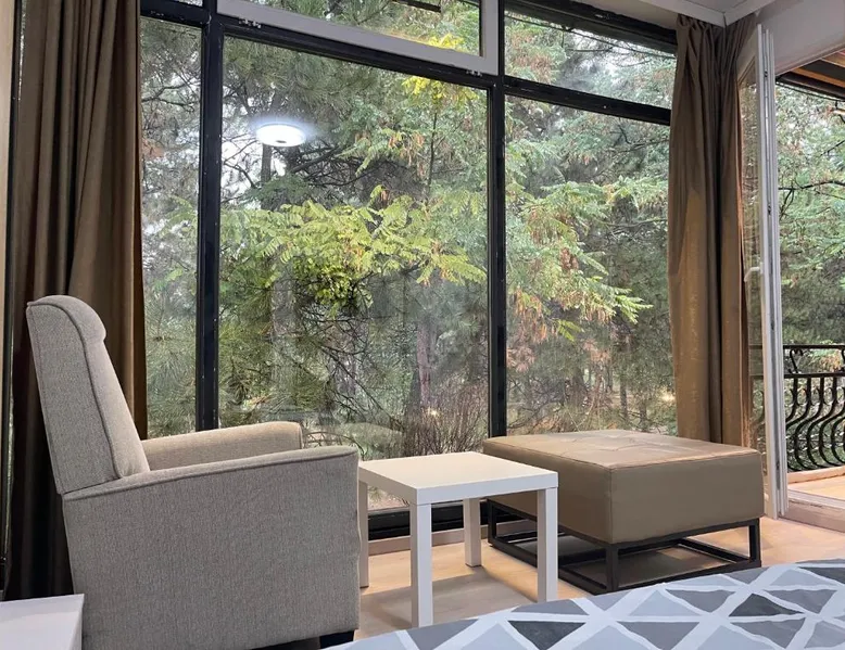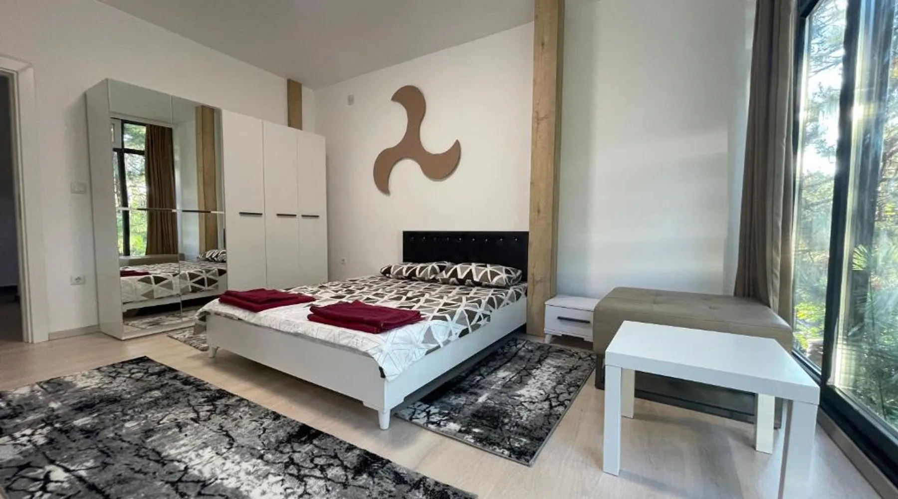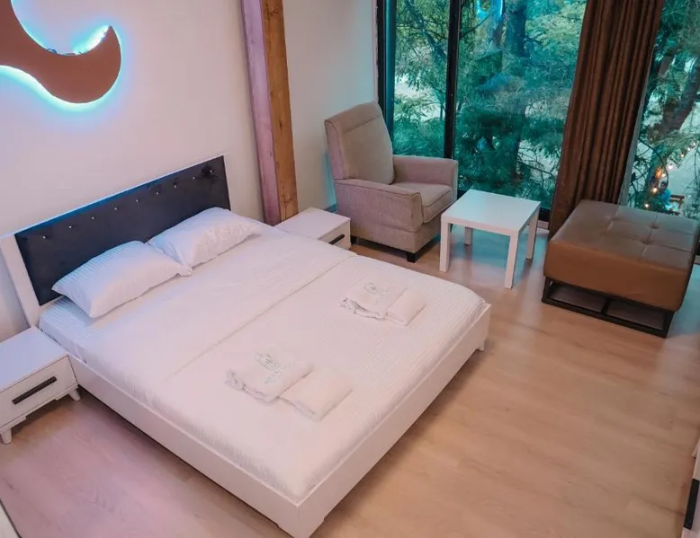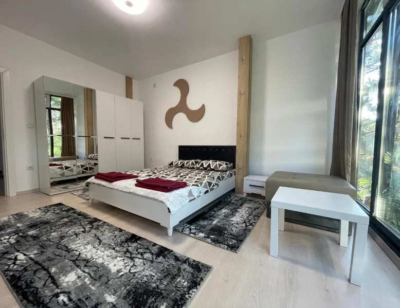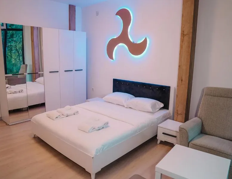 Spacious Accommodations: Greenside Apartment in Pristina offers a spacious layout with one bedroom, one bathroom, and a comfortable living room. The apartment features a terrace and balcony, providing garden views. Modern Amenities: Guests enjoy free WiFi, air-conditioning, a fully equipped kitchen, and a private entrance. Additional amenities include a tea and coffee maker, refrigerator, shower, TV, and hairdryer. Convenient Location: Located 11 mi from Pristina International Airport, the apartment is close to attractions such as Emin Gjiku Ethnographic Museum (16-minute walk), Skanderbeg Statue Pristina (less than 0.6 mi), and Pristina City Park (1640 feet). Featuring a private entrance, this air-conditioned apartment consists of 1 living room, 1 separate bedroom and 1 bathroom with a shower and a hairdryer. The apartment's kitchen, which features a refrigerator, is available for cooking and storing food. The spacious apartment provides a tea and coffee maker, tumble dryer, a carpeted floor, a flat-screen TV with cable channels, as well as garden views. The unit offers 2 beds.