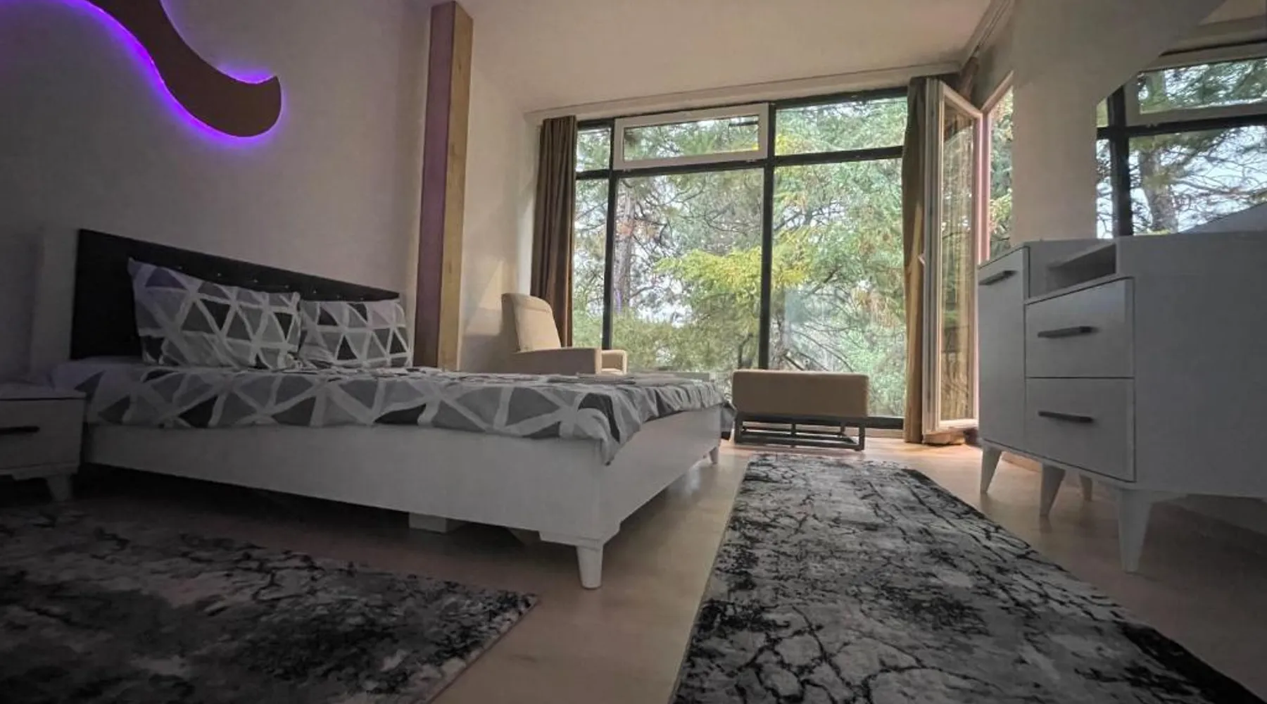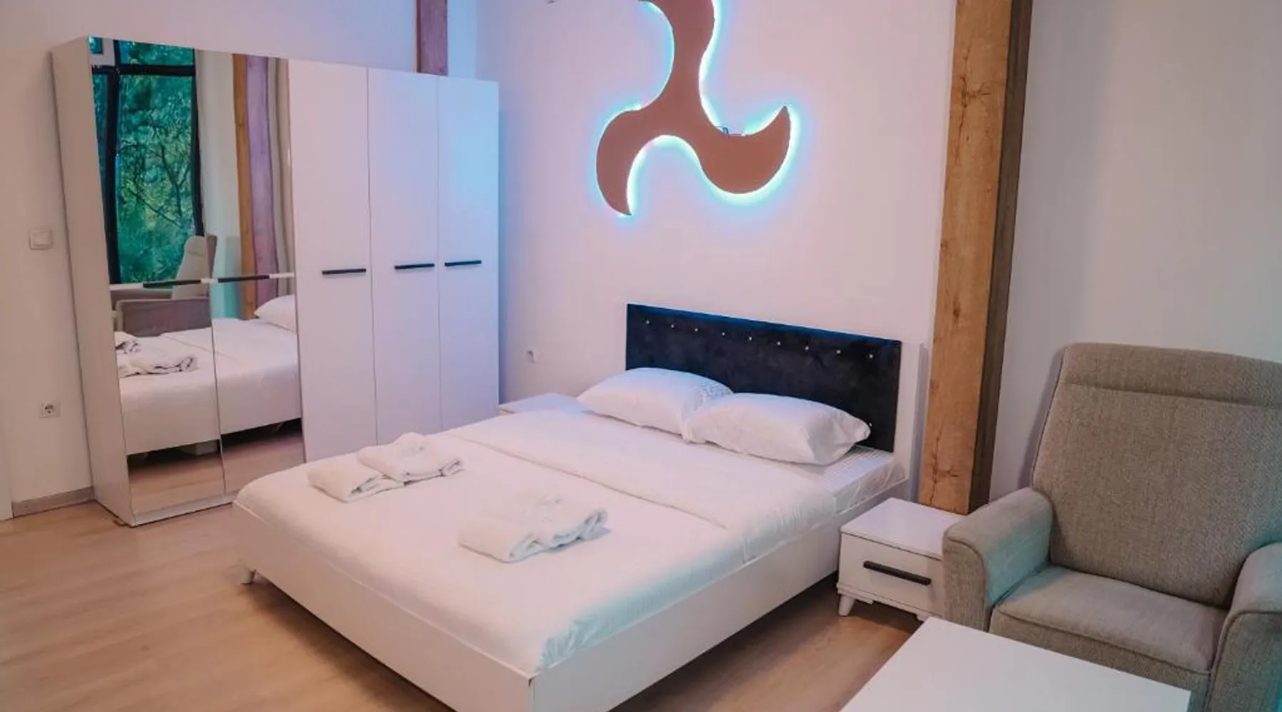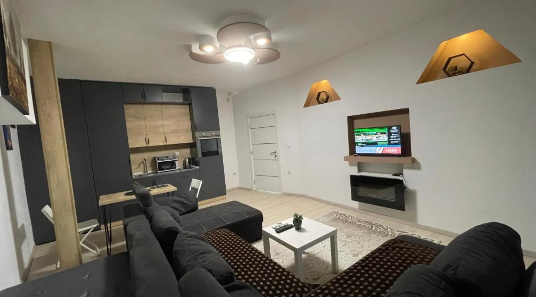 Spacious Accommodations: Greenside Apartment in Pristina offers a spacious layout with one bedroom, one bathroom, and a comfortable living room. The apartment features a terrace and balcony, providing garden views. Modern Amenities: Guests enjoy free WiFi, air-conditioning, a fully equipped kitchen, and a private entrance. Additional amenities include a tea and coffee maker, refrigerator, shower, TV, and hairdryer. Convenient Location: Located 11 mi from Pristina International Airport, the apartment is close to attractions such as Emin Gjiku Ethnographic Museum (16-minute walk), Skanderbeg Statue Pristina (less than 0.6 mi), and Pristina City Park (1640 feet). Featuring a private entrance, this air-conditioned apartment consists of 1 living room, 1 separate bedroom and 1 bathroom with a shower and a hairdryer. The apartment's kitchen, which features a refrigerator, is available for cooking and storing food. The spacious apartment provides a tea and coffee maker, tumble dryer, a carpeted floor, a flat-screen TV with cable channels, as well as garden views. The unit offers 2 beds.