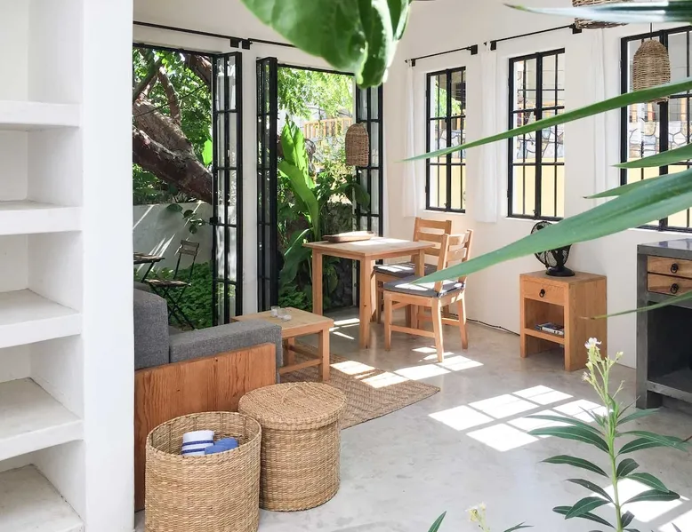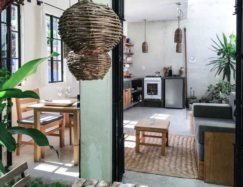 Modern, light, calm bungalow, small garden (no pool). Neighbourhood itself it quiet but the side road we're on can be quite noisy. 6 minutes walk to the central square, another minute to the main beach. Included cleanings during your stay! Internet 50Mbs down, 20Mbs up (apt for video conferences etc.) The space Comfortable open space with interior garden under a retractable roof window, king size bed, fully equipped kitchen, wide doors to a minor outdoor terrace garden. Normally, the place accommodates two. However, there is a sofa, and if need be, we provide a bed for smaller children. Small families are welcome. Guest access The bungalow—casita serenidad—is your's alone, including the main space with sleeps, kitchen, living, a small terrace-garden. Other things to note Quiet use only —please note: The house is sited in a usually quiet residential area, and we live in another house on the premise ourselves. Please refrain from loud partying at all times, and respect sleeping hours after 10 o’clock in the evening. Please understand that even shouting and very loud outdoor talking may make it hard for all around to sleep. ——— While the neighbourhood itself is quiet, Sayulita streets can be loud, and our street is no exception. We are far enough from the party locations, but still within Sayulita. Very loud motor vehicles are much in favour amongst both Mexican and ex-pat locals, and we have no way of effectively insulating the Casita from that noise. Their noise isn't constant, in fact there are quiet hours (or, well, half hours), and it usually quiets down around midnight, but If you seek a quiet place with little more than birds to hear, I recommend you look in the outskirts (north side or farther away from the centre). ——— Amenities (in addition to those on the airbnb list) — beach towels — coffee makers, both french presses and actual mokka pots (Italian stovetops) — USB power outlets, two on every night stand and more. Just ask — SERVICED LAUNDRY ONLY: The washers are not accessible to our guests directly (due to repeated incidents of damage by guests). We are happy to wash, dry and fold your laundry for you between 10 am and 2 pm except Sundays, free of charge. Service We offer free of charge cleaning about every second day at an hour of your convenience (between 10am and 3pm). After beach excursions, hikes or so most guests find that a very pleasant feature. On rare occasions, this may not be possible due to sickness or some other severe cause (we’re not a hotel with a big staff) Wifi Strong and reliable internet access, with some 50 Mbps downstream, 25 Mbps upstream on average (see test results in image section). Even on power outage, access persists for some 30 minutes due do no-break power supply for router and LAN. Water For drinkable water, we have a filtered water tap (dedicated tap (faucet)) in the kitchen. Beds Duvets instead of blankets (and really there hasn’t been anyone yet who didn’t prefer those over a woolen blanket with a sheet). Choose between a king size single duvet for two or two individual duvets each. Privacy Casita Serenidad shares a property with the larger Casa Serenidad, a house for six (which, by the way, you’re welcome to have a look at if you travel in a larger group). Apart from the street entrance, the two houses share no space at all—you’ll be entirely private. (The small outdoor garden you see in the images borders on the larger garden of the Casa Serenidad, (will be) separated by a waist high wall and high growing plants blocking the view—but not all sound of course. We ask guests in both houses not to party and to refrain from making too much noise particularly at night. But of course with six people in a garden with a pool there will be some voices and some noise. If you are looking for total silence, maybe this isn’t the right place for you—and probably the whole of Sayulita isn’t.) The premise is half of a gated property of four houses, the third of which is Casita Los Grillos, and the fourth is where we live ourselves. Needless to say we will never enter uninvitedly unless in cases of an emergency. Accessibility The place is entirely flat inside—its a bungalow with a roll-in shower. However, please note that to access that bungalow, you'll have to climb one flight of stairs. Kids There are no special security measures for children, however, children are precious and most welcome. If you have any special needs regarding them, feel free to ask. Power In summertime (and of late, if rarely, also in winter), village- or part-village wide power outages happen. The rarely last very long and seldom happen over night but they do happen. Sometimes they are related to hurricanes, sometimes not. They can be a nuisance particularly at sleeping hours when its very warm and both air conditioning and fans seize to work. We provide a sheet explaining what to do in case of an outage (and/or hurricane). Insects The house is surrounded by gardens, smaller and larger ones, and sited in tropical jungle, not in a city. If we don’t either pave or poison everything, some critters (ants mainly), are unavoidable, particular during rain season (summer). We do however provide anti-insect spray. Noise Please note that this is not a resort but an actual Mexican village. Occasionally trucks from the 1950s or motor bikes with sawed-off tailpipes come through, and as the bungalow is upstairs but to the street, some noise does get in at day both and at night. Also, at some point there may be some construction work two lots down the road, and on rare occasions, people party in the neighbourhood (we go try and stop them if that happens). As much as I regret it—If you are really noise sensitive, you won’t find peace here. Check-In can in many cases be earlier than 3pm. When previous guests leave the same day as you check in, we may need the time to fully clean the house. In any case you can drop off your luggage ahead of chec