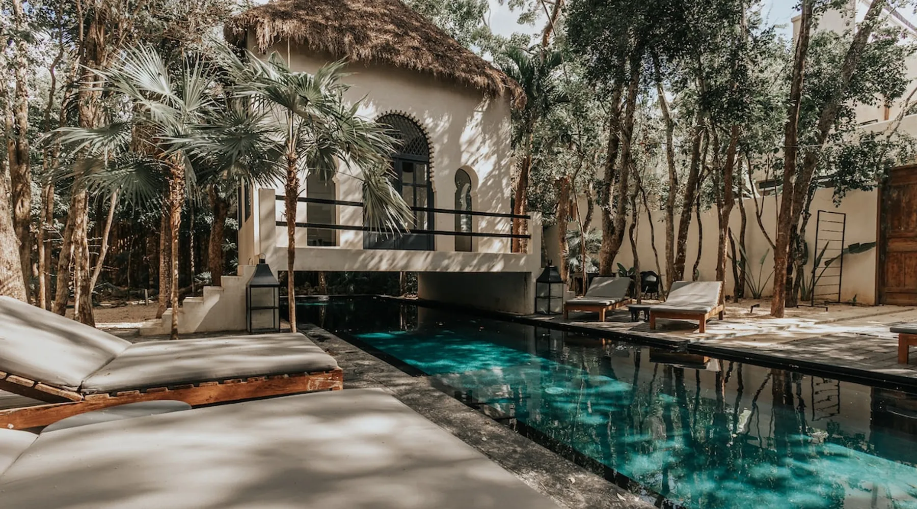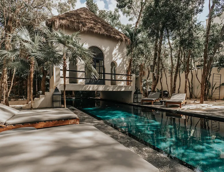 A Moroccan-Inspired Oasis in the Tulum Jungle! Villa-Riad Ambre & Épices offers a one-of-a-kind escape just 5 minutes from town and 10 from the beach. Perfect for WEDDINGS, RETREATS, or luxurious GETAWAYS, this serene hideaway blends Moroccan charm with lush jungle beauty. Let our concierge tailor your stay with bespoke experiences, from private events to peaceful relaxation. The space Villa-Riad Ambre & Epices is a fully equipped 8 bedroom house, each has unique details that will inspire many, in addition the villa has 2 pools, a kitchen and common areas where to spend time with your loved ones. It has been quite a journey because it's a very special project for us, it's inspired by the cultural crossing of Mexican colonial houses and Moroccan Riad architecture. Here you will not only experience a private and exclusive vacation rental, but also a hotel service with a full management staff dedicated to providing you the most comfortable and personalized stay in Tulum. Guest access · The Entire house is at your disposition. In case you are a professional wanting to use the space, please note that we need to be informed ahead. · Also if you are a guest planning on bringing an outsider professional to the villa, please inform us ahead. Other things to note · Full concierge services · Our main priority is to make our guests live a luxurious and unique experience in the jungle. · We offer a variety of spa services, manicures, pedicures, facials and more. All done at the hotel, in the area of your preference. · Our catering team is experienced and highñy skillful and always sharing his skills and creating customized menus for you only! · Special ceremony or Dinners : This is the perfect space to launch a special dinner or event among your people, enjoy food, privacy, drinks and good music. · You will have the liberty to arrange decorations like flowers, balloons, customized cakes, specific things for the menu and drinks, etc. More details : · A fully equipped kitchen · 8 suites · Independent salon area · Sound system · Pool beds and chairs, beach towels · Wireless high speed Internet (100MB) · Bathrobes · Purchase of groceries prior to your arrival · Transportation service around the area · Transfers to and from the airport · Reservations at restaurants, festivals and other attractions · Yoga sessions, sound healing & cacao ceremonies · Babysitting upon request · Waiter and Bartender upon request · Private Security - 24 hours or 12 hours (at the villa) ADDITIONAL SERVICES AVAILABLE (Please contact us to inquire for prices and availability)