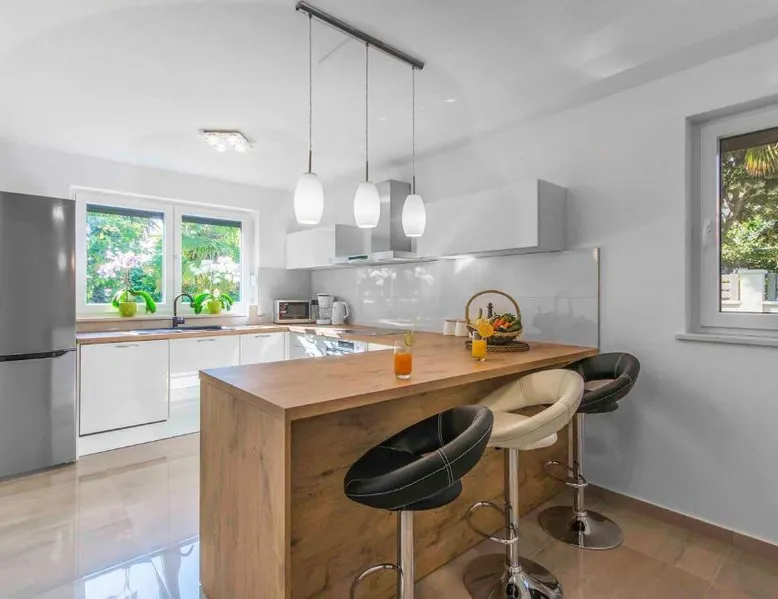 Elegant Accommodations: Villa Romi in Poreč offers a spacious terrace and an outdoor swimming pool. Guests enjoy free WiFi throughout the property, ensuring connectivity during their stay. Comfortable Amenities: The villa features air-conditioning, a fully equipped kitchen, and a private bathroom. Additional amenities include a washing machine, dishwasher, and a seating area, providing comfort and convenience. Prime Location: Located a 7-minute walk from Laguna Beach and 1.2 mi from The Euphrasian Basilica, Villa Romi is also close to Poreč Main Square (1.1 mi). Nearby attractions include Aquapark Istralandia (16 mi) and Aquapark Aquacolours Poreč (3.1 mi). Explore the Surroundings: Guests can enjoy scuba diving in the surrounding area, offering exciting activities for adventure seekers. The private pool is the special feature of this villa. Guests will find a refrigerator, a dishwasher and an oven in the kitchen. The villa also provides guests with a barbecue. This air-conditioned villa includes a TV with satellite channels, a private bathroom as well as a terrace.