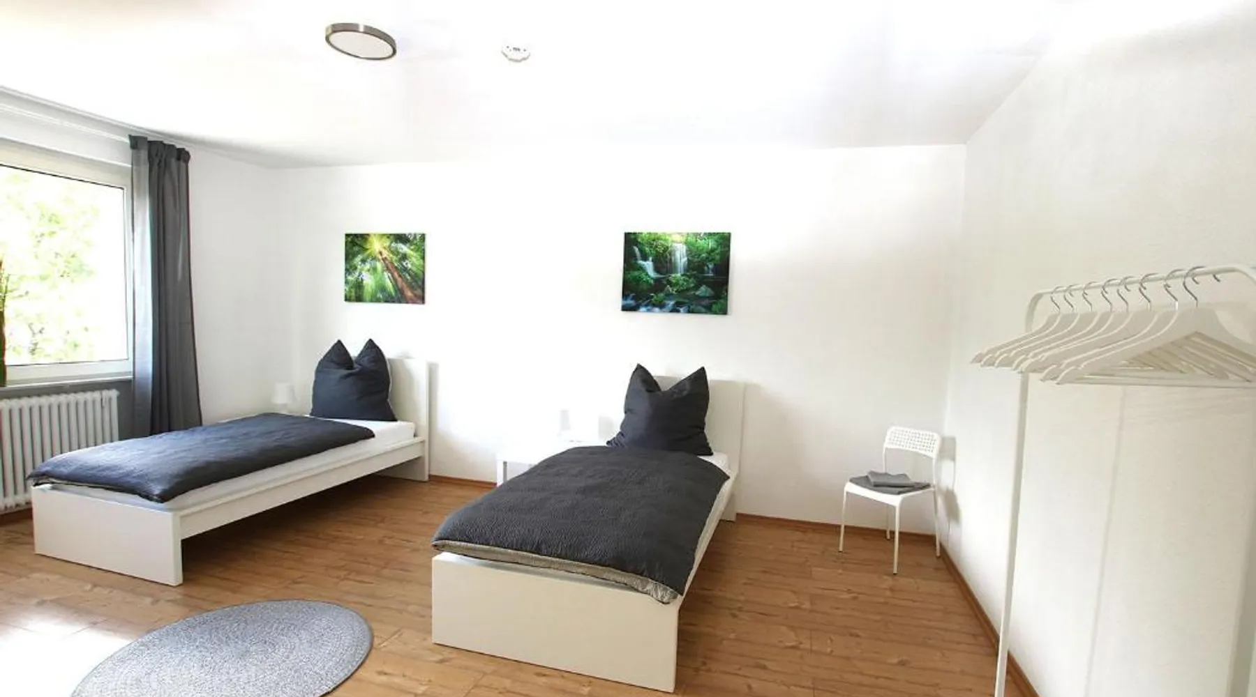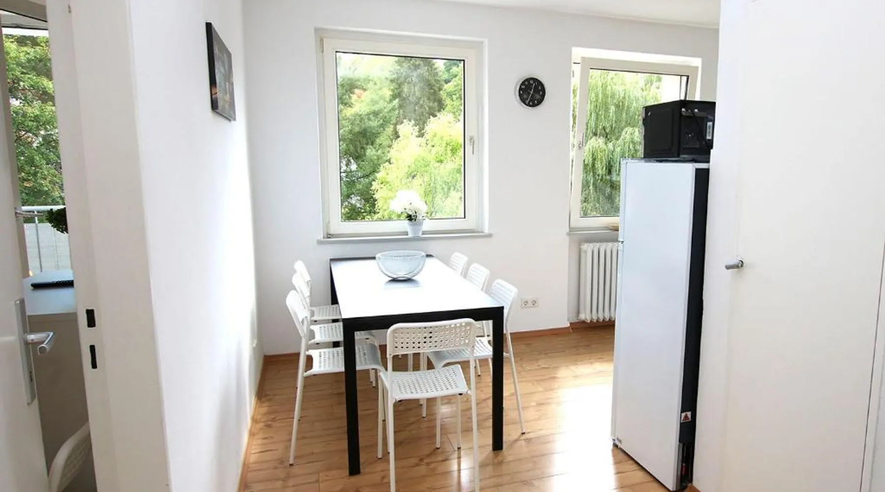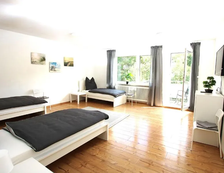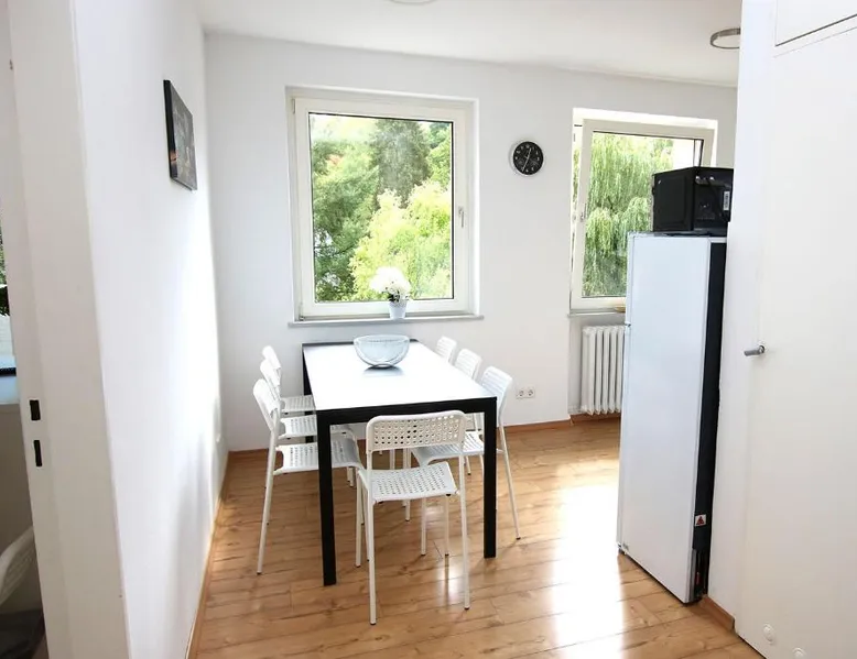 Spacious Accommodations: Spacious Apartment with Balcony in Wetzlar offers three bedrooms, a living room, and a bathroom. The apartment includes a kitchenette, washing machine, and TV. Modern Amenities: Guests enjoy free WiFi and free on-site private parking. The property features a balcony for relaxation. Convenient Location: Located 50 mi from Frankfurt Airport, the apartment is 1.1 mi from Stadthallen Wetzlar and 11 mi from Gießen Congress Center. Nearby attractions include Buderus Arena Wetzlar (1.9 mi) and Westerburg Castle (29 mi). Outdoor Activities: The surrounding area offers boating, kayaking, and canoeing opportunities. The apartment has 3 bedrooms, 1 bathroom and a kitchen. The apartment's kitchen is available for cooking and storing food. The spacious apartment features a washing machine, heating and a balcony. The unit has 7 beds.