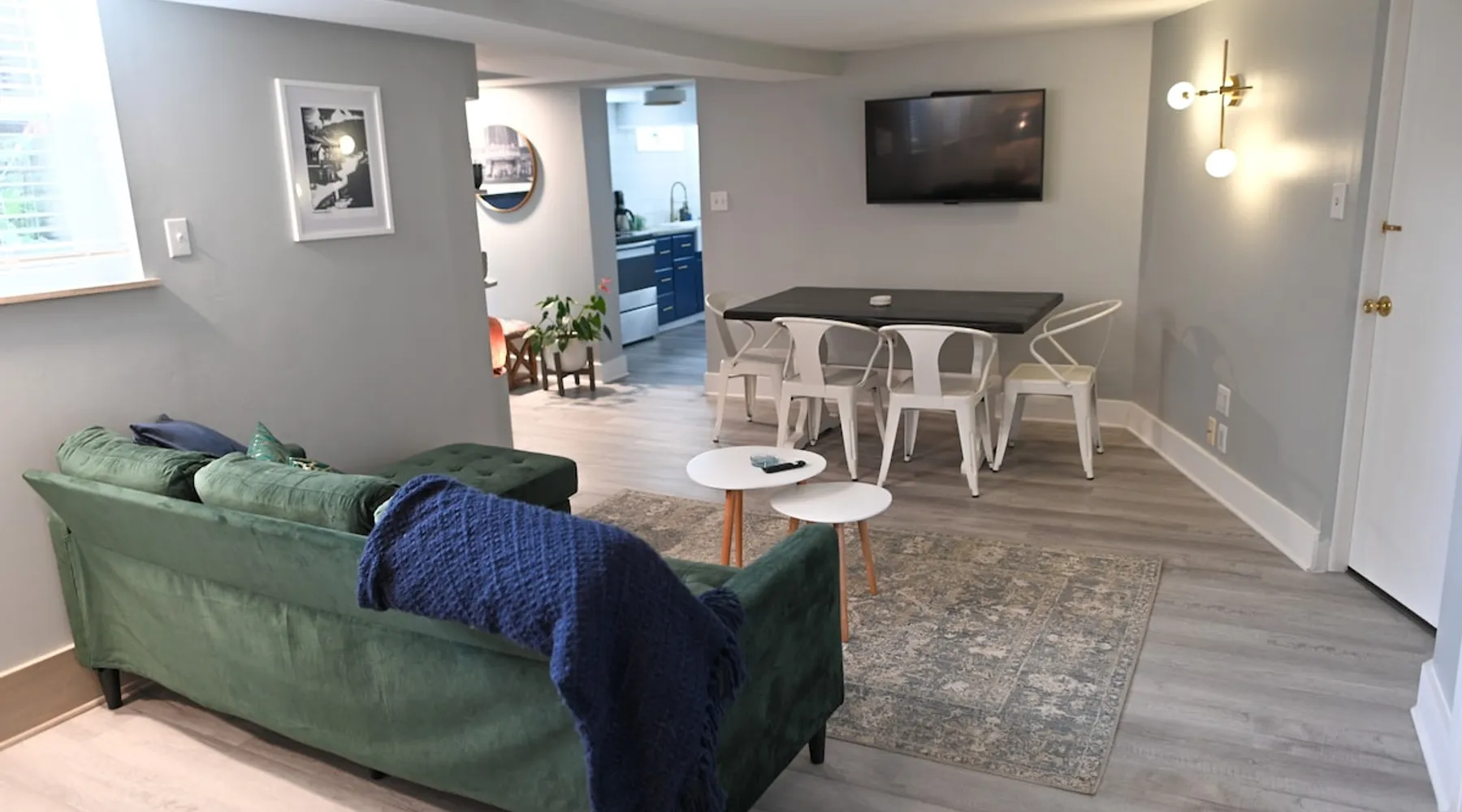 The “Nook”is a newly remodeled studio apartment, nestled in the lower level of our century family home. Centrally located in the historic Highland Square Neighborhood, we are only 2 blocks from the main strip which includes grocery, dining, retail, movie theatre and plenty of night life! The space The apartment has a private entrance, a beautiful shared patio and is abundant with windows and natural light. The Nook is cozy and stylishly designed with new appliances and fixtures throughout. In warmer months there is a window ac unit and ceiling fan, in colder weather there is Independent infrared heat you can adjust to your liking. A comfy queen sized bed, private laundry, living/dining area, full kitchen and full bathroom makes the Nook a perfect stay whether for a night or longer! Guest access There is a private entrance at the rear of our home with keyless entry. Upon entering there are 7 steps down. You have the entire apartment. There is a joining door to the rest of our basement which remains locked on our side and there is an additional lock on the guests side. Other things to note There is free street parking in front of our home. Smoking is not allowed inside - Parties are not permitted. Please no loud noise after 9:00 P.M. For your safety there are exterior cameras located on the rear, side and front of the home. As this is a basement studio apartment, you may have minimal noise from above. This may include a possible a bark from our friendly rescue pup Gia, sounds of a piano or children laughing. In colder weather you may also hear the lovely clang or occasional bang of our steam heat boiler.
