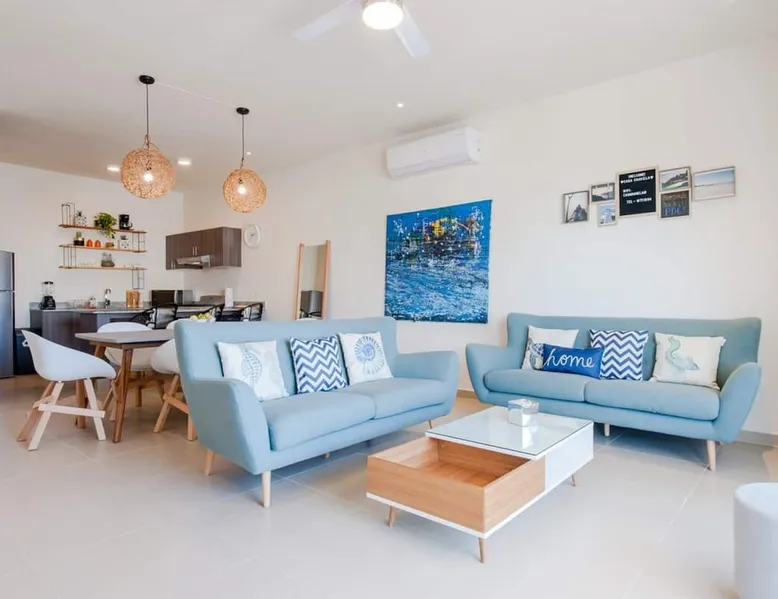 Luminous and Charming Apartment in Exclusive Residential Selvanova Condominium, with 24/7 Security and all the Amenities: ✓ 8 min drive to the famous 5th Avenue ✓ 10 min drive (3.6km) from 38th Street Beach. The Caribbean! ✓ 120m2 for your Vacation ✓ WIFI 500MB Download / Upload ✓Private Terrace ✓ 3 Pools Areas ✓ Fully equipped kitchen+Washer/Dryer ✓ Self checkin with Code ✓ 1 free parking space ✓ ACs and Ceiling fans in all rooms ✓ Gym ✓ 2 Smart TVs wfwbr The space ✓ Free access to: - 3 swimming pools with sun loungers - 3 BBQ areas and Dining tables - Gym - Sports Bar with TV ✓ 24/7 security access control ✓ Self checkin with code ✓ WIFI 500MB ✓ Netflix → Terrace equipped for Snack & Relax with table, chairs, swing Frida Kahlo and the painting of Chavela the dog! - Take the picture and publish it to CasaChavelaPlaya → Smart TV → 2 Smart TVs → 1 private parking → AC in all areas → Safety box → 2 Full bathrooms with shower and amenities → New mattresses → Towels, Bag and Beach Hats → In the "New Center of Playa del Carmen", 5 min from the Plaza Las Américas Shopping Center and the new Restaurants area. → New condominium, very quiet, ideal for resting and just 8 min from the famous 5 Avenue and the night bar area Guest access → Full apartment available for Guests. "My Casa is your Casa" → Free access to the common areas of the Condominium: - 3 swimming pools with sun loungers - 3 BBQ areas and Dining tables - Gym - Sports Bar - Green Areas Other things to note Please remember that you are staying in a House, not a Hotel. Treat the space with respect. If any problem occurs, let us know and we will do what is in our hands and as soon as possible. However, there is no staff attending the Condominium 24/7. We provide as a courtesy of some amenities such as toilet paper, kitchen towels, soap, shampoo, garbage bags, etc. that are not refilled during the stay. Cleaning Service during the stay is not included, but if you wish we can schedule it with an additional cost. Please help the Planet by saving Energy by using the ACs optimally maintaining an interior temperature of 24°C and always turning them off when leaving.