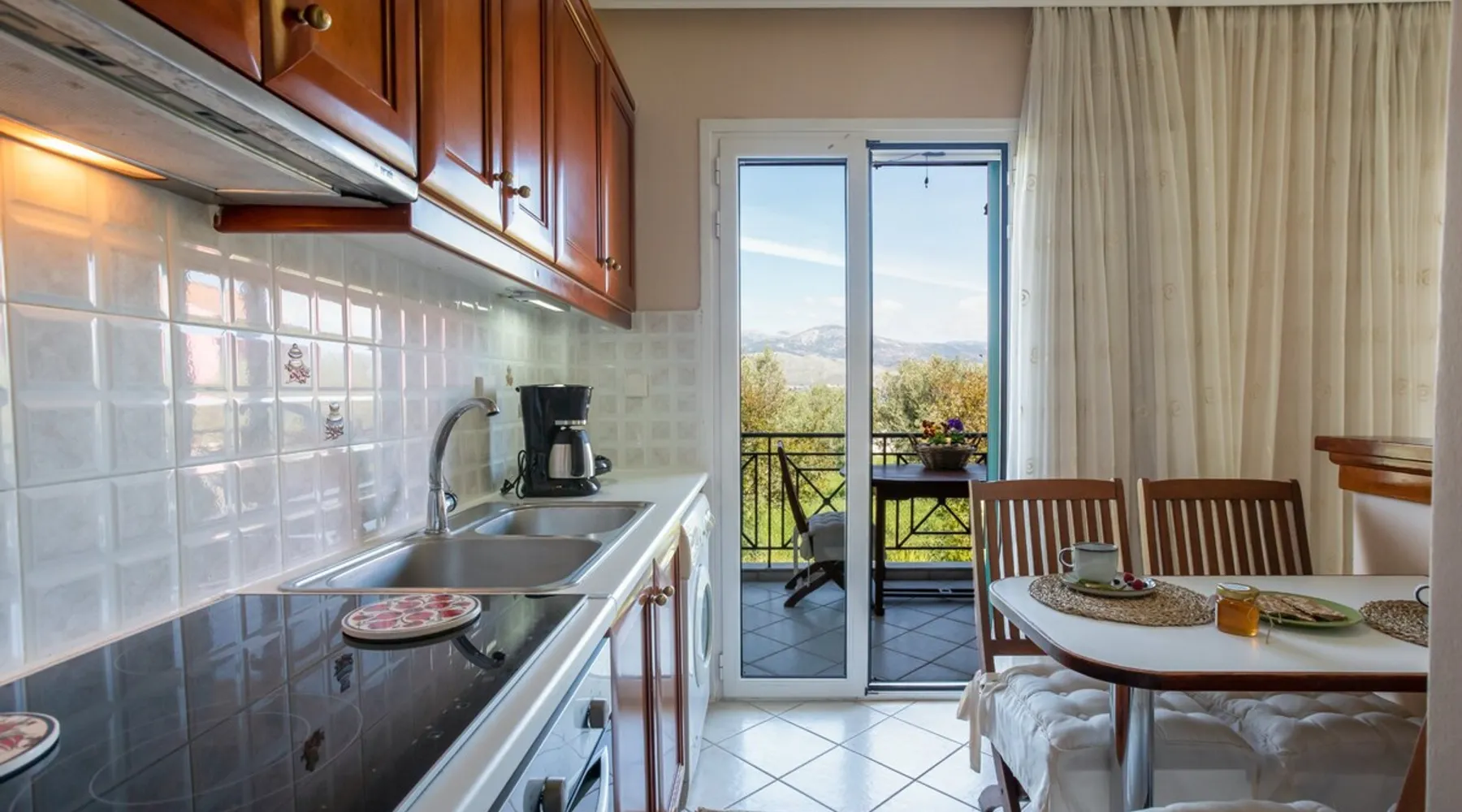 The Mélitta apartment is located in Lixouri, in a privileged area, few meters from the sea and five minutes from the central square of the city. It is a quiet, bright and spacious apartment that can host couples as well as families. It has Wi-Fi , air conditioning in every room, and all amenities needed for a pleasant stay. Its sophisticated aesthetic and pleasant aura are what will win over the guests! The space The apartment includes three bedrooms that can accommodate up to six people. Each bedroom has its own balcony , modern air conditioning systems, and comfortable mattresses. The bathroom has a bathtub with a cabin ensuring privacy. The living room is spacious and has a flat-screen TV , a seating area and a desk. The kitchen is fully equipped (filter coffee shop, espresso , kettle ,toaster , washing machine) while offering access to a cozy balcony . Registration details 00001566354