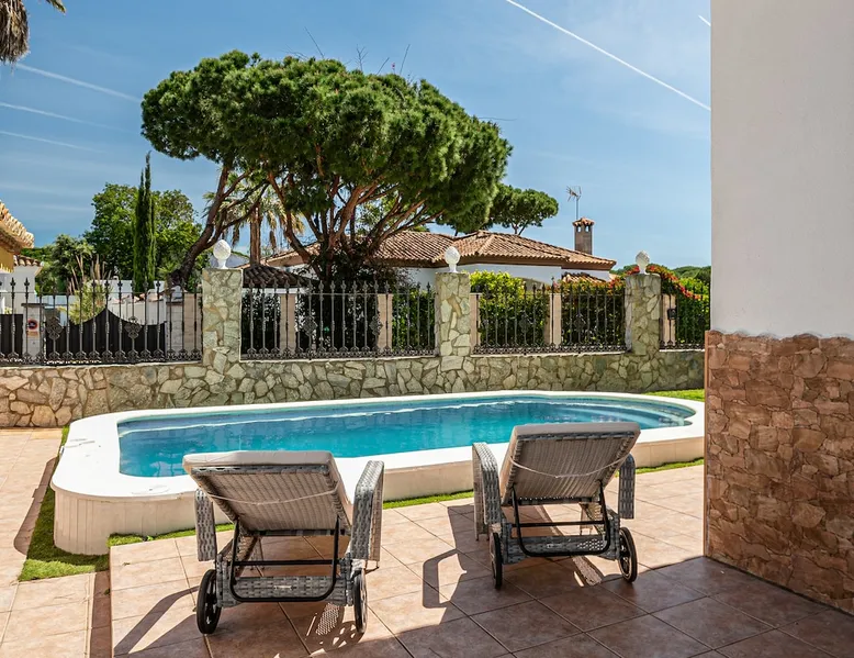 A house redecorated this year 2022 with the pool and brand new barbecue, a house with generous rooms in terms of size and brightness, all in an unforgettable enclave. Next to the magic point of Chiclana where the sunsets have a specific weight. yYSNz The space Two-story chalet and a perfect layout. The ground floor has a bedroom with a double bed and a full bathroom with a shower. On the first floor, the large master bedroom has a single bed for a child. The other 2 bedrooms have twin beds. The fenced pool or not, as it is detachable, and at the convenience of the customers as they wish to put it or not, guarantee safety for the little ones. The gated garage and barbecue by the back porch and snack will ensure an unforgettable stay. For stays of 30 nights or more, electricity is not included in the price Other things to note For stays longer than 30 nights, electricity is not included in the price. Registration number VFT/CA/14042