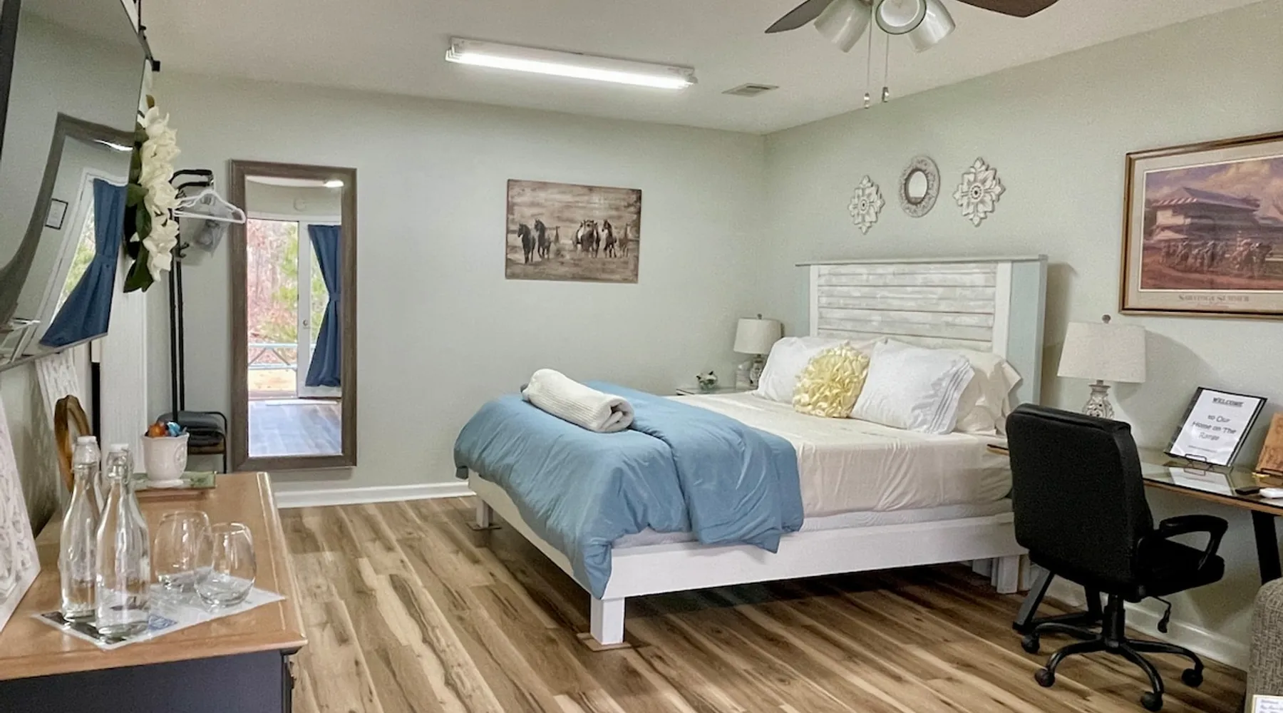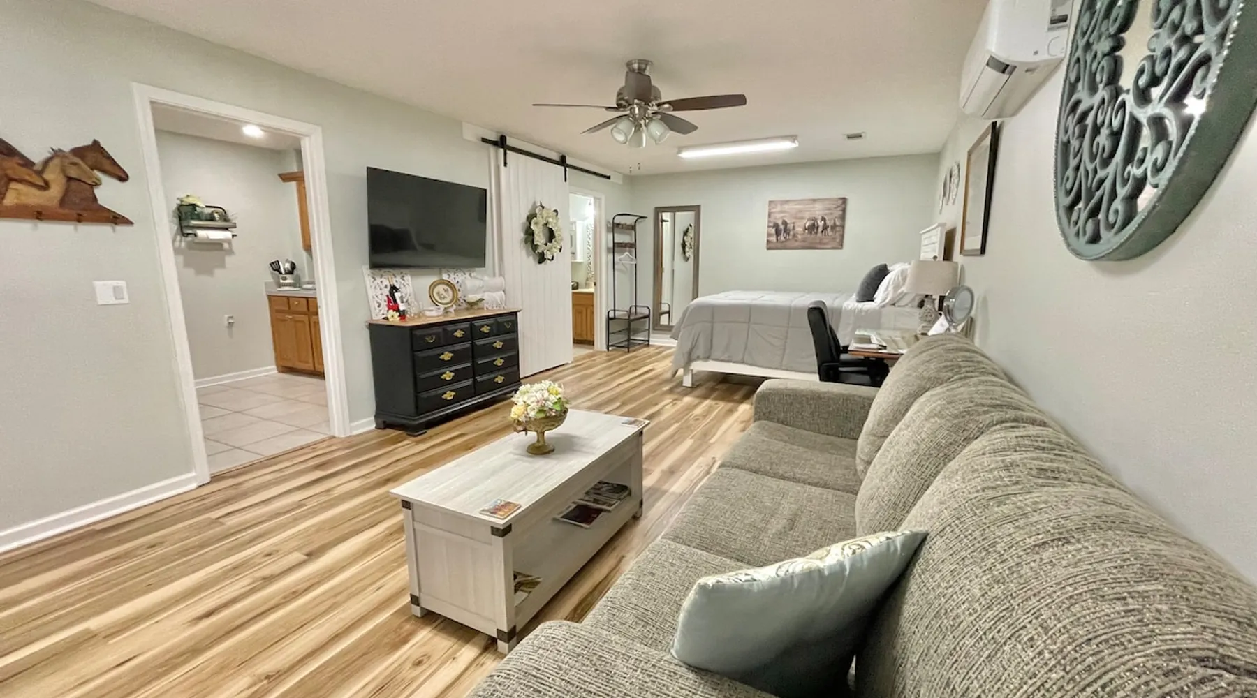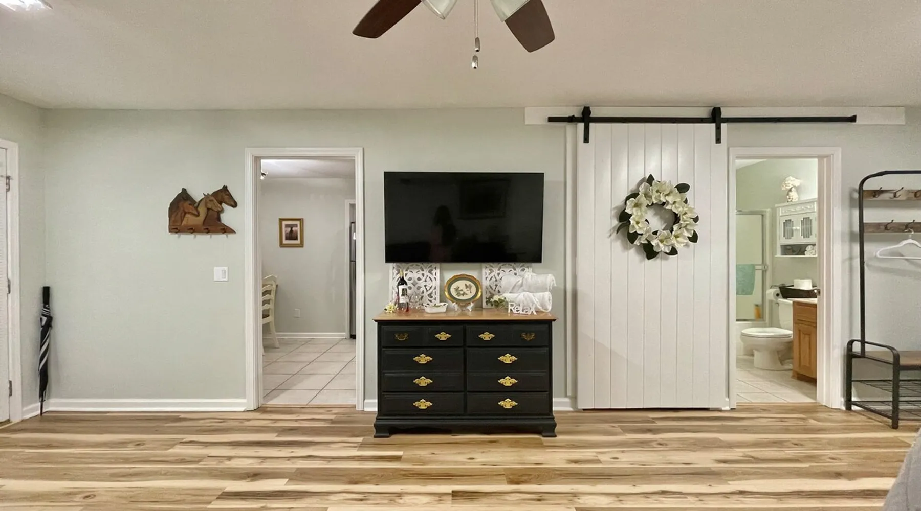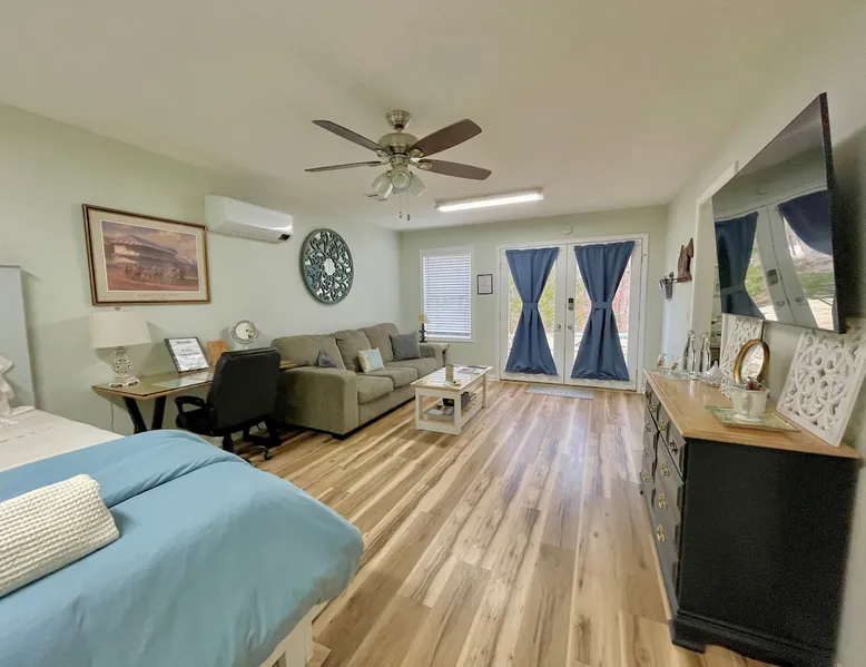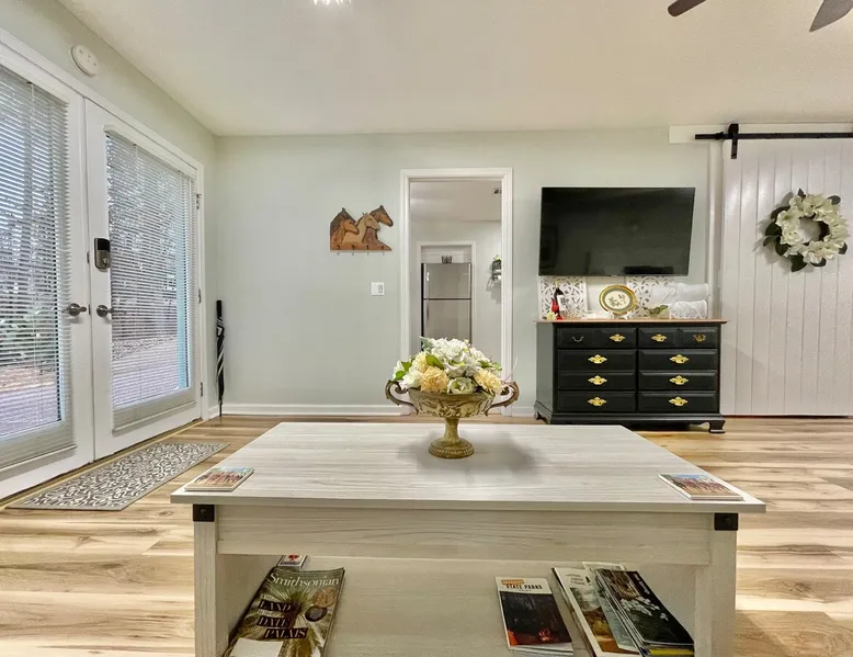 Home on the Range apartment is on the Magellan Golf Course with gorgeous views of fairways and Lake Balboa Beach and Marina only a mile away. Serene, clean and comfortable, the apartment on the side of our home offers privacy and keyless entry. Enjoy a great location, full size kitchen and bath, King hybrid memory foam mattress, WiFi, 55” Smart TV, work space, Netflix, YouTube TV, comfy sofa, Keurig, coffee, teas & more! Furbabies are welcome with an $89 non-refundable fee. Parking for 1 car. The space Home on the Range apartment has endless vistas of the golf course and the hills beyond and is completely private. Guests have their own designated parking spot and walk via a paved path to the apartment. We have a valet cart at your disposal. The side yard is private and shaded for your enjoyment. In the morning you may be greeted by deer feeding on the grounds. The totally updated bedroom suite has a new Tempur-Pedic mattress, plush sofa, and a desk with cushioned office chair, large screen tv and fast, reliable WiFi, and it’s own AC! The kitchen is fully stocked, has coffees, teas, creamer, sweetners, pancake mix, syrup, and butter so you don’t have to run out for breakfast in the morning. We are one mile from Lake Balboa Beach and Marina and 20 minutes to Downtown Hot Springs/National Park. Hot Springs Village is a nature lover’s paradise with tons of recreation! Spanning 26,000 acres of the Ouachita Mountains, HSV is home to 12 lakes, 9 golf courses, a first-class fitness center with indoor pool, outdoor pool, parks, 15 tennis courts, pickle ball courts, boating, swimming, water sports, fishing, 30 miles of walking and biking trails, outdoor concerts, churches and restaurants and hangouts with live music and Karaoke. You don’t have to leave the Village to have the time of your life! The Beehive, Desoto Club, Waypoint Marina, El Jimador, Puttrz, and Melinda’s Cafe are just a few of the local hangouts/restaurants to enjoy. You don’t have to leave the Village to have the time of your life! But if you do, there is so much to discover nearby: Hot Springs National Park - or the Spa City - is know for its natural hot springs, many spas and bath houses. These can be found downtown on Bathhouse Row on Central Avenue. While there, enjoy shopping, dining and walking the Grand Promenade and up, up the trails to the observation tower. Or you can just drive to the summit. The view is Heavenly! Be sure to bring water bottles and get fresh, healthy spring water from Happy Hollow Fountain on Fountain Street. Garvan Gardens, Lake Hamilton and Oaklawn Racing Casino, Magic Springs Water Park, Mid-America Science Museum and Ron Coleman Quartz Mine are also vacation hot spots to enjoy. Lake Ouachita National Park - rent a pontoon on this gorgeous lake - and Lake Catherine State Park are perfect for the outdoor enthusiast and they are just a half hour away; Petit Jean State Park with its amazing hiking, waterfalls and Mather Lodge Restaurant and magnificent overlook is an hour away. P. Allen Smith’s Moss Mountain Home with lunch and exquisite garden tour, is an hour away. Guest access Guest have access to the entire downstairs apartment. Other things to note Small furbabies welcome with a $79 non-refundable fee. NO PARTIES!