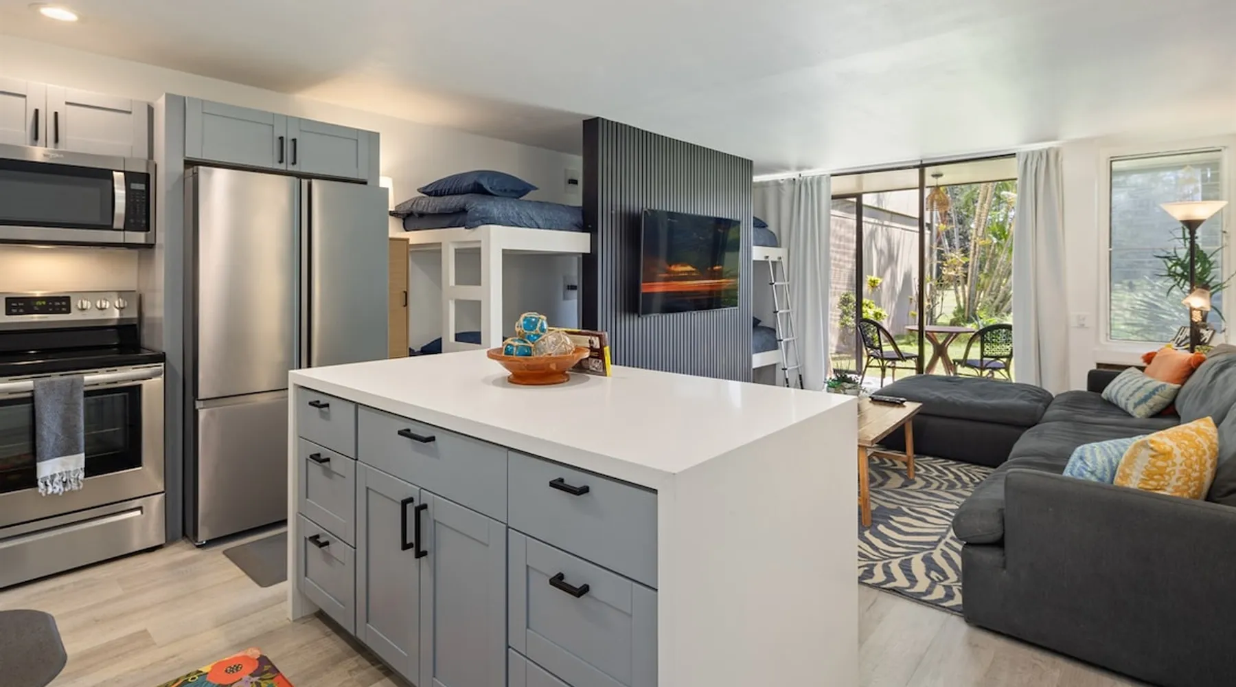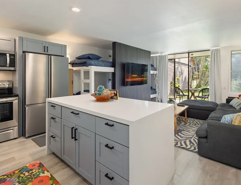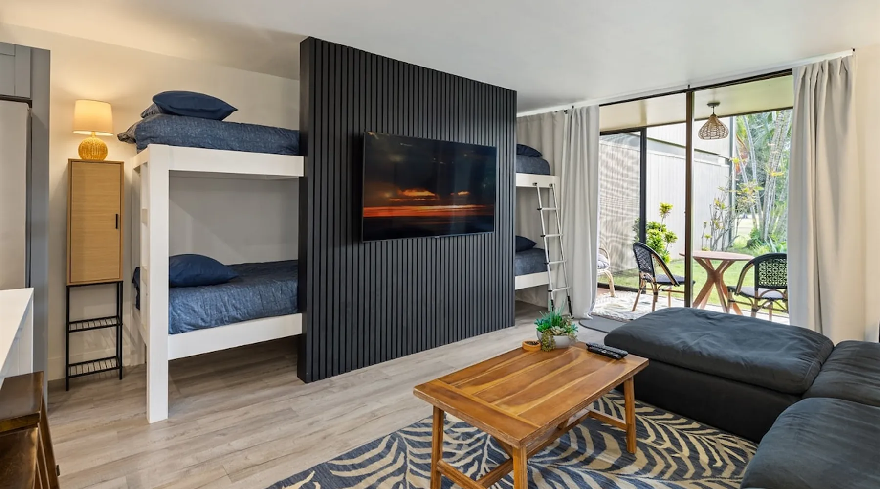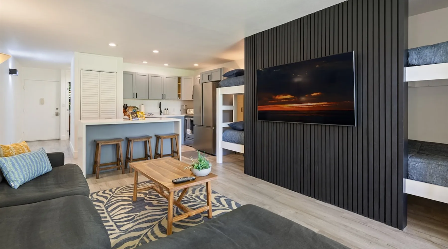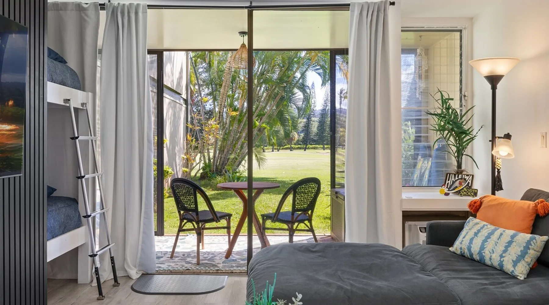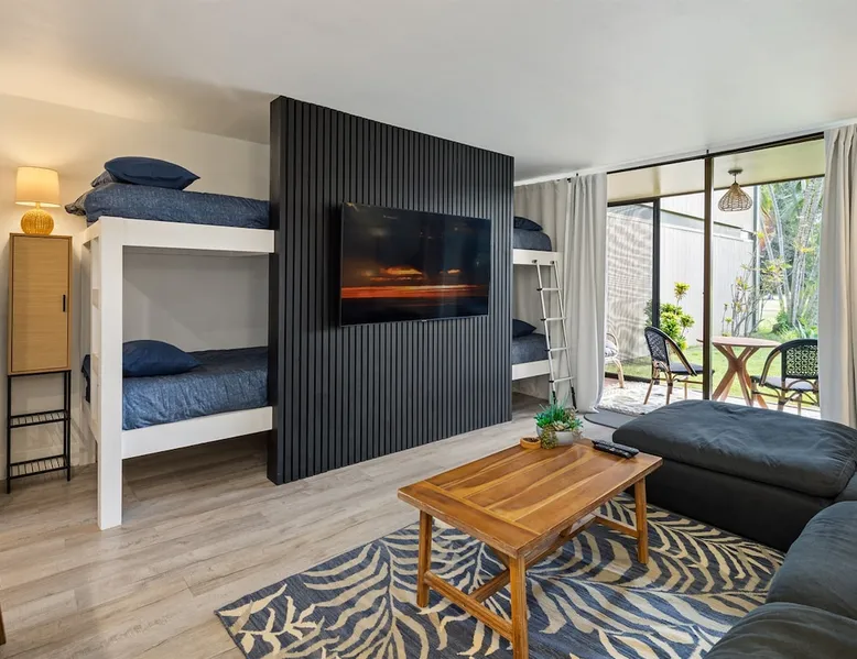 Relax and unwind with your family in modern luxury. We’re excited to share with you our newly renovated oceanside condo. Nestled perfectly between the North Shore of Oahu’s world class surfing destinations and world famous golf courses - you’ll never be without endless activities. The space ACCOMODATIONS 1 King Bed 4 twin beds (2 bunks) 1 full bathroom Rest and relaxation comes standard. Take full advantage of a brand new kitchen, new appliances, crisp air conditioning and other modern technologies. Let the style and feeling of our new condo provide a comfortable and exciting space once you’ve spent each exploring the endless beauty and attractions Oahu has to offer. We have made every attempt to ensure your stay is a memorable and luxurious adventure. Plenty of extra bed sheets, beach towels and beach supplies comes standard too - you’re here to enjoy your stay, not worry about the little things. You will enjoy complimentary shampoos, conditioners, bath soaps, hand soaps, toothbrushes and toothpastes, lotions and sanitizers. Our brand new kitchen is equipped with everything you’ll need to cook a full scale meal or if you choose to enjoy a coffee while watching the morning light on the back lanai - we’ve got you covered. A good night’s sleep is a must, which is why we’ve supplied the King bed in the main bedroom and each of the four twin bunk beds with brand new memory foam mattresses. Turtle Bay Resort boasts 880 acres of pristine gardens, golf courses, walking/bike paths, restaurants and surfing and snorkeling beaches. Nearby pool and tennis court amenities ensures the fun never stops. The North Shore of Oahu is referred to as the 7 mile miracle, for its beautiful white sand beaches, world class waves and crystal blue waters. From Hale'iwa Beach Park to Sunset Beach, you will find the most beautiful shore line found anywhere on earth. It is truly a magical place. This unit is the perfect island getaway when visiting the North Shore! Guest access Our guests always give our check in process 5 stars! With easy step by step keyless entry and self check in, our guests can arrive at anytime. We wanted our check out process to be as easy and relaxing as our check in, so we don't ask you to do complete any tasks upon check out. Our only ask is to kindly check out at 10:00am :) Keep in mind that Hawaii is known to have a few roaches, geckos and other insects, especially during the winter rainy season months. We do our best to keep them out by having monthly exterminations so please excuse us if you see any stragglers. To help us with this cause and to keep our Hawaii “pets” from entering, we ask that you put food away and keep screen doors shut at all times. The unit is located at Kuilima Estates West and is walking distance to the Turtle Bay Resort and Spa. It is close to walking trails, beaches, restaurants and the world famous Palmer Golf course. The unit also comes with one assigned parking stall for a rental car. Please note: The condo has its own private pool within the community, along with a BBQ pit and tennis courts right outside the front door. It's about a 2 min drive to the resort or 10 minute walk. You will have access to the Turtle Bay Resort pool bar, pool restaurant, property and all other restaurants, however the cabanas at the resort and the Turtle Bay Resort pool are reserved for hotel guests only. • We maintain a clean home with routine pest control, but be aware that island critters (ants, lizards, cockroaches, etc) may be occasionally be seen inside as it is a tropical climate. Wild chickens and roosters also roam the area and may enter into the yard. * Location on map is approximate but not exact. Registration Details 570010290176, 148, TA-156-749-9776-01