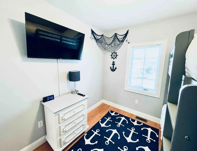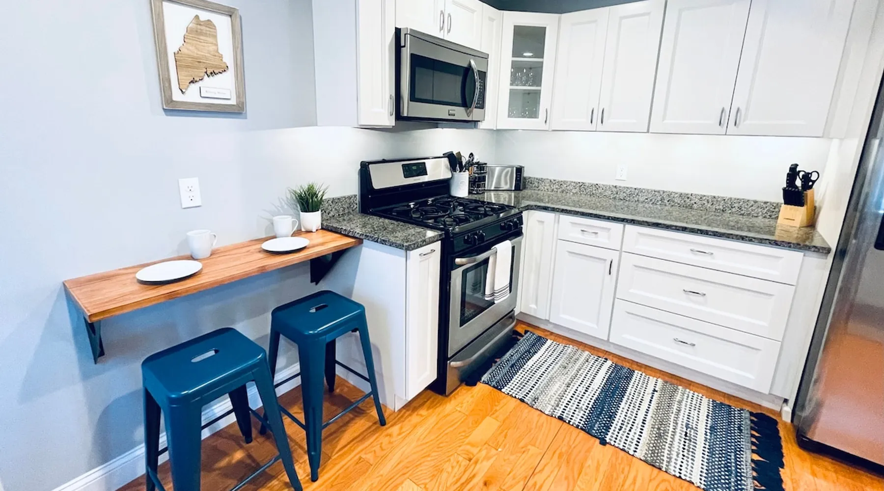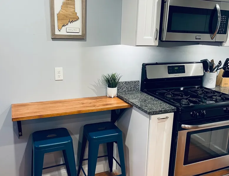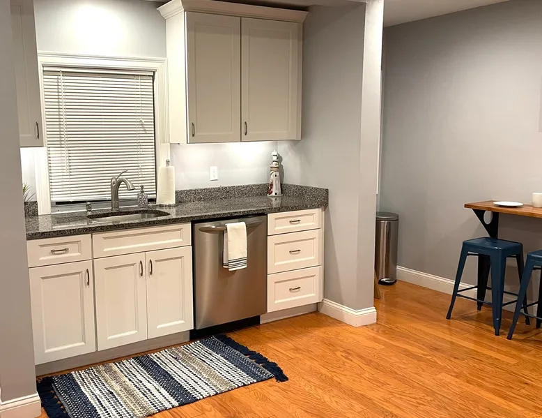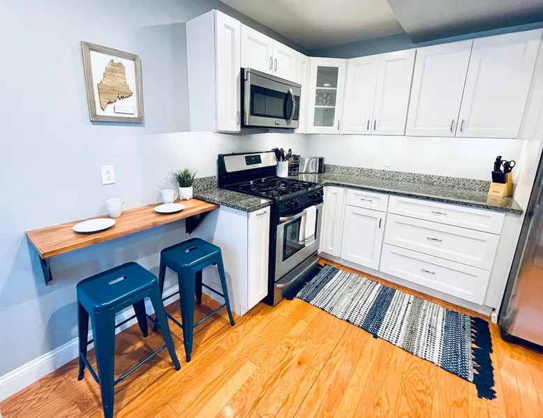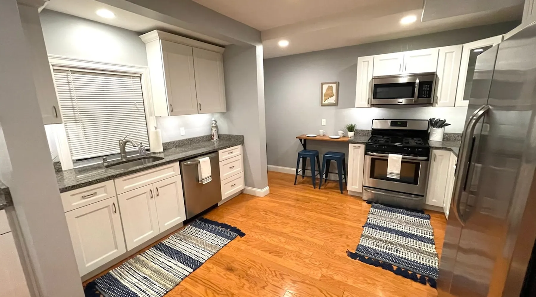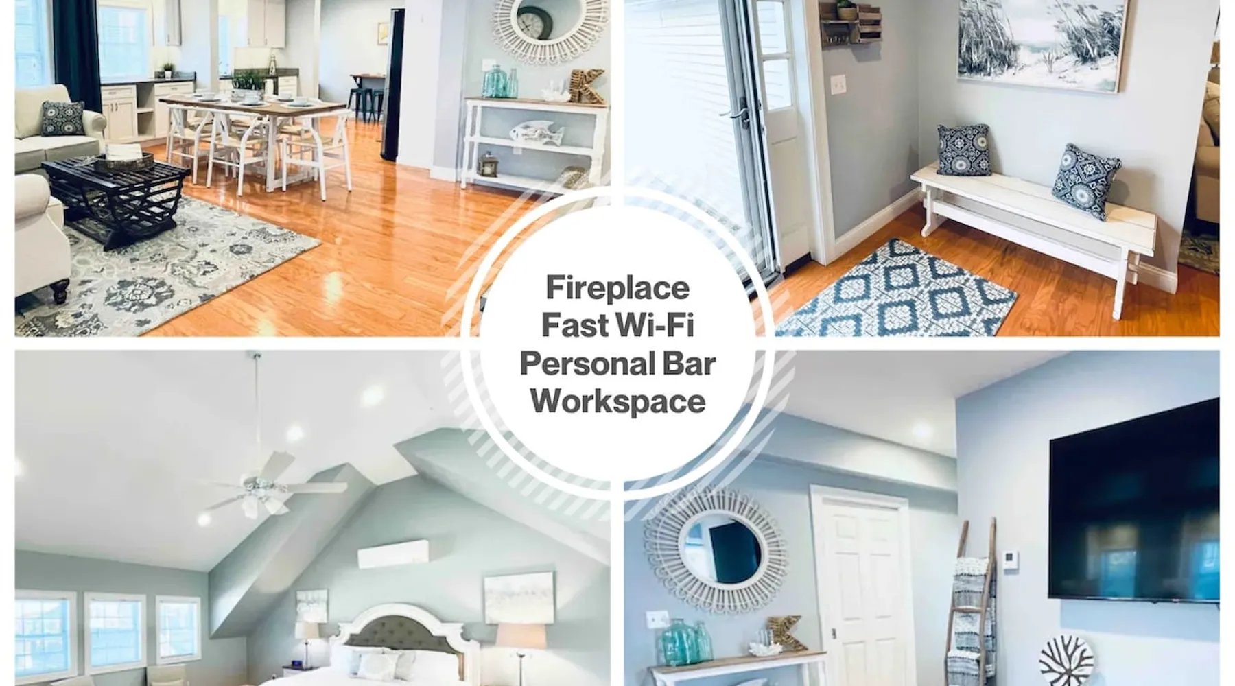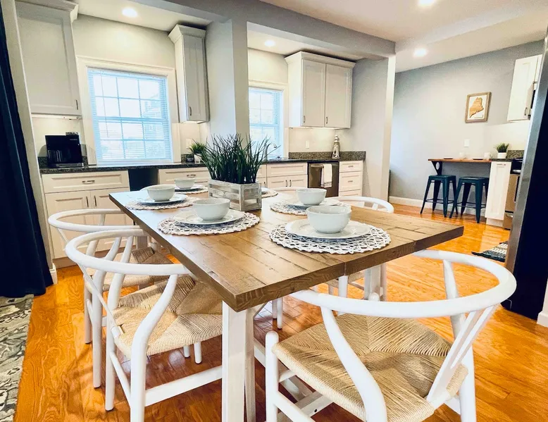 Welcome to the Seacoast! This 4-bedroom hideaway is privately nestled in Kittery Foreside while still being close to the action. Decorated in the theme of a seacoast farmhouse, this home is perfect for 2-3 couples looking to escape, a family or two for a seacoast vacation or extended "work-cation". With ample space to stretch out our extremely well equipped home is within an 18 minute walk to downtown Portsmouth, 6 minute drive to the Kittery Outlets and 12 minute drive to York beach. The space Once you walk in the front door you will immediately feel the ocean and farmhouse vibes from the crisp seacoast decorations, distressed wood kitchen table, coffee bar and wooden blanket ladder. The first floor provides a full bathroom with laundry area and a wonderful kitchen that includes everything you need to prepare a home cooked meal. The second floor includes another full bathroom and 3 bedrooms tastefully decorated for your relaxation. One of the bedrooms doubles as your private office and with ultra high-speed internet, everyone can be on a device while you are on a Zoom meeting. Our third floor master suite is the showstopper. It includes a THIRD full bathroom with dual sinks, a walk in closet, king size bed, private electric fireplace, sitting area and your own personal bar supplied with ice bucket, fruit juice, soda and glasses for that perfect night cap. Other things to note Starter Supplies: We supply sufficient trash bags, paper towels, toilet paper, and other household essentials designed to last approximately three days. Should your stay extend beyond this period, we request that guests take on the responsibility of replenishing these items.