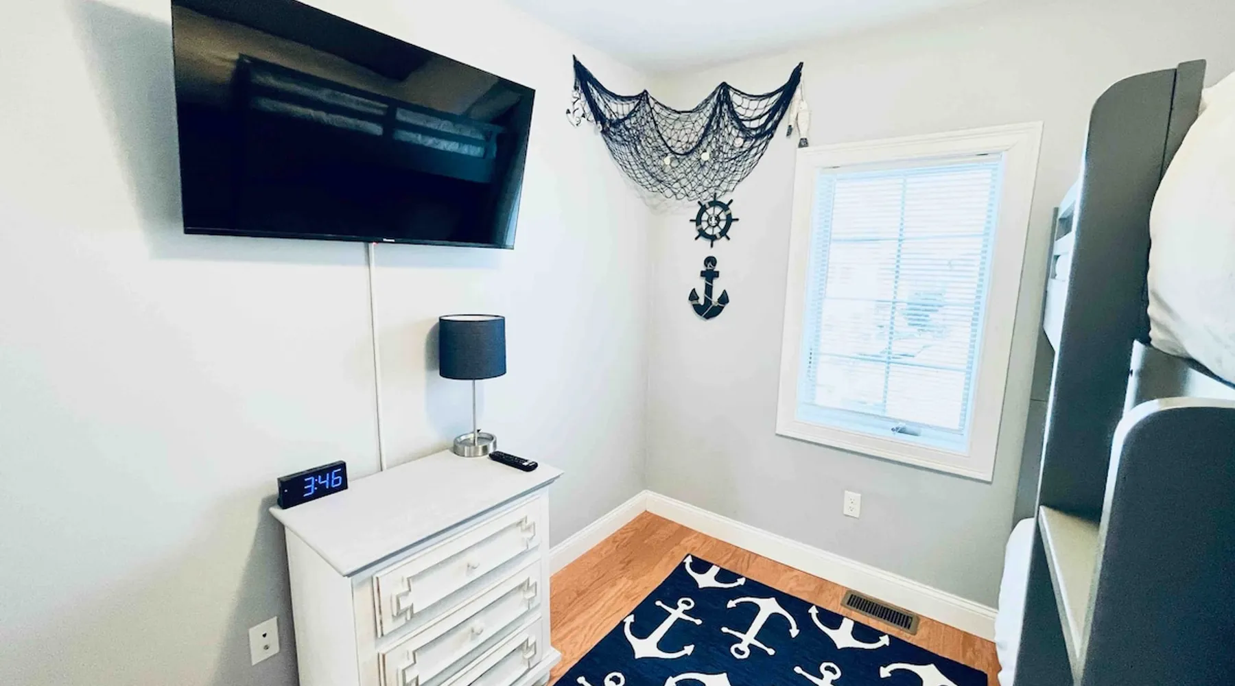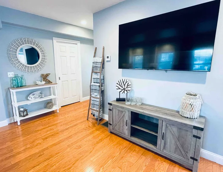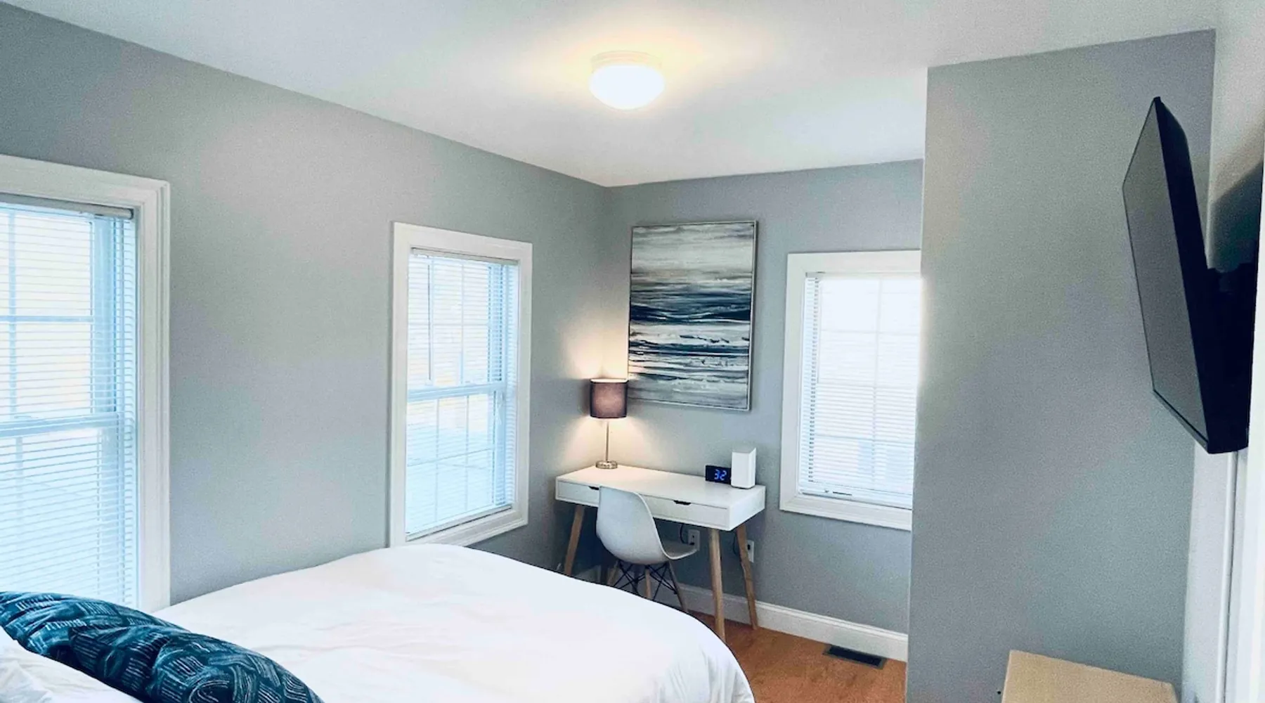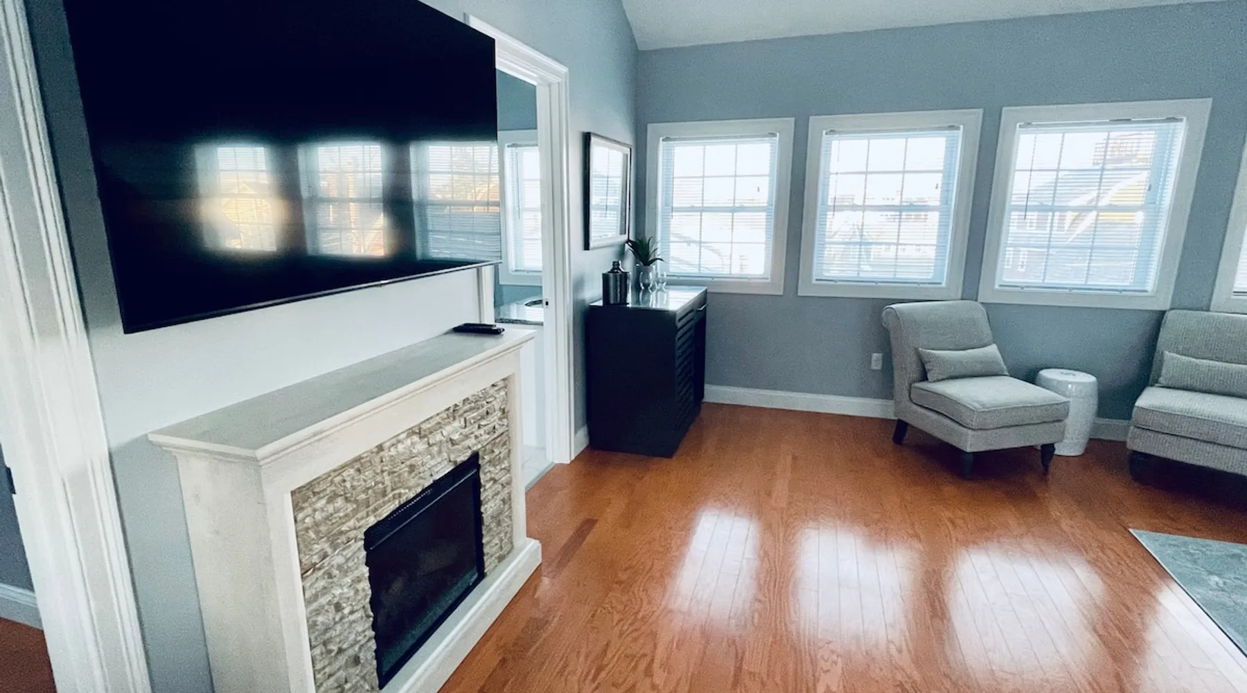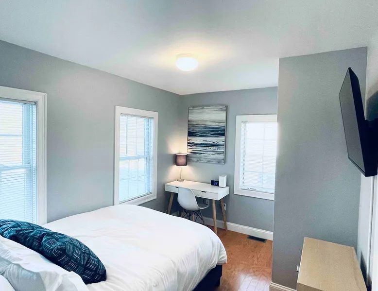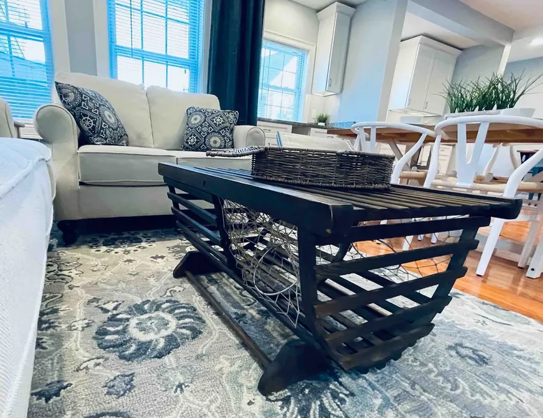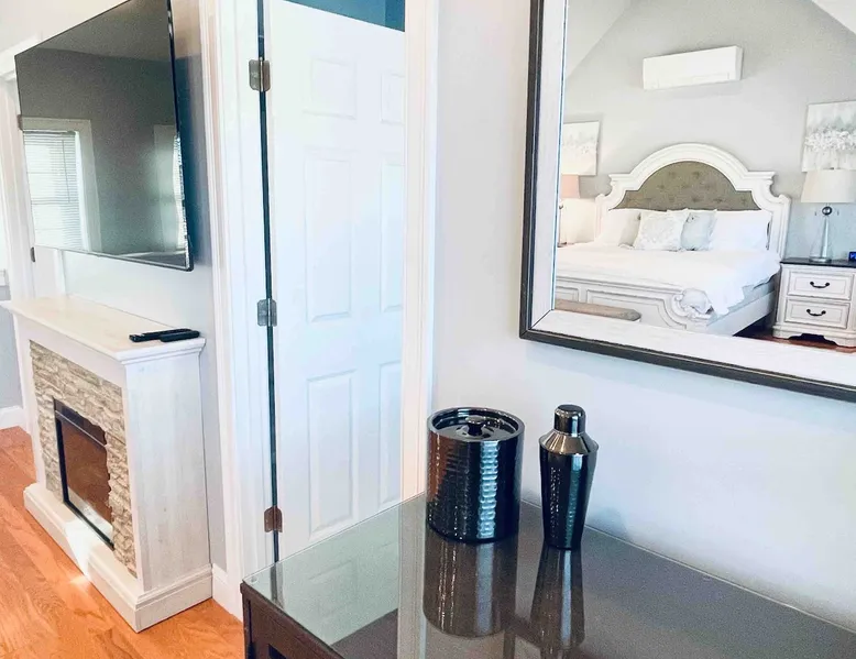 Welcome to the Seacoast! This 4-bedroom hideaway is privately nestled in Kittery Foreside while still being close to the action. Decorated in the theme of a seacoast farmhouse, this home is perfect for 2-3 couples looking to escape, a family or two for a seacoast vacation or extended "work-cation". With ample space to stretch out our extremely well equipped home is within an 18 minute walk to downtown Portsmouth, 6 minute drive to the Kittery Outlets and 12 minute drive to York beach. The space Once you walk in the front door you will immediately feel the ocean and farmhouse vibes from the crisp seacoast decorations, distressed wood kitchen table, coffee bar and wooden blanket ladder. The first floor provides a full bathroom with laundry area and a wonderful kitchen that includes everything you need to prepare a home cooked meal. The second floor includes another full bathroom and 3 bedrooms tastefully decorated for your relaxation. One of the bedrooms doubles as your private office and with ultra high-speed internet, everyone can be on a device while you are on a Zoom meeting. Our third floor master suite is the showstopper. It includes a THIRD full bathroom with dual sinks, a walk in closet, king size bed, private electric fireplace, sitting area and your own personal bar supplied with ice bucket, fruit juice, soda and glasses for that perfect night cap. Other things to note Starter Supplies: We supply sufficient trash bags, paper towels, toilet paper, and other household essentials designed to last approximately three days. Should your stay extend beyond this period, we request that guests take on the responsibility of replenishing these items.