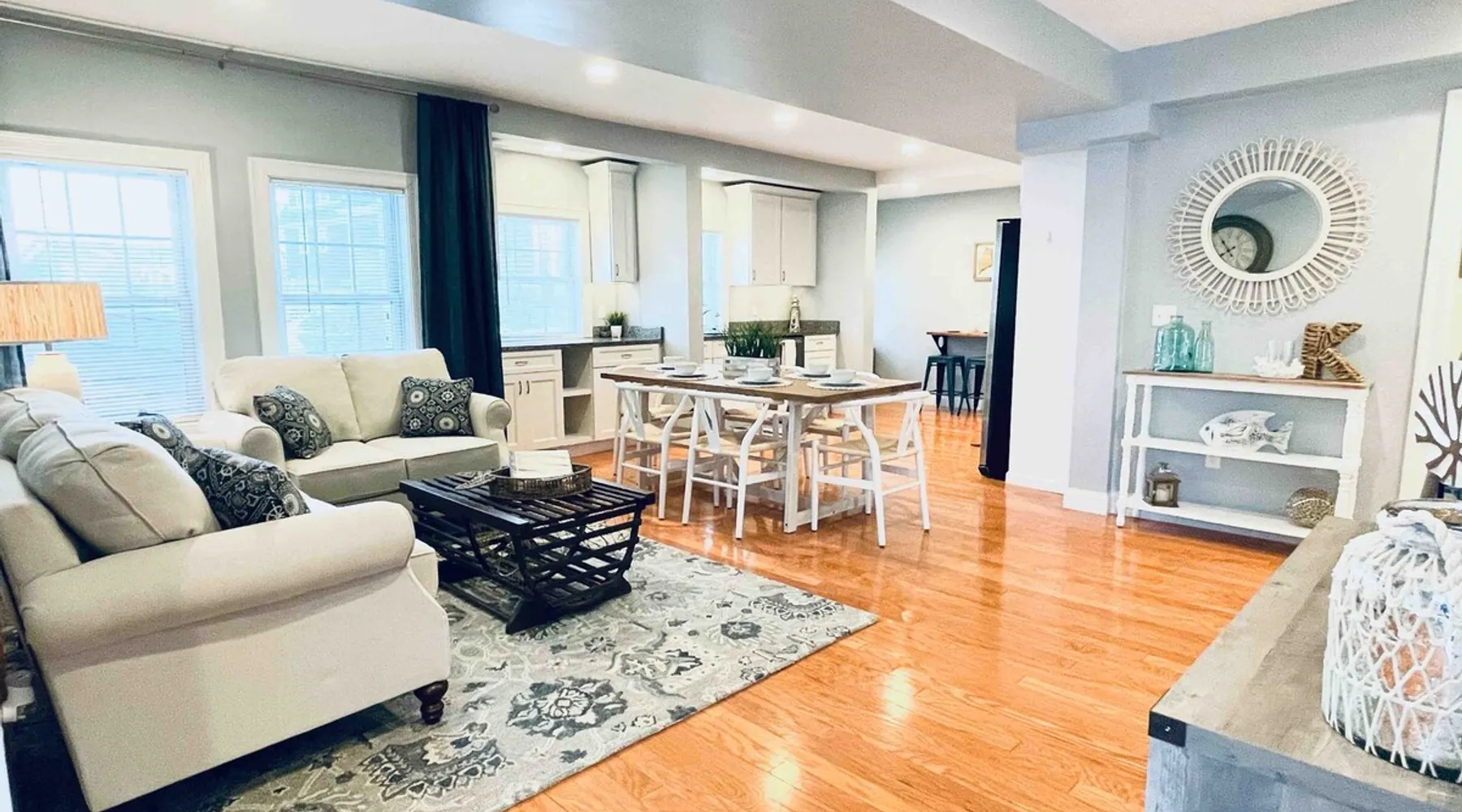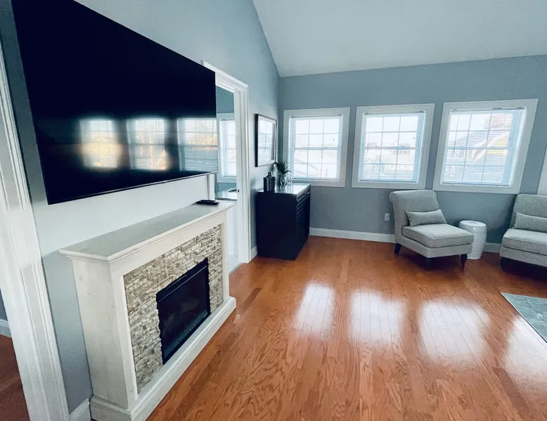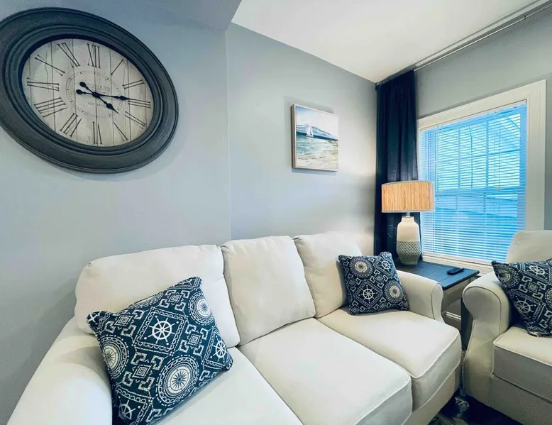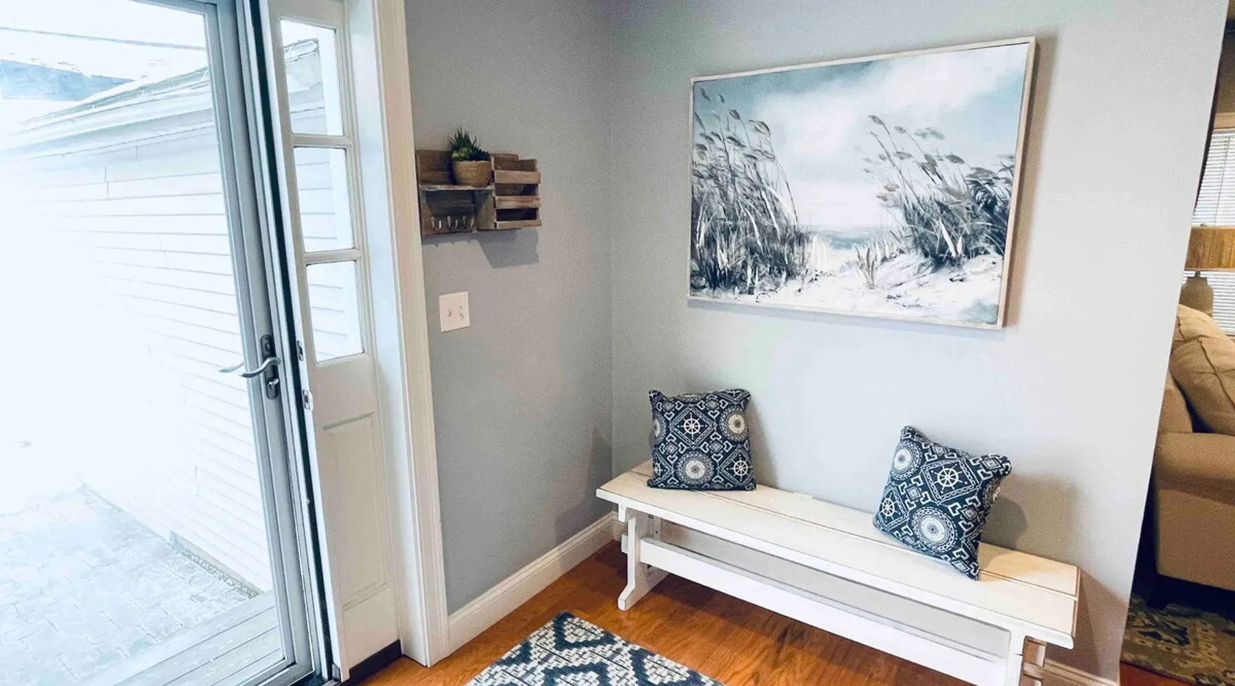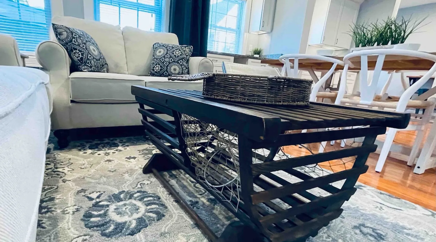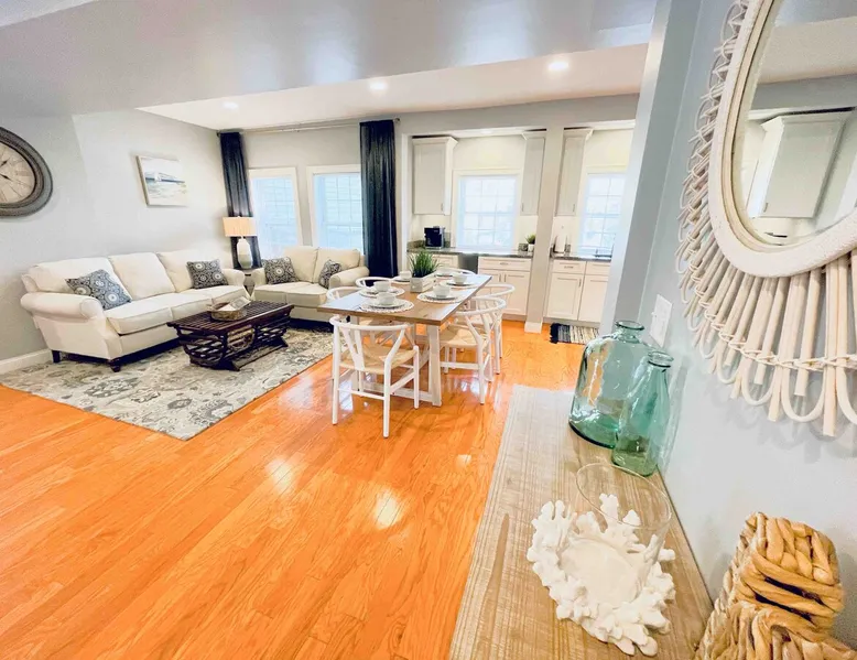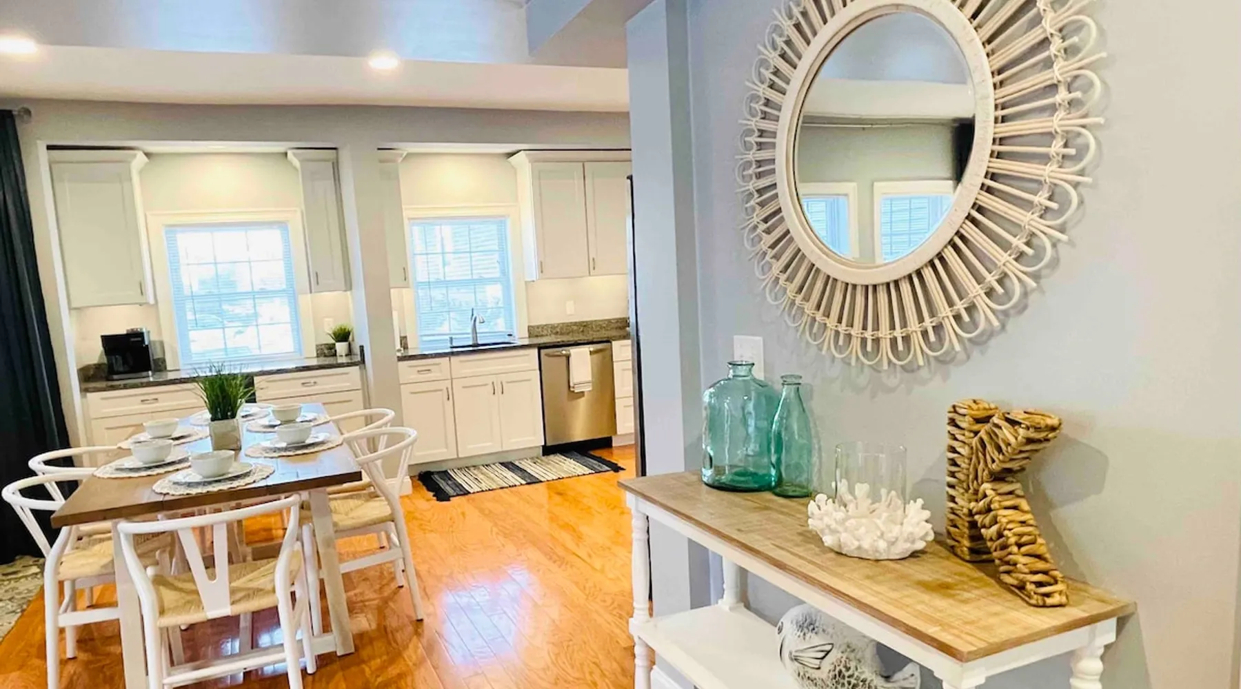 Welcome to the Seacoast! This 4-bedroom hideaway is privately nestled in Kittery Foreside while still being close to the action. Decorated in the theme of a seacoast farmhouse, this home is perfect for 2-3 couples looking to escape, a family or two for a seacoast vacation or extended "work-cation". With ample space to stretch out our extremely well equipped home is within an 18 minute walk to downtown Portsmouth, 6 minute drive to the Kittery Outlets and 12 minute drive to York beach. The space Once you walk in the front door you will immediately feel the ocean and farmhouse vibes from the crisp seacoast decorations, distressed wood kitchen table, coffee bar and wooden blanket ladder. The first floor provides a full bathroom with laundry area and a wonderful kitchen that includes everything you need to prepare a home cooked meal. The second floor includes another full bathroom and 3 bedrooms tastefully decorated for your relaxation. One of the bedrooms doubles as your private office and with ultra high-speed internet, everyone can be on a device while you are on a Zoom meeting. Our third floor master suite is the showstopper. It includes a THIRD full bathroom with dual sinks, a walk in closet, king size bed, private electric fireplace, sitting area and your own personal bar supplied with ice bucket, fruit juice, soda and glasses for that perfect night cap. Other things to note Starter Supplies: We supply sufficient trash bags, paper towels, toilet paper, and other household essentials designed to last approximately three days. Should your stay extend beyond this period, we request that guests take on the responsibility of replenishing these items.