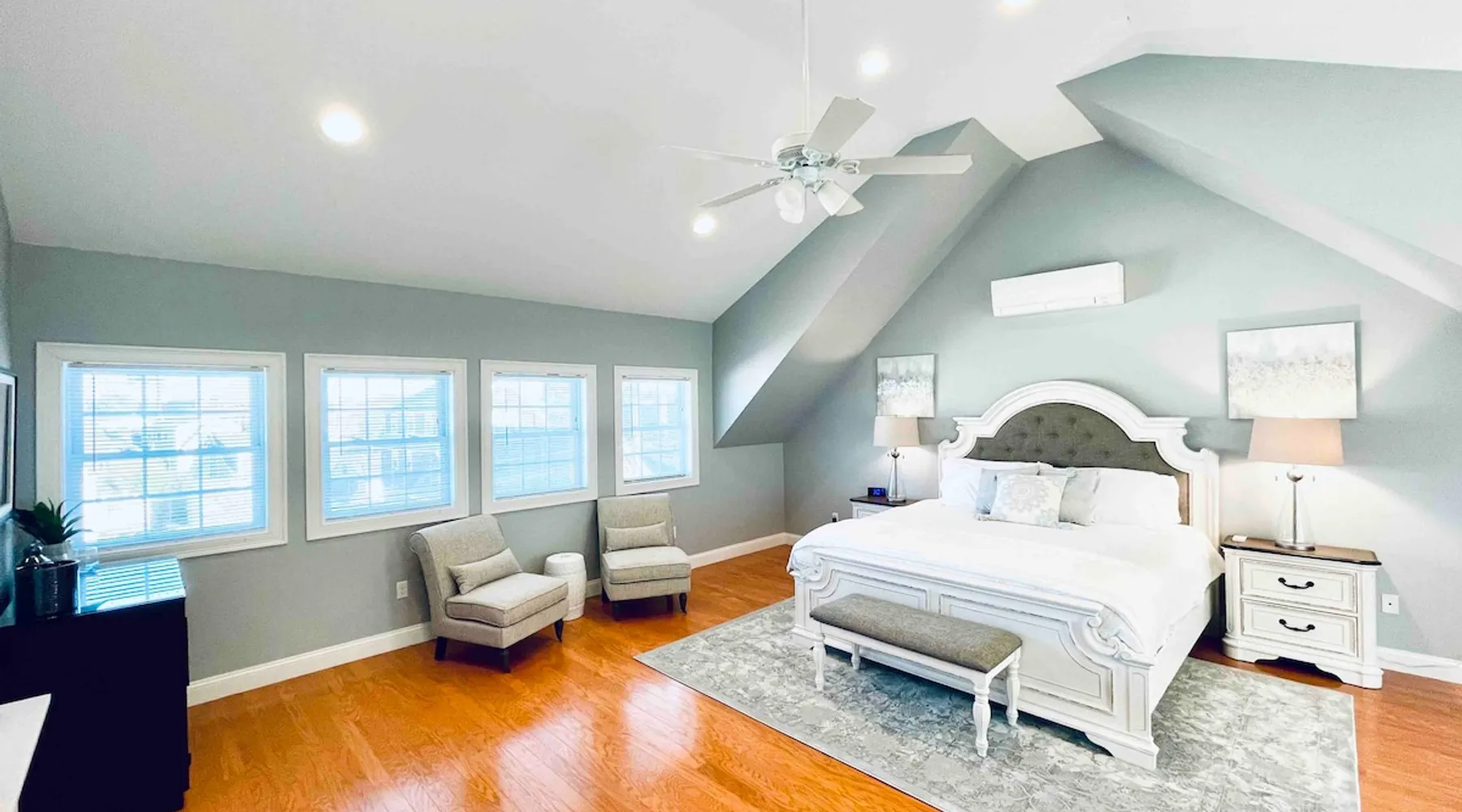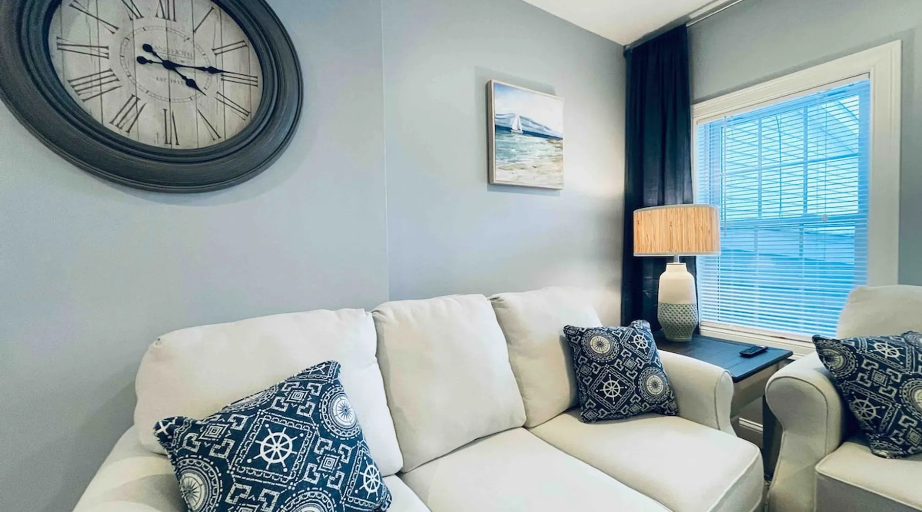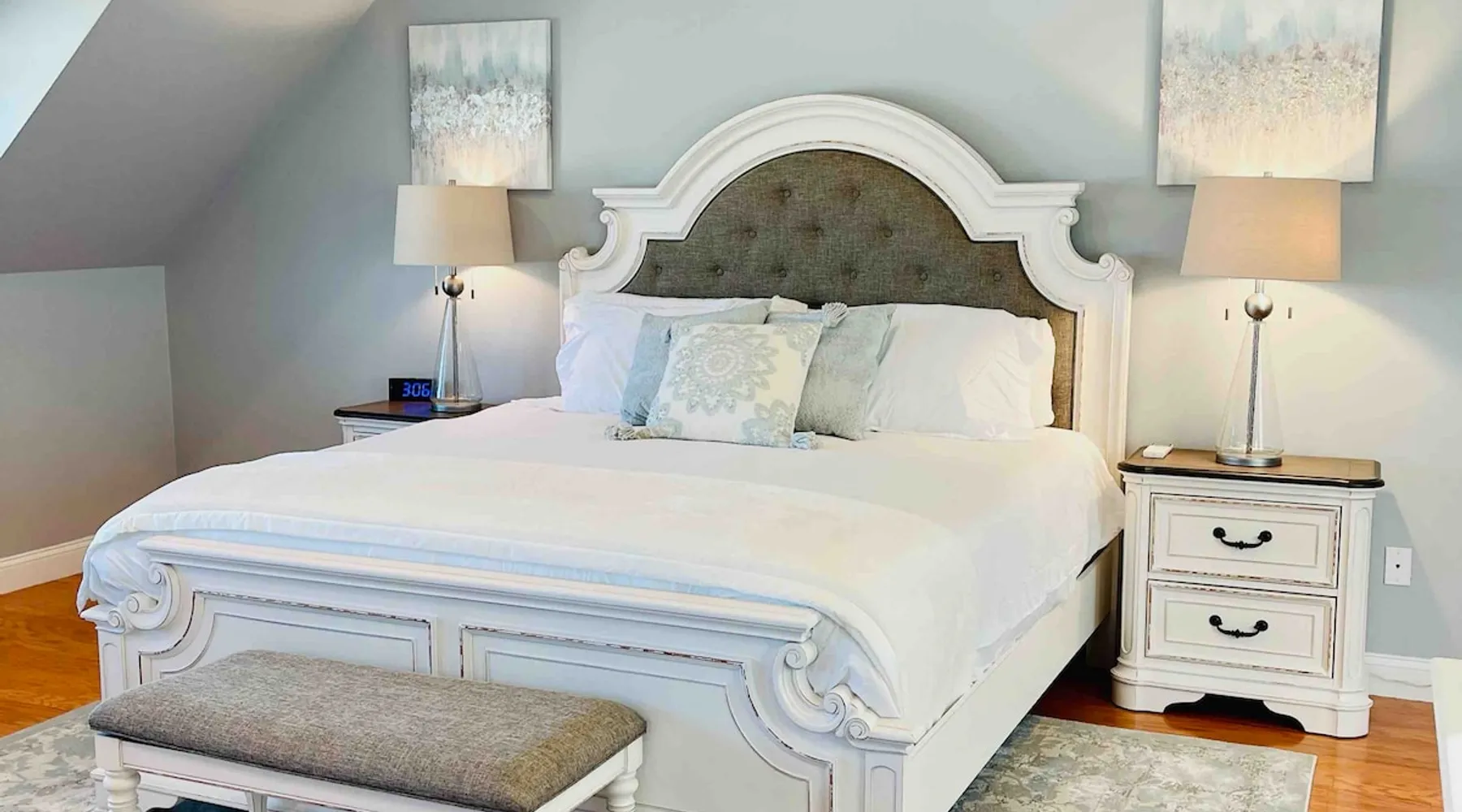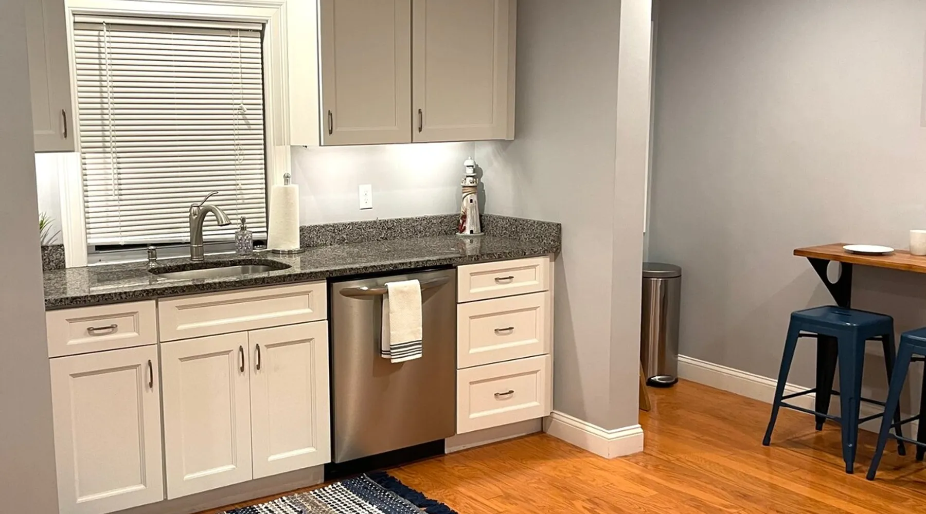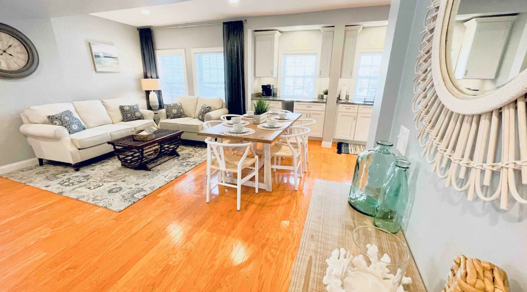 Welcome to the Seacoast! This 4-bedroom hideaway is privately nestled in Kittery Foreside while still being close to the action. Decorated in the theme of a seacoast farmhouse, this home is perfect for 2-3 couples looking to escape, a family or two for a seacoast vacation or extended "work-cation". With ample space to stretch out our extremely well equipped home is within an 18 minute walk to downtown Portsmouth, 6 minute drive to the Kittery Outlets and 12 minute drive to York beach. The space Once you walk in the front door you will immediately feel the ocean and farmhouse vibes from the crisp seacoast decorations, distressed wood kitchen table, coffee bar and wooden blanket ladder. The first floor provides a full bathroom with laundry area and a wonderful kitchen that includes everything you need to prepare a home cooked meal. The second floor includes another full bathroom and 3 bedrooms tastefully decorated for your relaxation. One of the bedrooms doubles as your private office and with ultra high-speed internet, everyone can be on a device while you are on a Zoom meeting. Our third floor master suite is the showstopper. It includes a THIRD full bathroom with dual sinks, a walk in closet, king size bed, private electric fireplace, sitting area and your own personal bar supplied with ice bucket, fruit juice, soda and glasses for that perfect night cap. Other things to note Starter Supplies: We supply sufficient trash bags, paper towels, toilet paper, and other household essentials designed to last approximately three days. Should your stay extend beyond this period, we request that guests take on the responsibility of replenishing these items.
