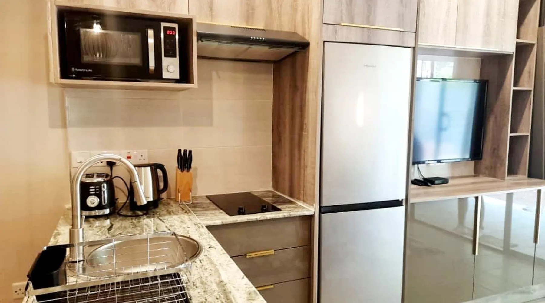 The best of both worlds - hotel luxury meets home comfort. A rare gem for the discerning traveler with a taste for freedom, creature comforts, and autonomy. A stunning, fully serviced studio apartment set in the quiet suburb of Namiwawa, and less than 10-minute drive from city centre, with free WIFI and power/water back-up systems. With sensible pricing, this option offers the best value in town. Guaranteed. Breakfast is available at a nominal fee for residents only. The space This apartment is a beautiful expression of form and function. Airconditioned, a stunning bathroom with rain shower and on-trend fixtures, private porch, black-out curtains, 55” cable TV, internet, ambient lighting, you name it, this suite leaves no detail unattended to. Take charge of your meals in our modern kitchenette complete with a either gas or electric hob, microwave, fridge/freezer, kettle, toaster, cafetiere, and a pantry starter-pack. Guest access Guests will have entire apartment to themselves. Let us know if you need more than one apartment. Other things to note This apartment is part of a terraced triplex set on a beautiful hillside. It is not wheelchair accessible. Please contact host for accessible options.