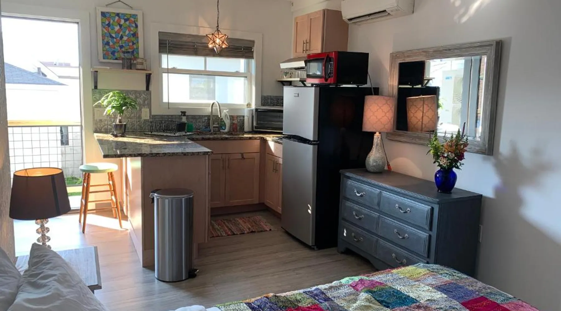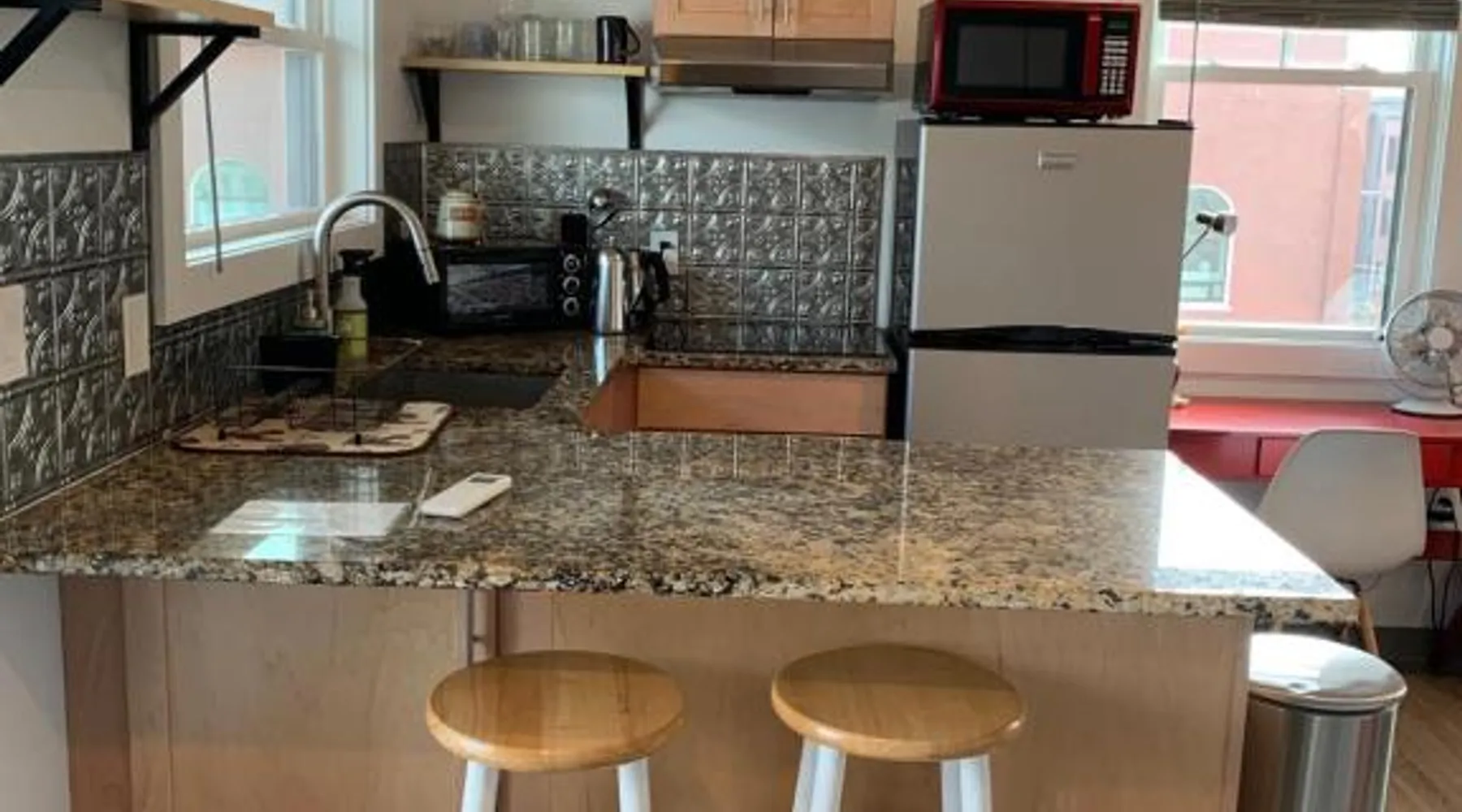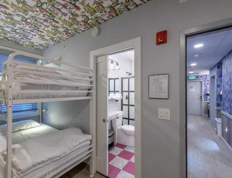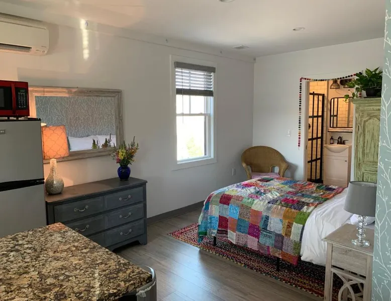 Historic Setting: Black Elephant Hostel in Portland is housed in a historic building, offering a unique and charming environment. Essential Facilities: Guests enjoy a beautiful garden and free WiFi, perfect for relaxation and connectivity. Comfortable Amenities: The hostel features a lounge, shared kitchen, games room, bicycle parking, and luggage storage. Additional amenities include air-conditioning, walk-in showers, and sea views. Prime Location: Located 3.1 mi from Portland International Jetport, the hostel is close to East End Beach (18-minute walk), Merrill Auditorium (1640 feet), and Portland Observatory (12-minute walk). An ice-skating rink is also nearby. Guest Satisfaction: Highly rated for its convenient location, attentive staff, and excellent service support. This studio apartment has a private entrance, private bathroom and kitchen.