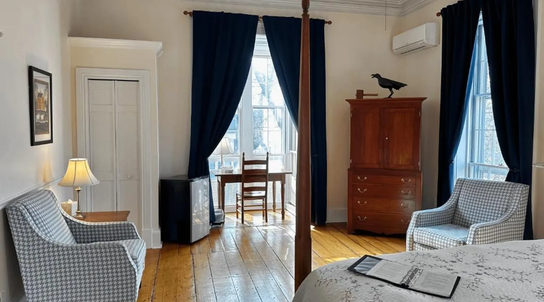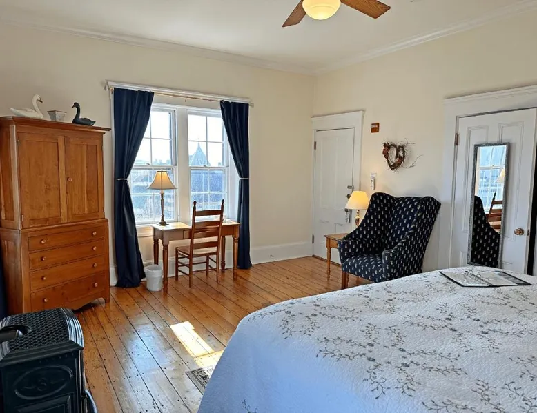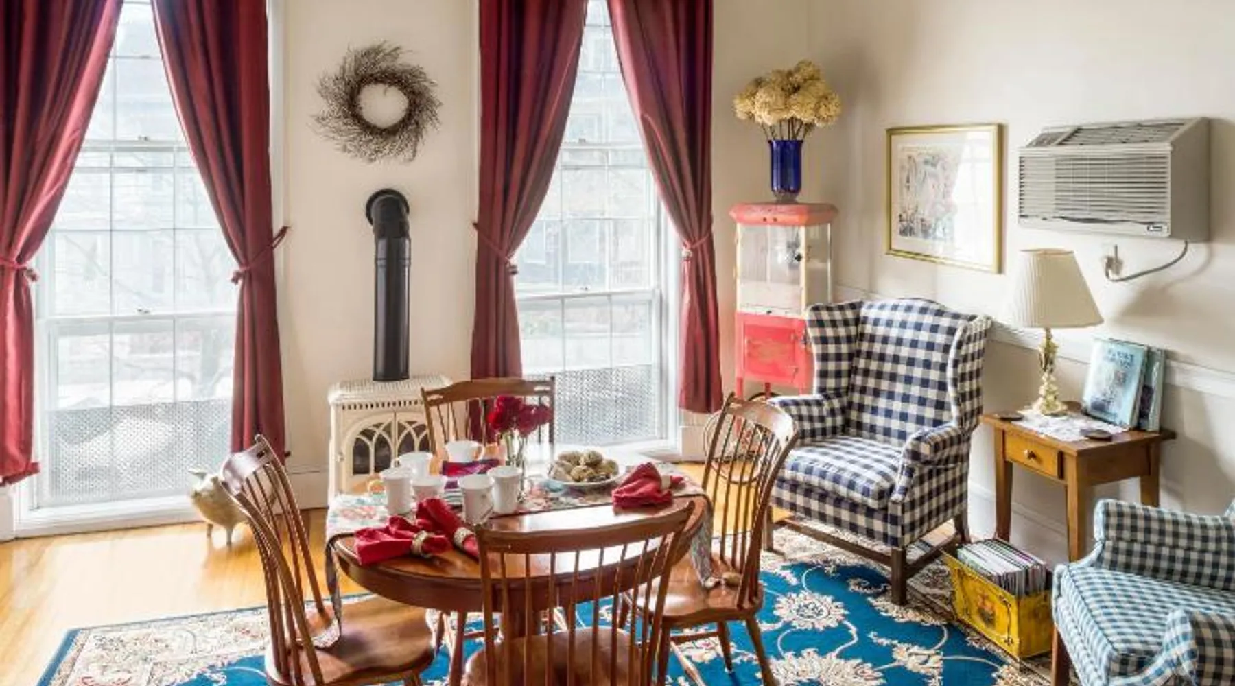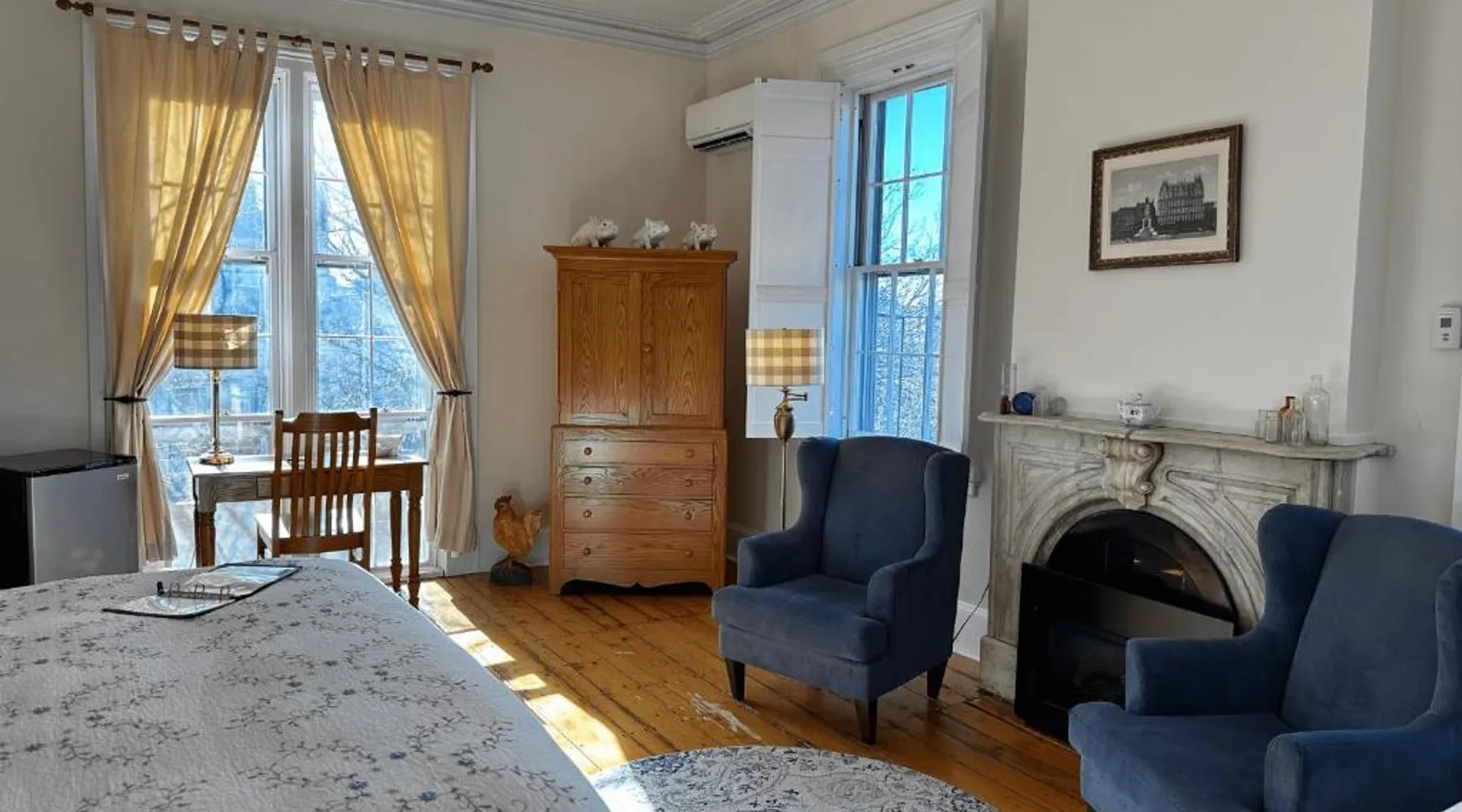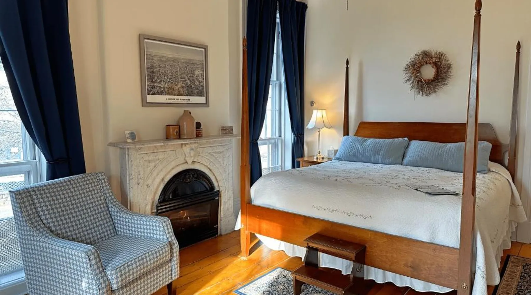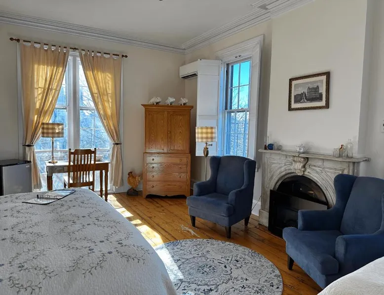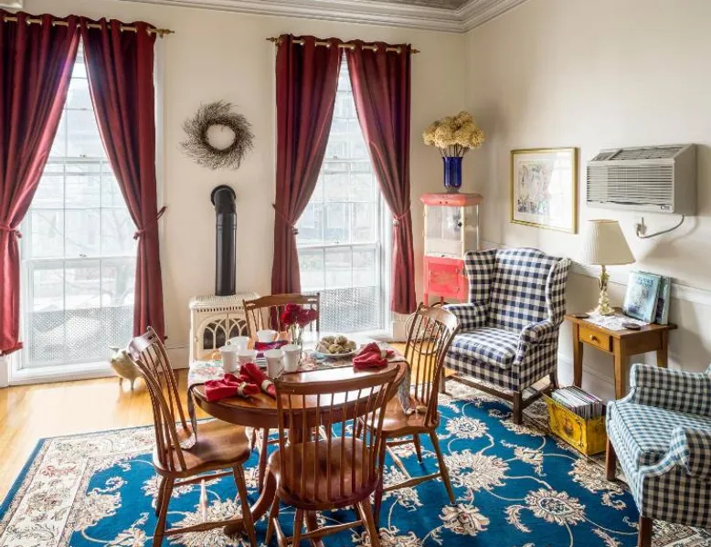 This bed and breakfast, a brick mansion built in 1858, is within a 10 minute walk to Waterplace Park. All rooms at the Christopher Dodge House have private bathrooms. The rooms are furnished with work desks, and include free Wi-Fi and cable TV. Complimentary breakfast is served every morning at this bed and breakfast. Free off-street parking is available. Brown University is just over a mile from The Christopher Dodge House. The Rhode Island State Capital is a five minute walk away. The Providence Place Mall is less than a mile from this bed and breakfast. Located on the 3rd floor, this room features carpet flooring, a wood stove, and a seating area.