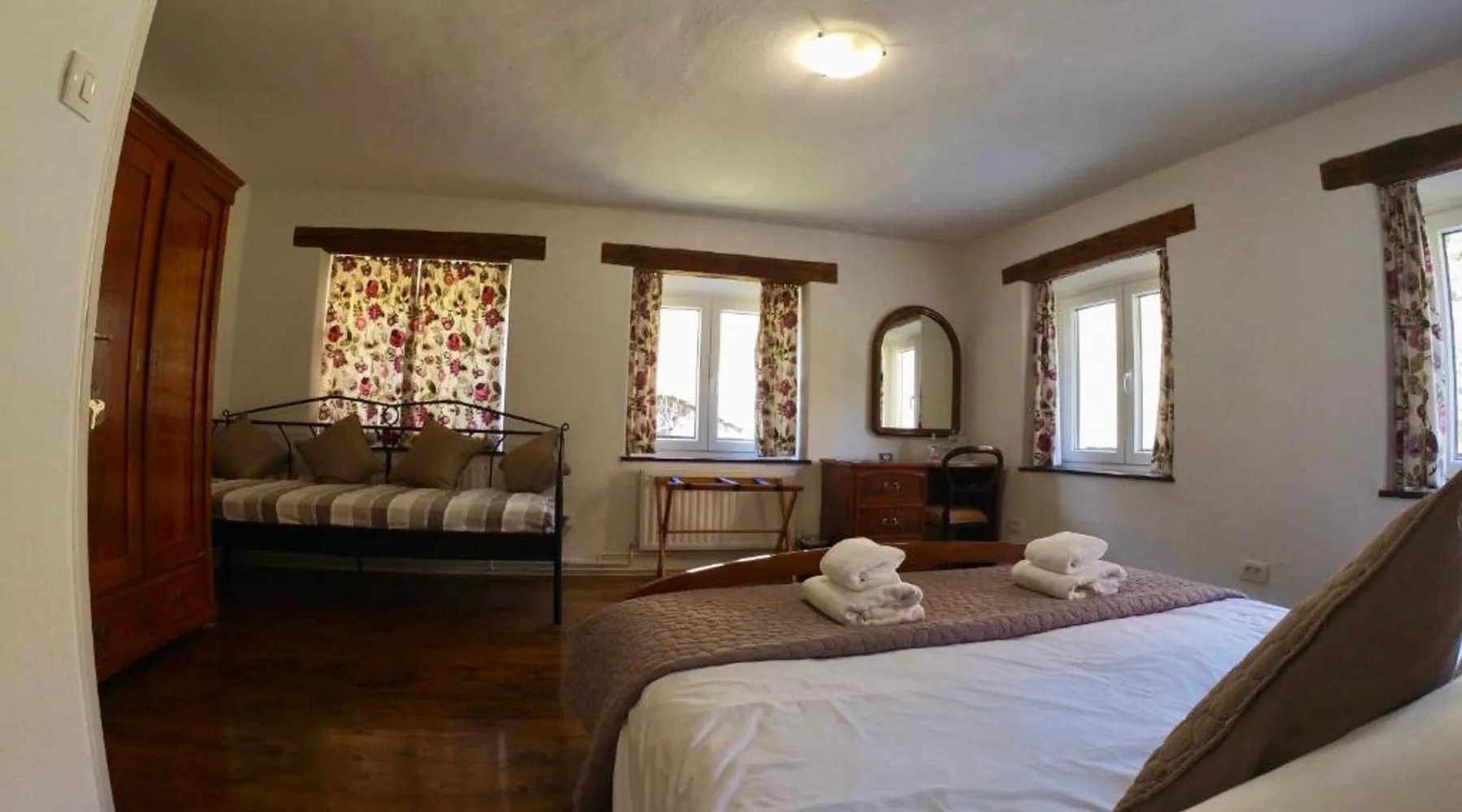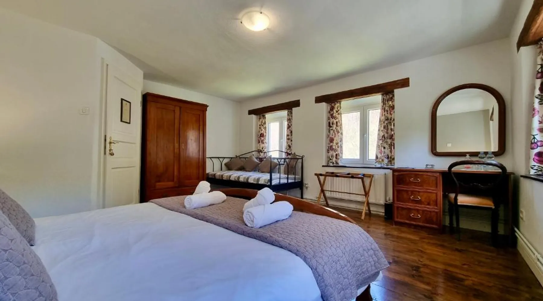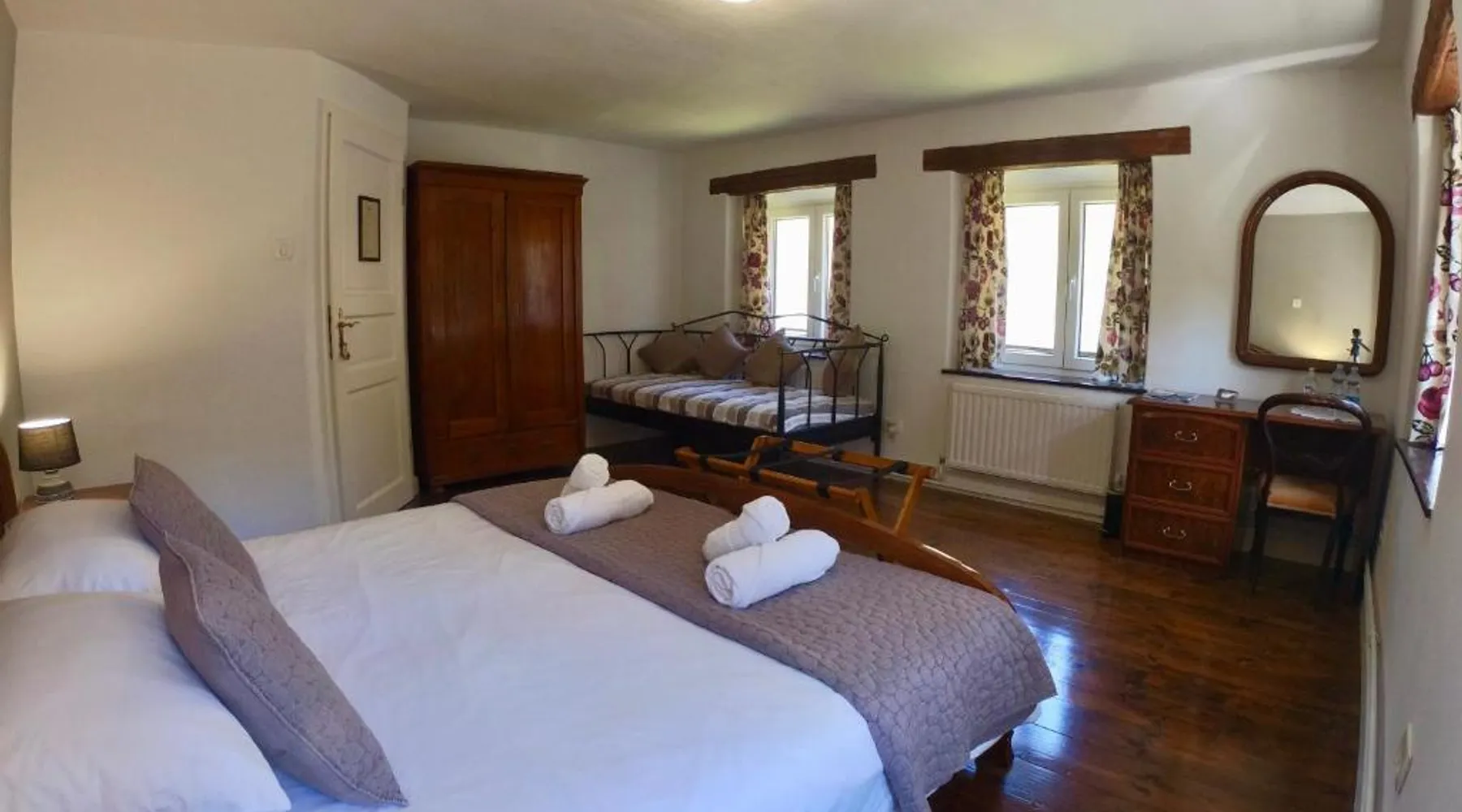 Historic Setting: Hisa Brdo Guest house in Tolmin offers a recently renovated historic building with mountain views. The property features a sun terrace, garden, and free WiFi. Comfortable Accommodations: Rooms include private bathrooms, parquet floors, and garden views. Additional amenities include a balcony, terrace, and sofa bed. Guest Services: Guests benefit from private check-in and check-out, a paid shuttle service, lounge, outdoor seating area, picnic area, family rooms, full-day security, bicycle parking, barbecue facilities, and luggage storage. Local Attractions: Located 41 mi from Ljubljana Jože Pučnik Airport, the guest house is near Aquapark & Wellness Bohinj (24 mi) and The cave under Babji zob (28 mi). Providing free toiletries, this single room includes a shared bathroom with a shower, a hairdryer and slippers. The single room features parquet floors and provides a wardrobe, a safe deposit box and garden views. The unit offers 1 bed.