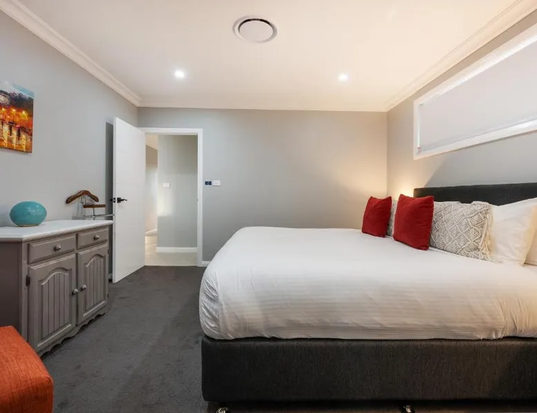 Spacious Accommodations: Devan House in Mudgee offers a spacious holiday home with four bedrooms and two bathrooms. Family rooms provide ample space for relaxation and comfort. Modern Amenities: Guests enjoy free WiFi, air-conditioning, streaming services, and a fully equipped kitchen with a dishwasher and microwave. Additional amenities include a washing machine, patio, and outdoor dining area. Outdoor Spaces: The property features a beautiful garden and a private patio, perfect for relaxation. Free on-site private parking is available for convenience. Local Attractions: Glen Willow Regional Sports Stadium is located 3.1 mi away, offering various sporting activities. The surrounding area provides scenic garden views and opportunities for outdoor activities. Guest Satisfaction: Devan House is highly rated by guests for its spaciousness and excellent facilities, ensuring a memorable holiday experience. Boasting a private entrance, this spacious holiday home also comes with 4 bedrooms, a seating area and 2 bathrooms with a bath and a shower. Guests will find a stovetop, a refrigerator, a dishwasher and kitchenware in the well-fitted kitchen. The holiday home also includes a barbecue. The air-conditioned holiday home features a flat-screen TV with streaming services, a washing machine, a tea and coffee maker, a dining area as well as garden views. The unit has 5 beds.