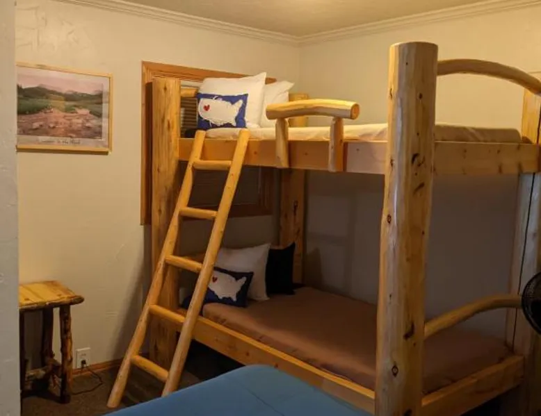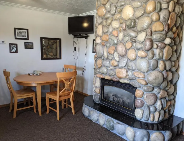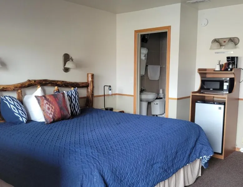 Comfortable Accommodations: Sundance Motel in Pinedale offers family rooms with private bathrooms, air-conditioning, and city views. Each room includes a work desk, TV, and free toiletries. Essential Facilities: Guests enjoy a garden, free WiFi, and free on-site private parking. Additional amenities include a lounge, outdoor seating area, picnic area, and bicycle parking. Breakfast and Services: A continental breakfast is served with juice, fresh pastries, and fruits. Private check-in and check-out, daily housekeeping, and free WiFi enhance the stay. Activities and Surroundings: Skiing and hiking are popular activities nearby. An ice-skating rink provides entertainment. Jackson Hole Airport is 87 mi away. This pet-friendly room features a flat-screen TV, tea and coffee making facilities and a private bathroom.