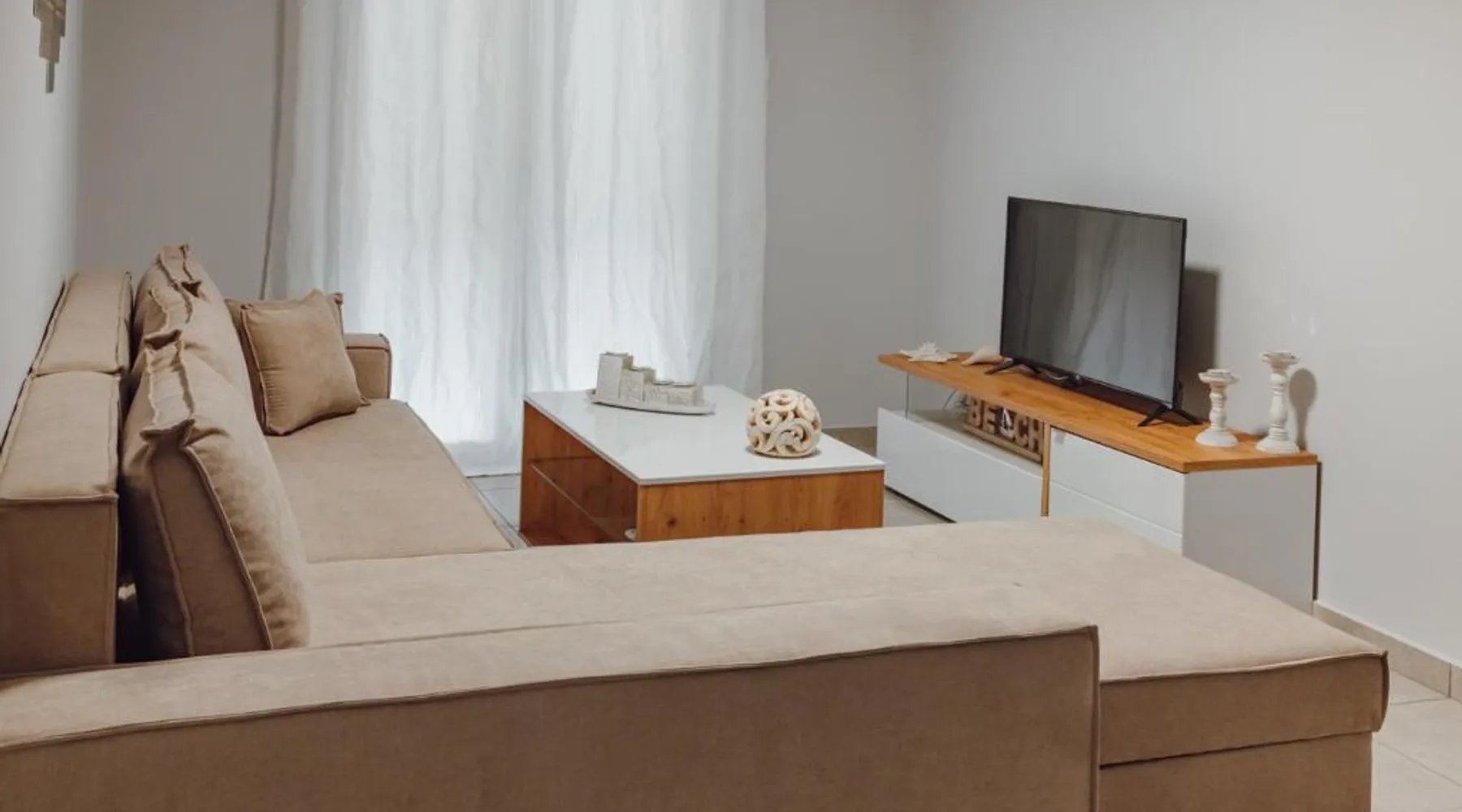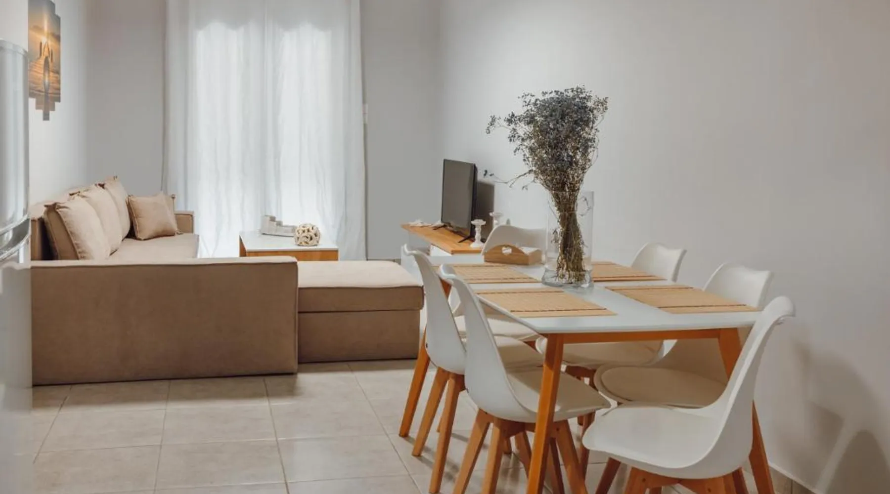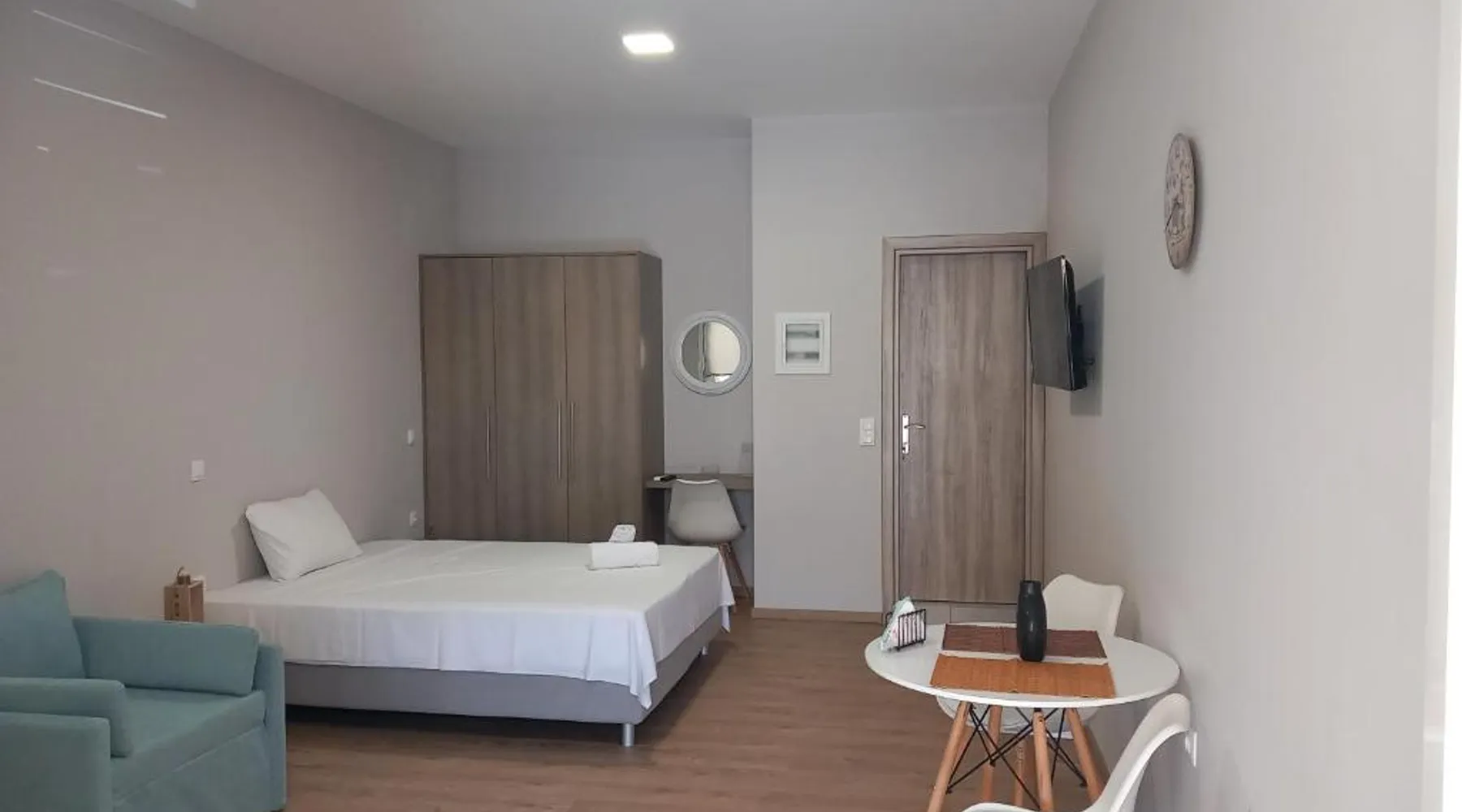 Comfortable Accommodations: THALASSA ALMYROS APARTMENTS in Paralia Vérgas offers a holiday home with a garden and terrace. Free WiFi is available throughout the property. Modern Amenities: The apartment features air-conditioning, a balcony, and a fully equipped kitchen. Additional amenities include a washing machine, private bathroom, and free on-site parking. Prime Location: Located a few steps from Almyros Beach, the property is 11 mi from Kalamata International Airport. Nearby attractions include the Municipal Railway Park and Benakeion Archaeological Museum. Guest Satisfaction: Guests appreciate the well-equipped kitchen, clean rooms, and attentive host. Boasting a private entrance, this air-conditioned holiday home comes with 1 living room, 1 separate bedroom and 1 bathroom with a walk-in shower and a hairdryer. Guests can make meals in the kitchen that features a stovetop, a refrigerator, kitchenware and an oven. Featuring a terrace with sea views, this holiday home also features a washing machine and a flat-screen TV. The unit has 2 beds.