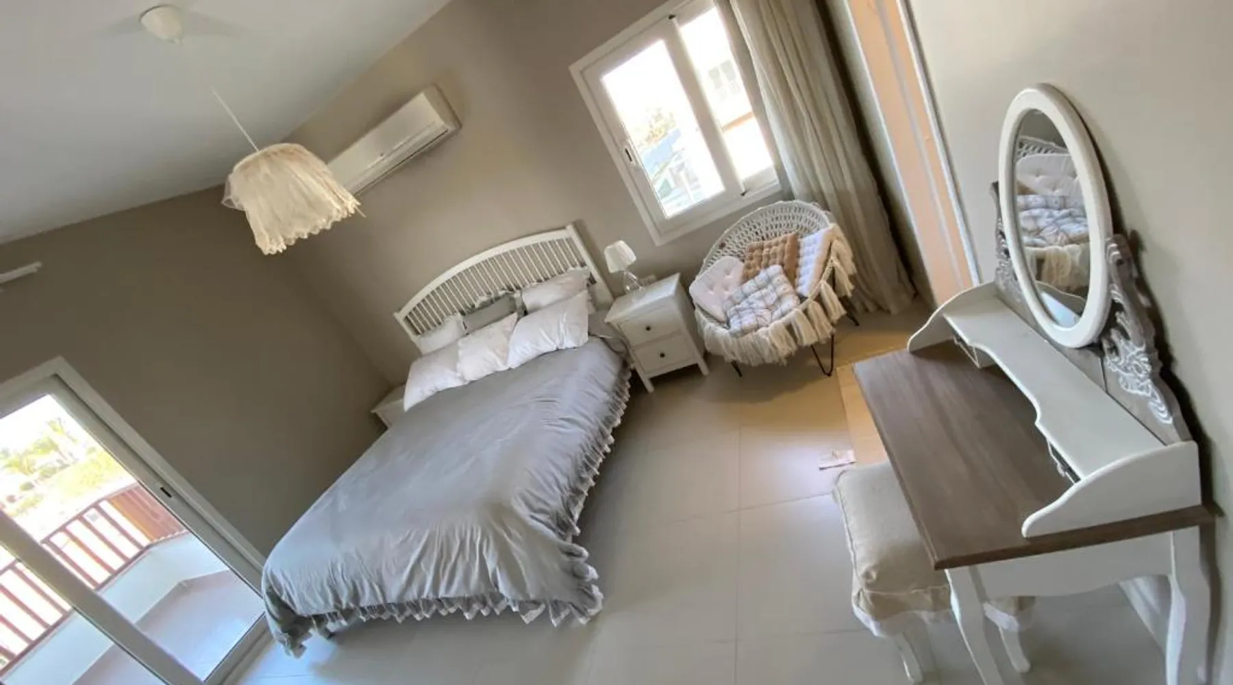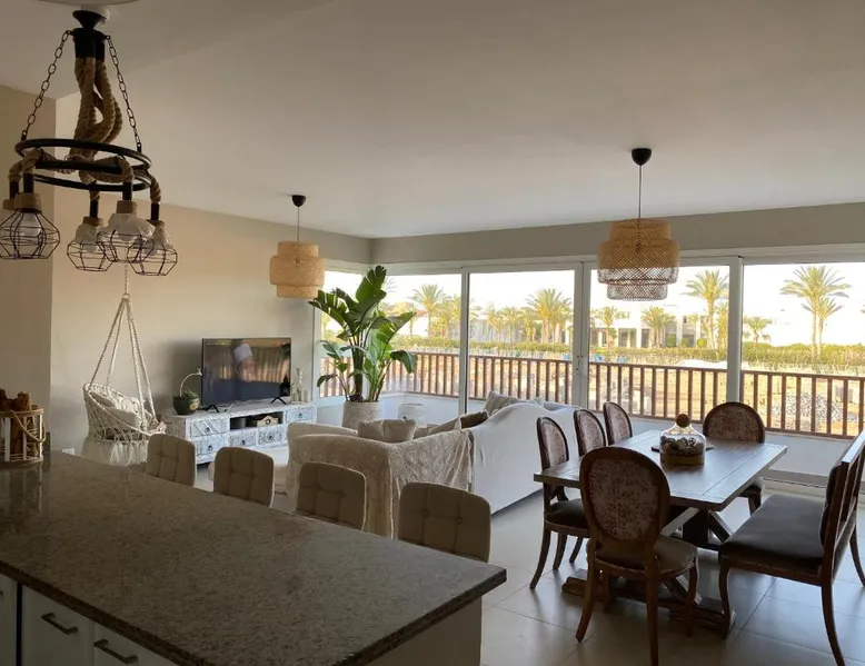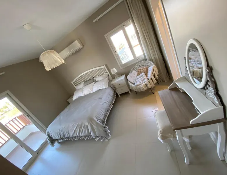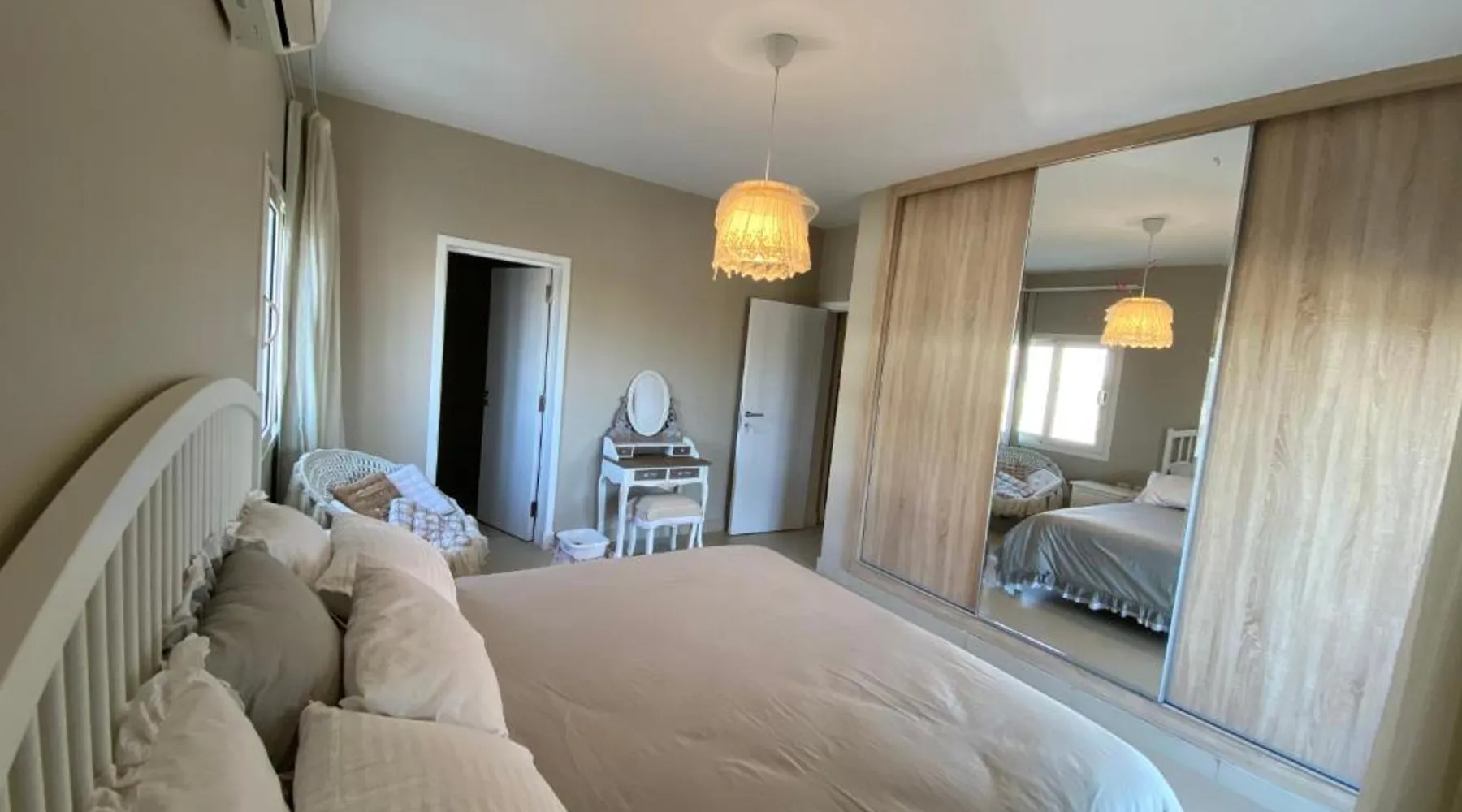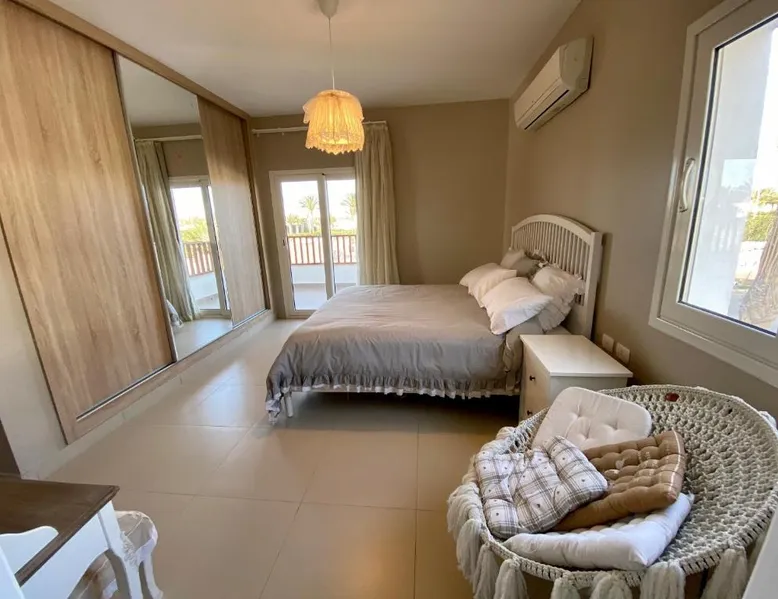 Beachfront Location: Almaza Bay Beach Town Chalet in Mersa Matrouh offers direct beachfront access and stunning sea views. Guests can relax on the sandy shores or take a dip in the crystal-clear waters. Exceptional Facilities: The chalet features a hot spring bath, rooftop swimming pool, spa and wellness center, terrace, restaurant, bar, and free WiFi. Additional amenities include a lounge, public bath, 24-hour front desk, and free on-site parking. Comfortable Accommodations: Rooms are equipped with air-conditioning, private bathrooms, balconies, and modern conveniences such as washing machines and kitchen appliances. Family rooms and interconnected rooms cater to all guest needs. Dining Experience: The on-site restaurant serves Middle Eastern cuisine, complemented by a pool bar and outdoor seating areas. Guests can also enjoy massage services, a games room, and a children’s playground. Featuring a private entrance, this air-conditioned chalet consists of 1 living room, 3 separate bedrooms and 3 bathrooms with a walk-in shower and a bidet. Guests will find a refrigerator, kitchenware, an oven and a microwave in the well-fitted kitchen. The chalet also offers a barbecue. The spacious chalet provides a flat-screen TV with satellite channels, a washing machine, soundproof walls, a mini-bar as well as garden views. The unit offers 7 beds.